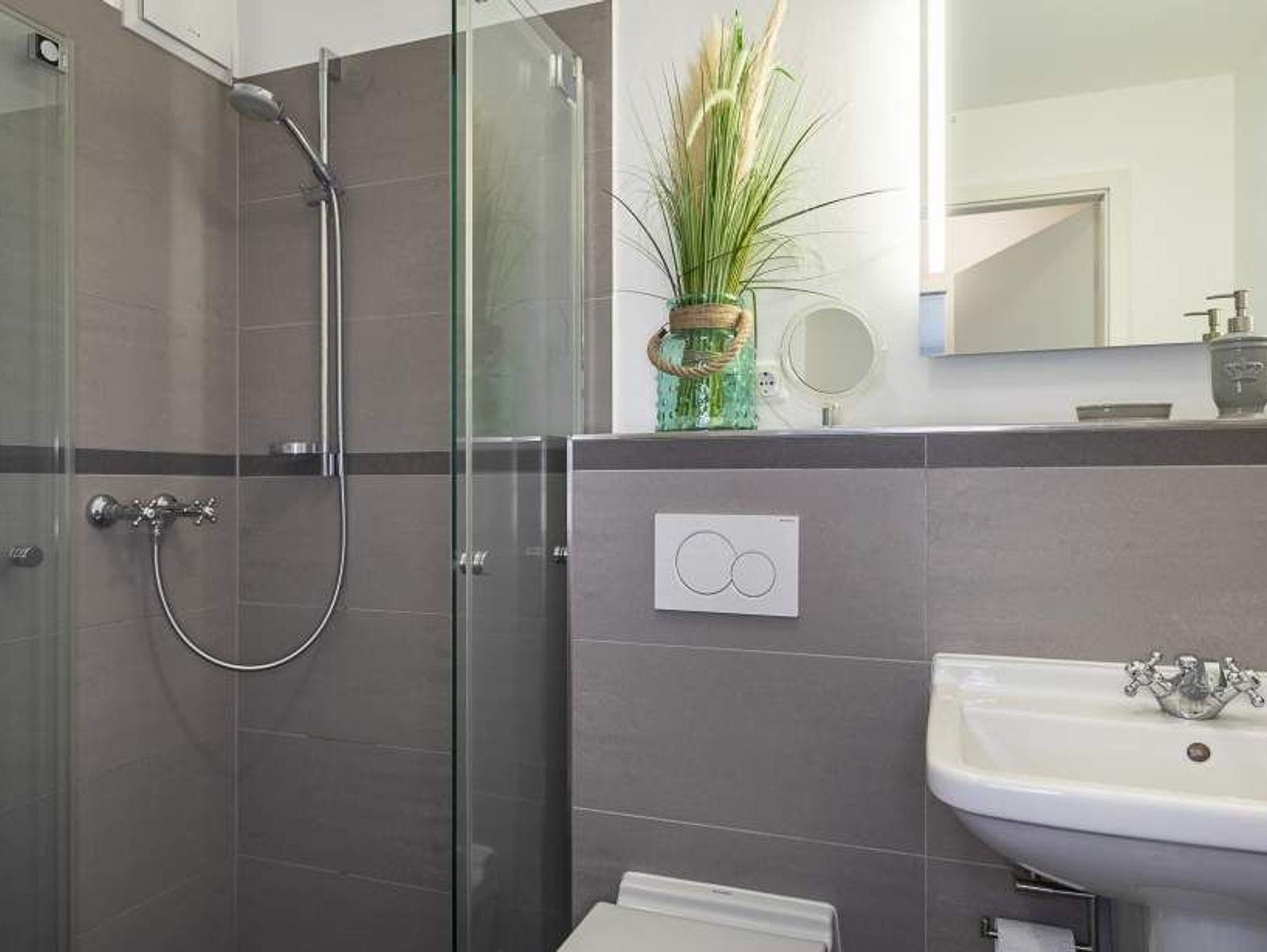 Im Schlafzimmer sorgt ein bequemes Doppelbett (1,80 x 2,00m) mit Qualitätsmatratzen für einen erholsamen Schlaf. Die Urlaubsgarderobe findet Platz im geräumigen Kleiderschrank. Für den zusätzlichen Komfort steht Ihnen auch hier ein stylischer Flachbildfernseher zur Verfügung. Alle Räume sind mit warmem Echtholzparkett und Fußbodenheizung ausgestattet. Bodentiefe Fenster garantieren viel Tageslicht und eine gute Aussicht. Das Badezimmer verfügt über eine bodentiefe Dusche und einen großen Spiegel. Neben der Fußbodenheizung ist hier ein zusätzlicher Handtuchheizkörper angebracht. Weiteres Highlight eine zusätzliche Gäste-Toilette.