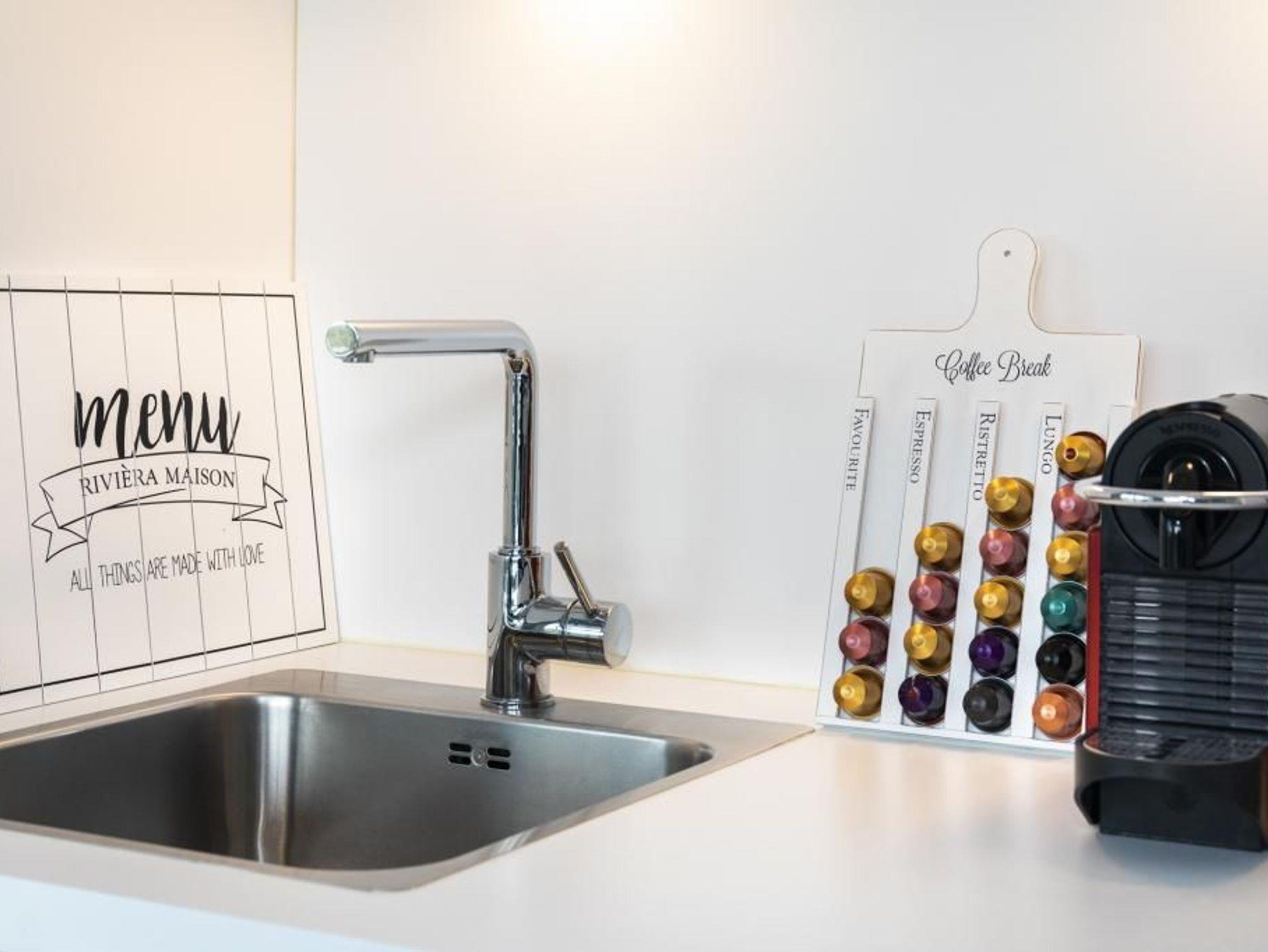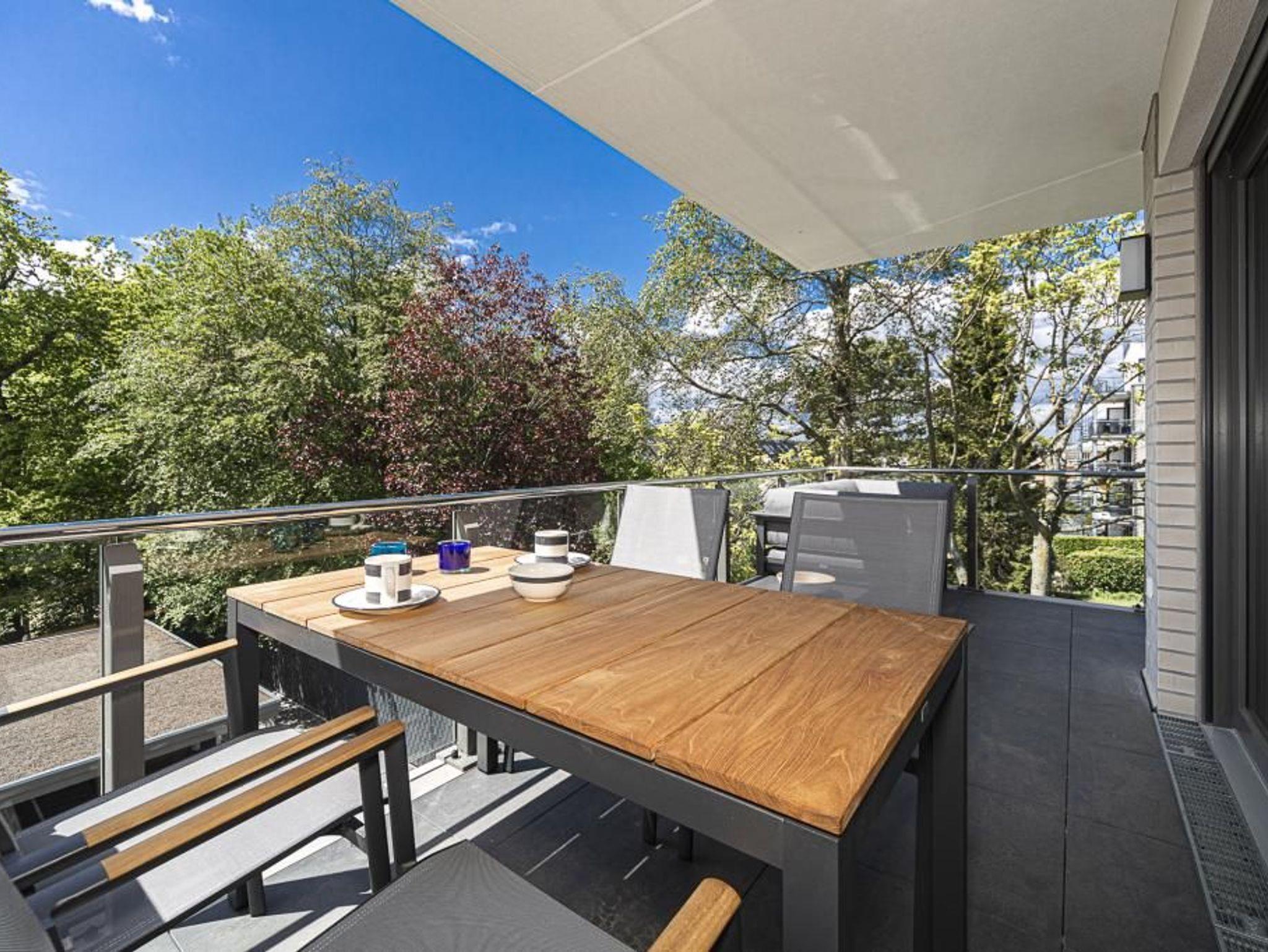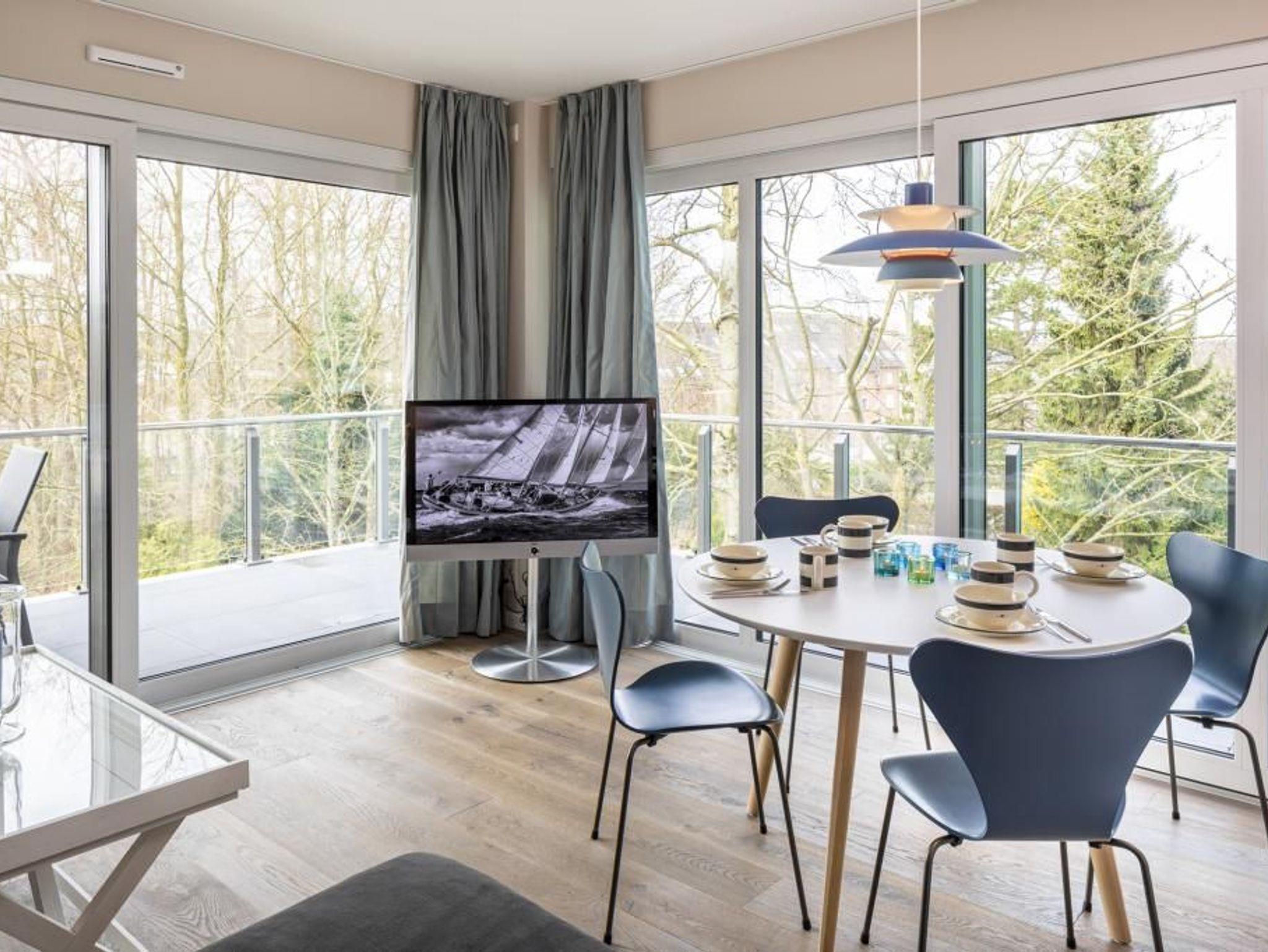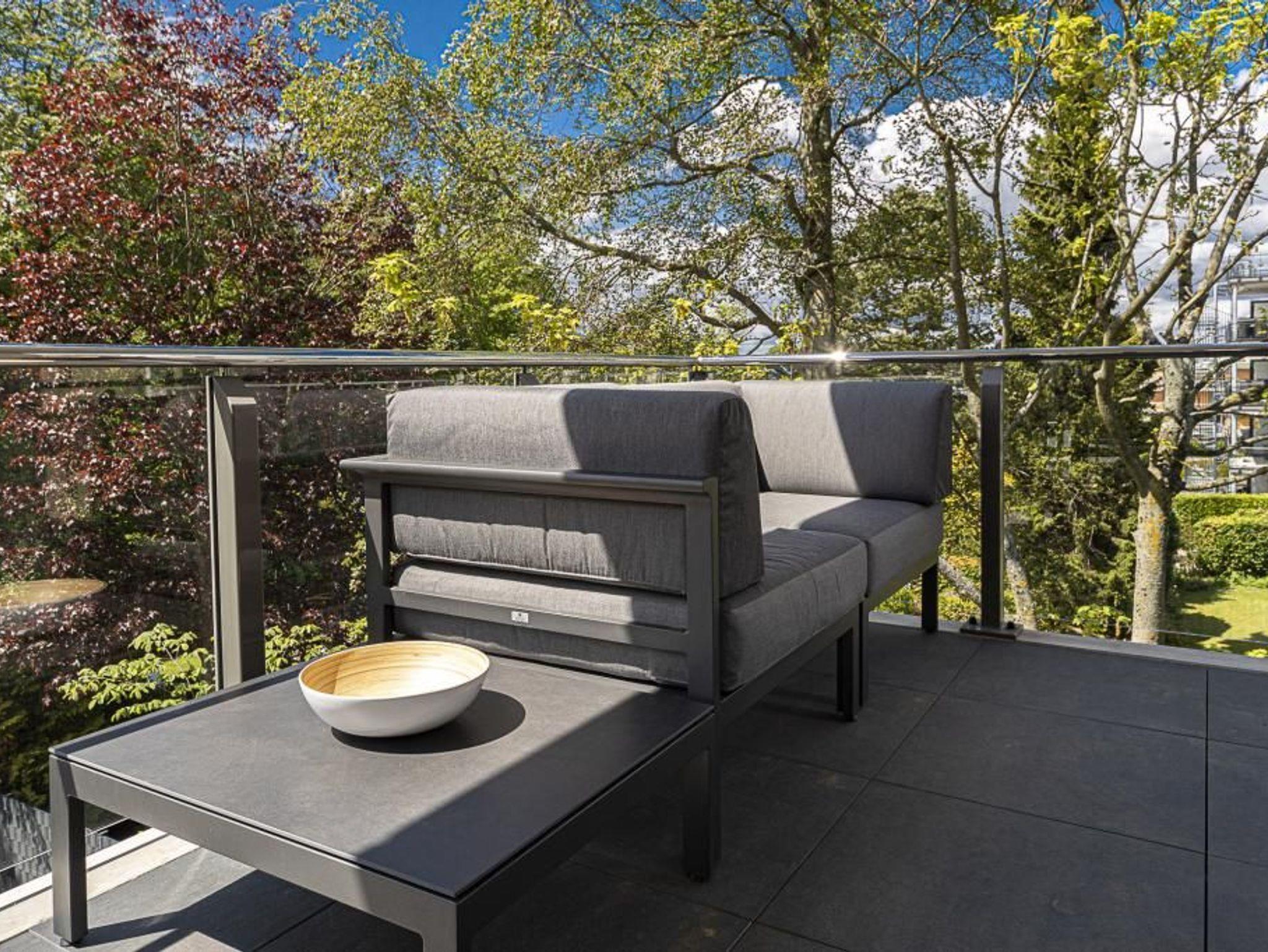 Der geräumige Wohn-Essbereich mit einer voll ausgestatteten Küchenzeile mit hochwertigen Markengeräten und einer Nespresso-Maschine lässt keine Wünsche offen. Der runde Esstisch mit Platz für bis zu 4 Personen ermöglicht gesellige Stunden auch mit Gästen. Vom großzügigen Weylandts-Eck-Sofa hat man einen wunderschönen Blick in die umliegenden grünen Gärten. Es ist keine rückwärtige Bebauung vorhanden. Design-Klassiker wie Riviera-Maison-Couchtisch und -Sideboards, Arne-Jacobsen-Stühle, Artemide-Leuchten, Hästens-Betten und Lexington-Geschirr begeistern Designfreunde und sorgen für eine stylische, aber auch gemütliche Atmosphäre. Alles wurde mit viel Liebe zum Detail aufeinander abgestimmt und bietet luxuriösen Komfort.