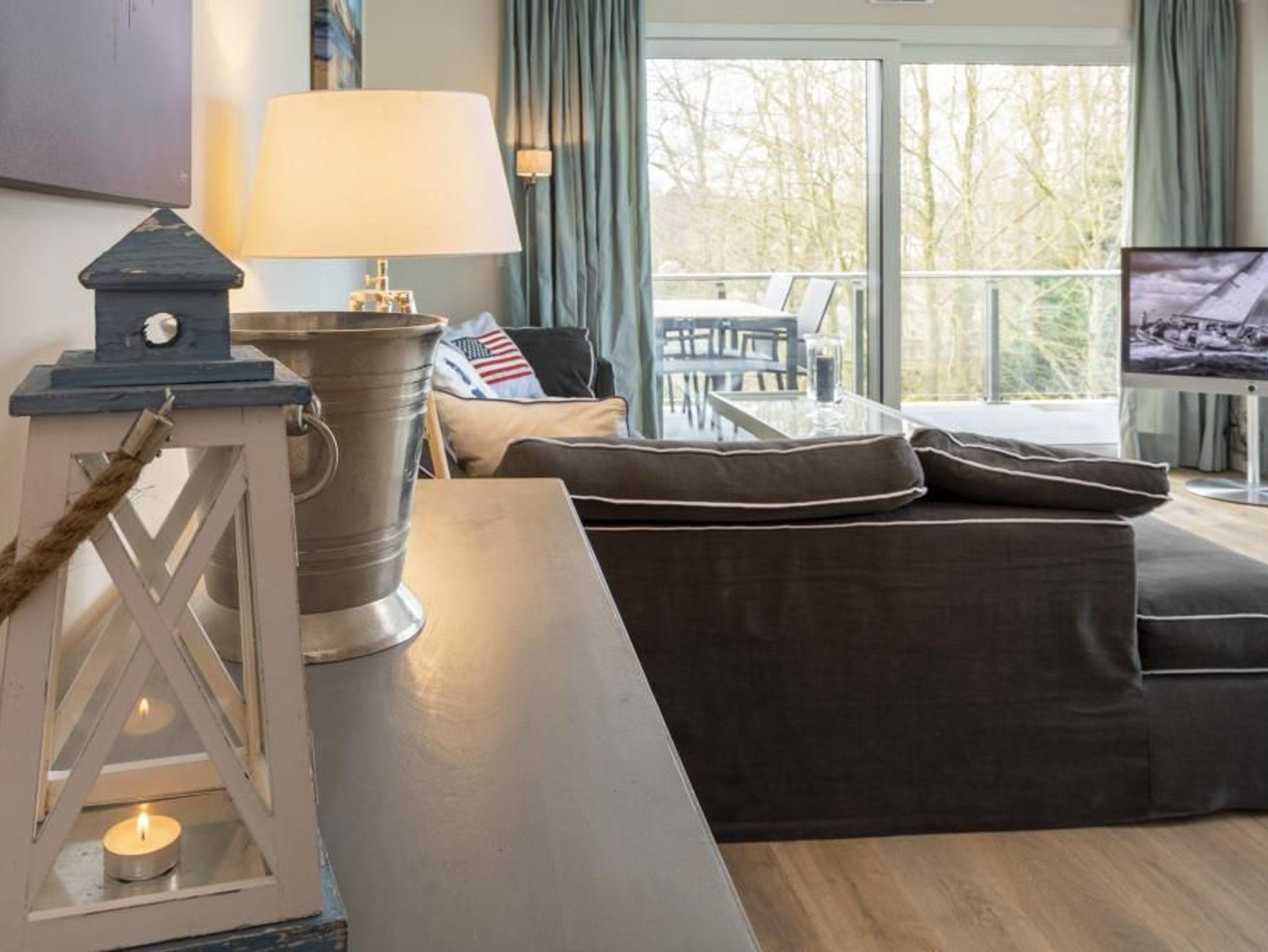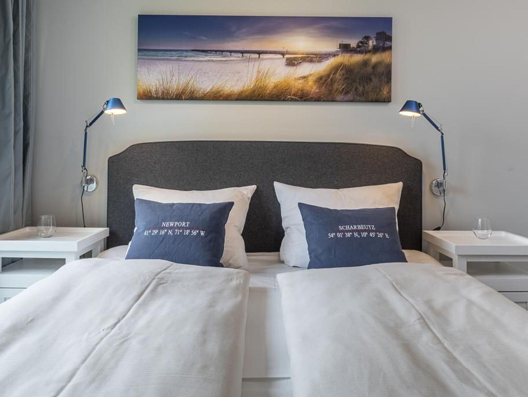 Schöne 3-Zi-Wohnung, ca. 70 m²,[nbsp] für bis zu 4 Personen in direkter Strandlage mit Teil-Meerblick, besonders hochwertiger Ausstattung im New-England-Style, Whirlpool und großem Sonnen-Balkon.