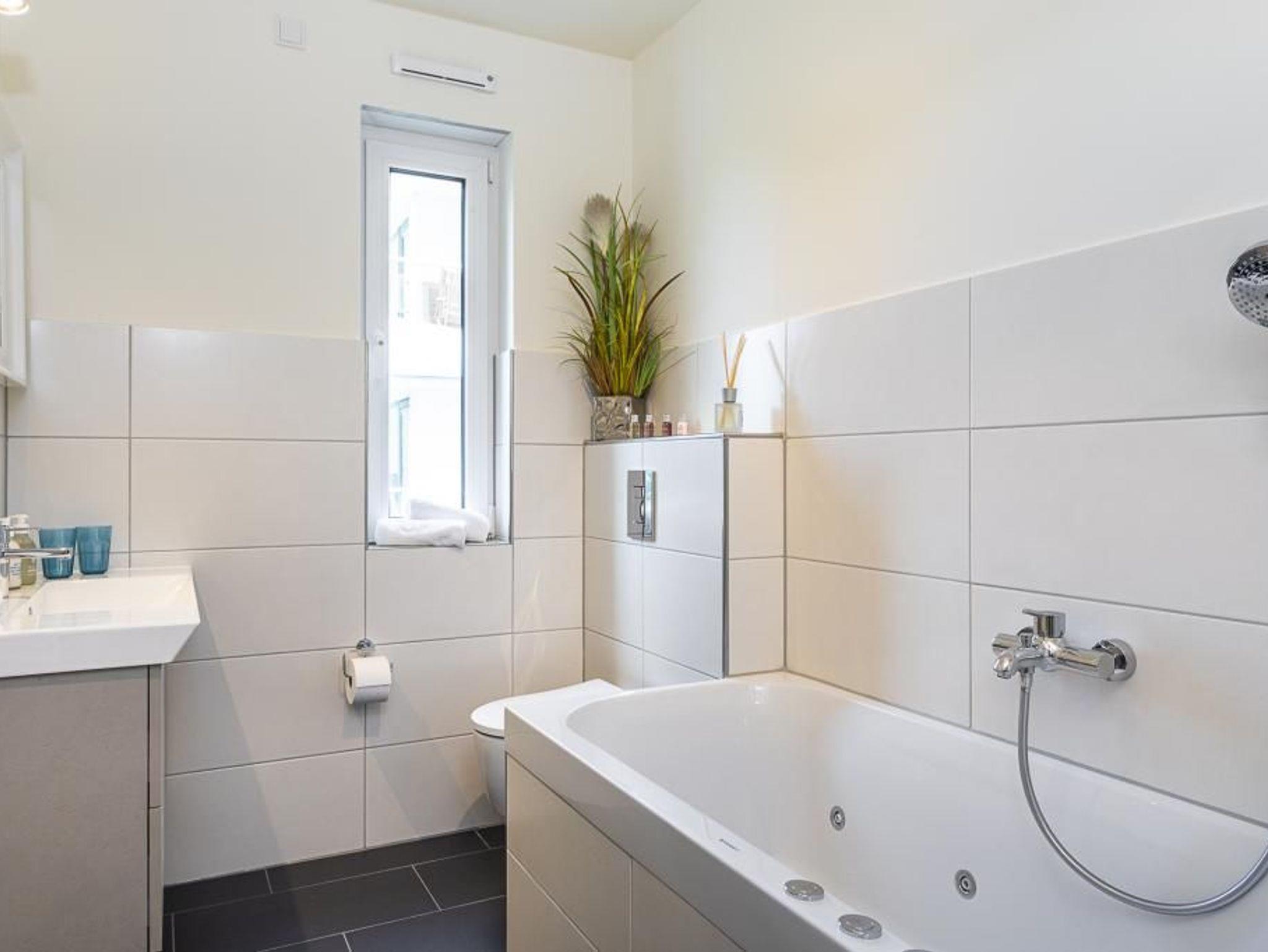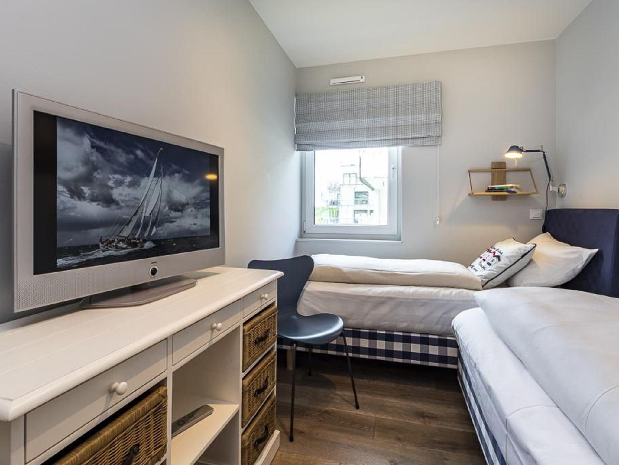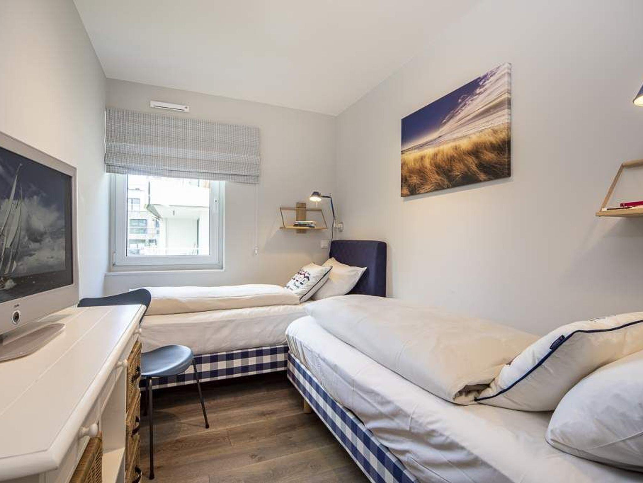 Die Wohnung bietet alle Annehmlichkeiten eines modernen Neubaus, wie bodentiefe Fenster mit Außenjalousien, Fußbodenheizung, hochwertiges Echtholzparkett und einen großzügigen Eckbalkon mit seitlichem Meerblick. Die Wohnung verfügt über 2 Schlafzimmer und bietet Platz für bis zu 4 Personen. Beide Schlafzimmer verfügen über Flachbildfernseher und Boxspringbetten der Luxusmarke Hästens, das Hauptschlafzimmer über ein großes Doppelbett (1,80 x 2,00m), das 2. Schlafzimmer über 2 Einzelbetten. Das Wellness-Badezimmer mit Tageslicht ist sowohl mit einer bodentiefen Dusche als auch mit einer Badewanne mit Whirlpool-Funktion ausgestattet; selbstverständlich sind Handtuchheizkörper und ein großzügiger Waschtisch mit ausreichend Ablagefläche.