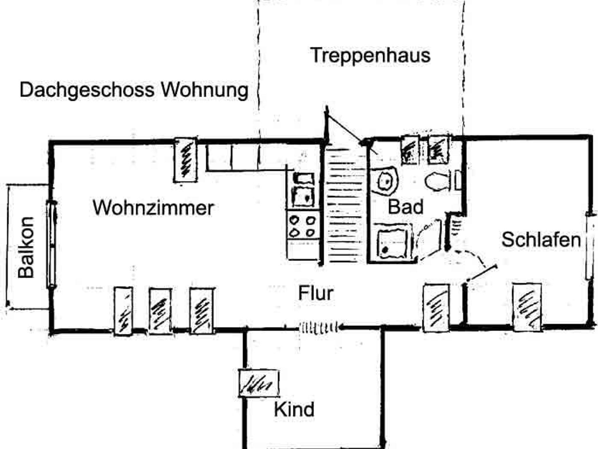 Die 50m² große Dachgeschosswohnung hat 2 getrennte Schlafzimmer.