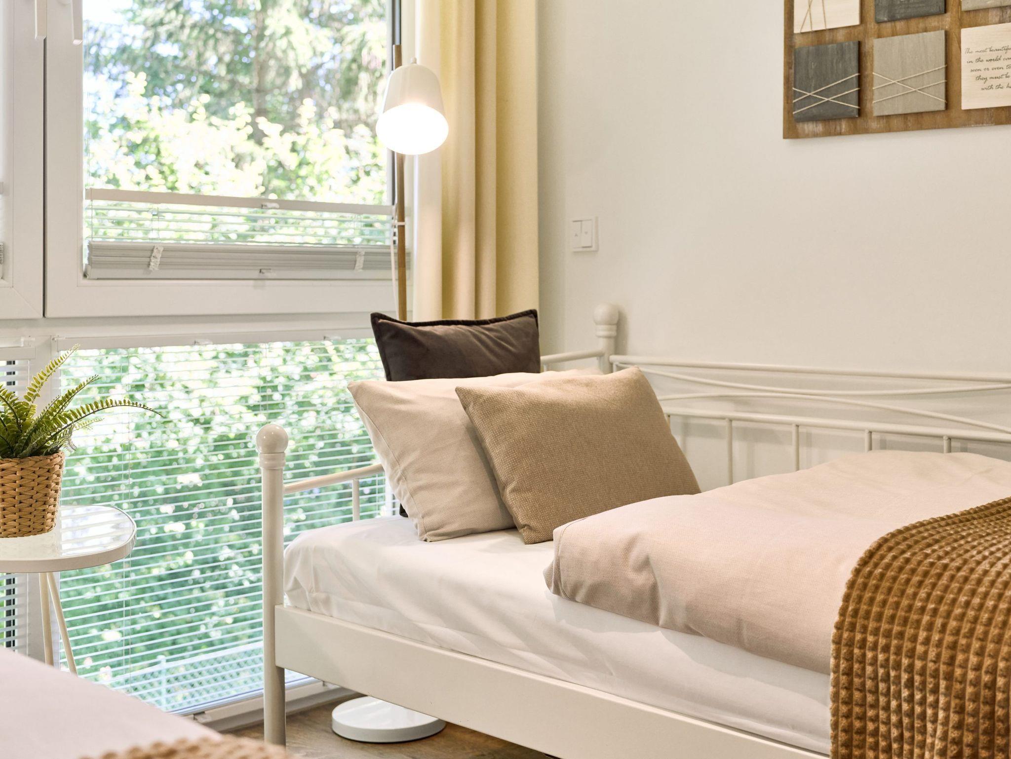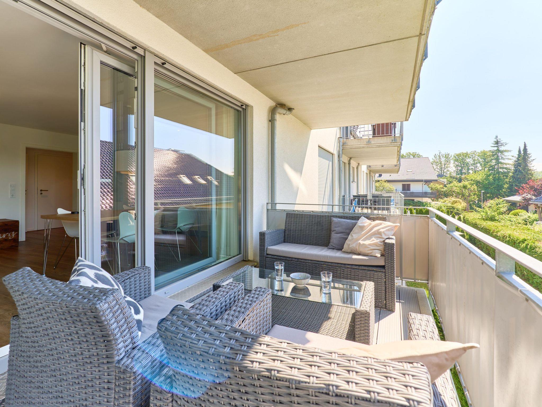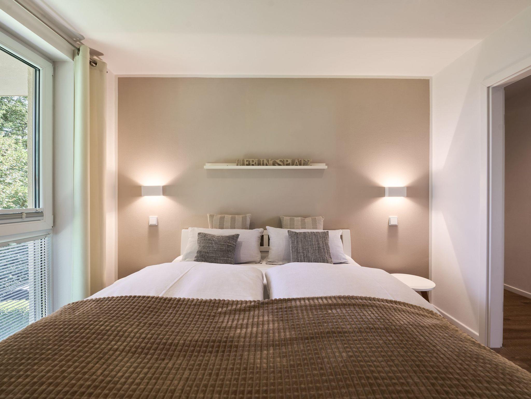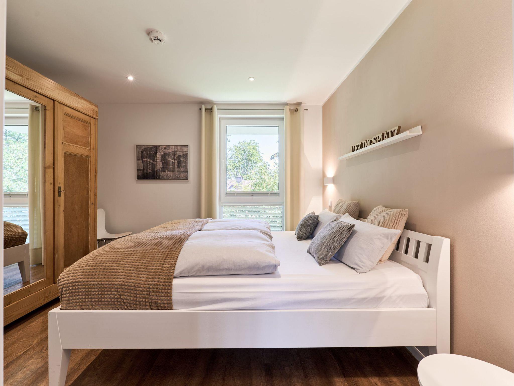 3-Zimmer-Ferienwohnung, ca. 80 m², mit Balkon, zwei Bädern, PKW-Stellplatz und Fahrstuhl, für bis zu 4 Personen.