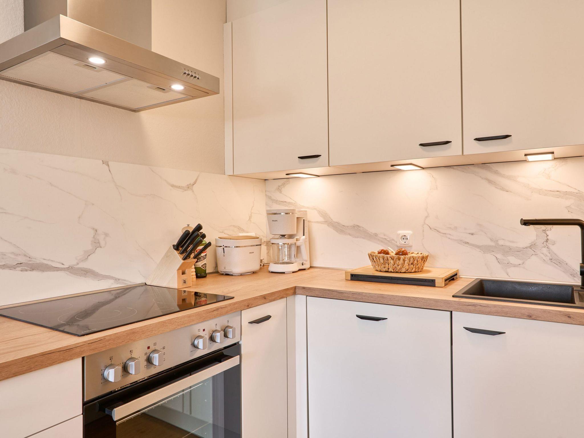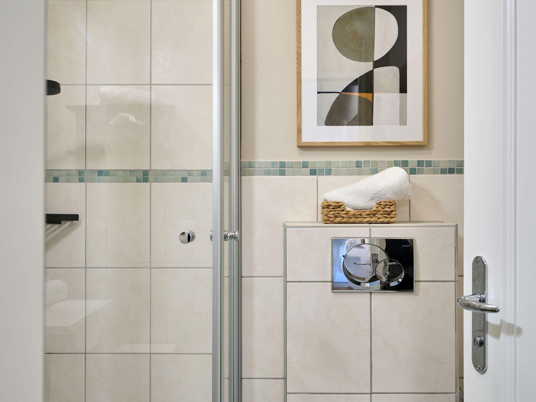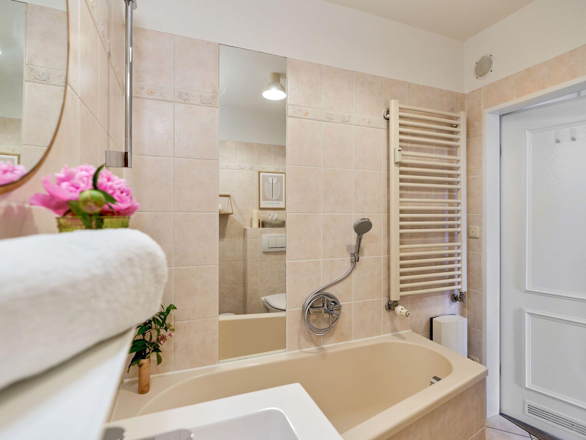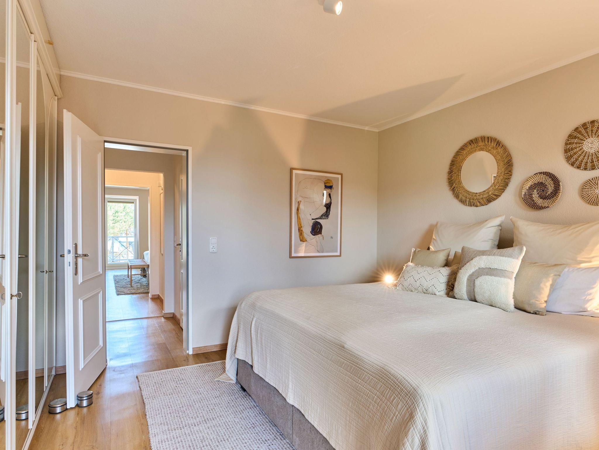 Der Eingangsbereich ist mit einer Garderobe ausgestattet. Großer Wohn-Essbereich mit hochwertiger Ausstattung. Die hochmoderne Küche lässt keine Wünsche offen. Die Schlafzimmer sind mit je einem Boxspringbett (1,80 x 2,00m), Nachttischen und einem geräumigen Kleiderschrank ausgestattet. Ein Schlafzimmer verfügt über einen Smart-TV und Sie haben einen tollen Ostseeblick. Das zweite Schlafzimmer liegt nach Westen, mit angrenzender Loggia. Der großzügige Wohn-Essbereich ist aufwendig und sehr ansprechend eingerichtet. 2 Bäder stehen Ihnen zur Verfügung. Ein Wannenbad und ein Duschbad. Das Wannenbad ist mit einem Handtuchheizkörper ausgestattet.