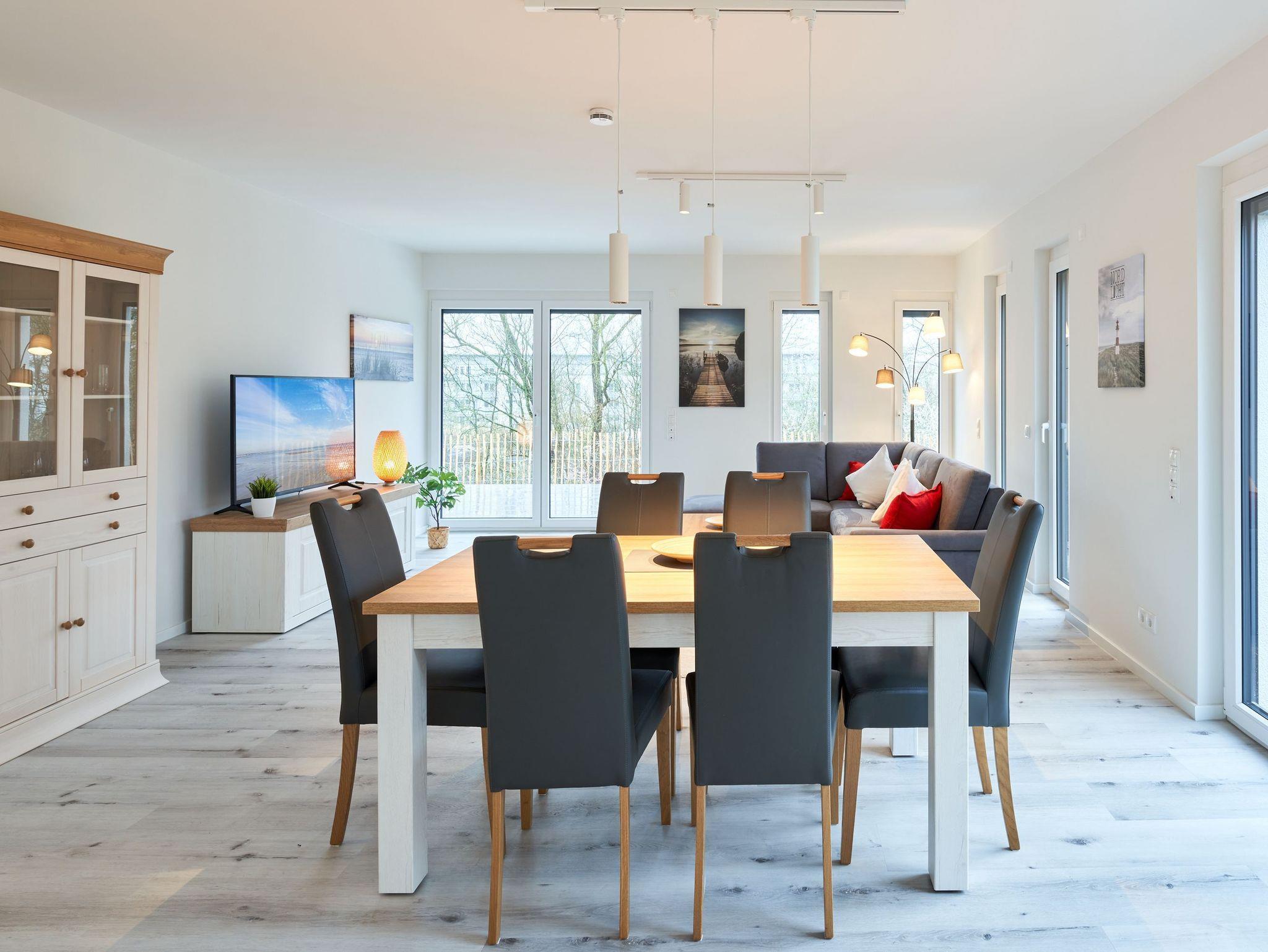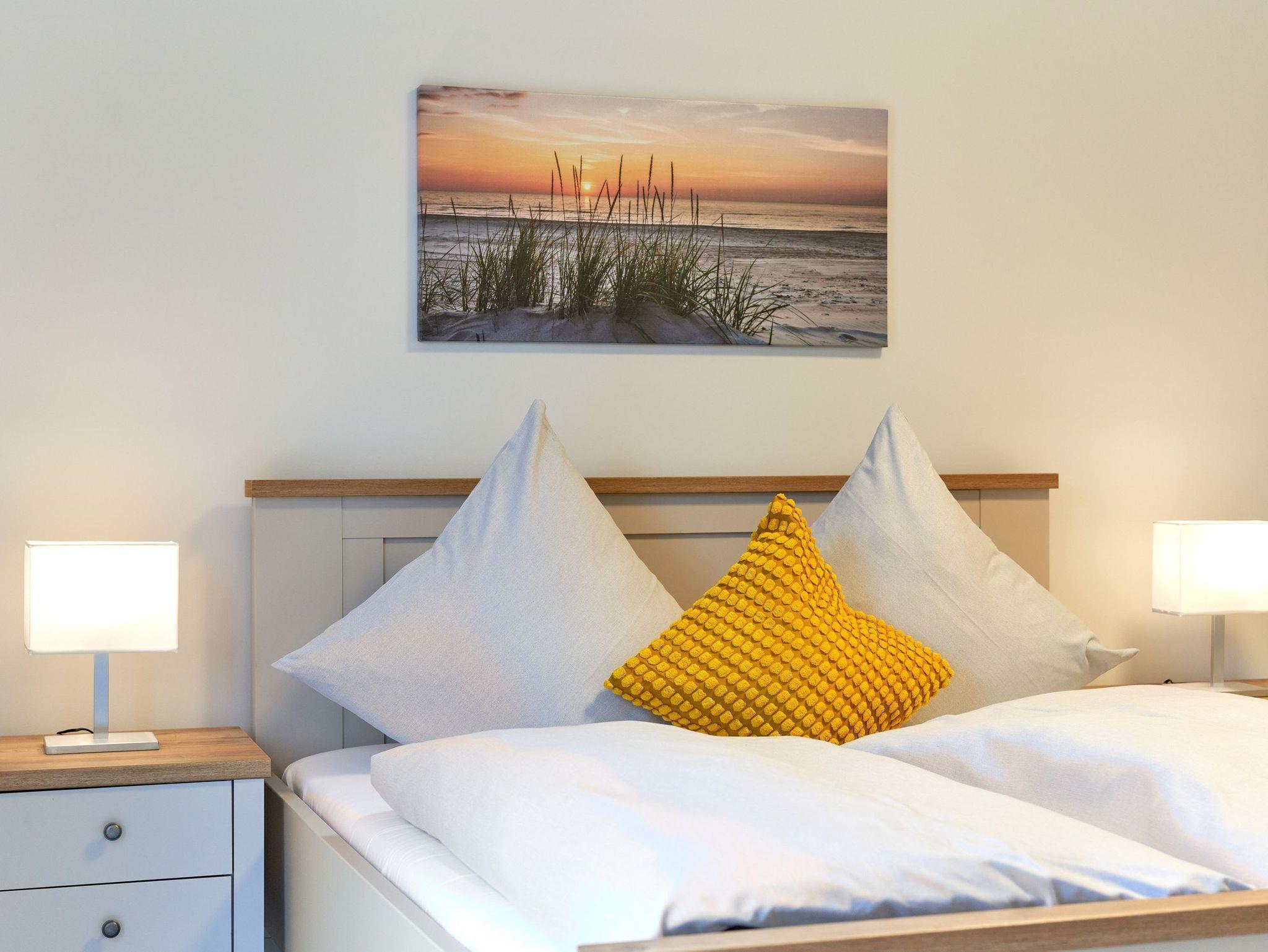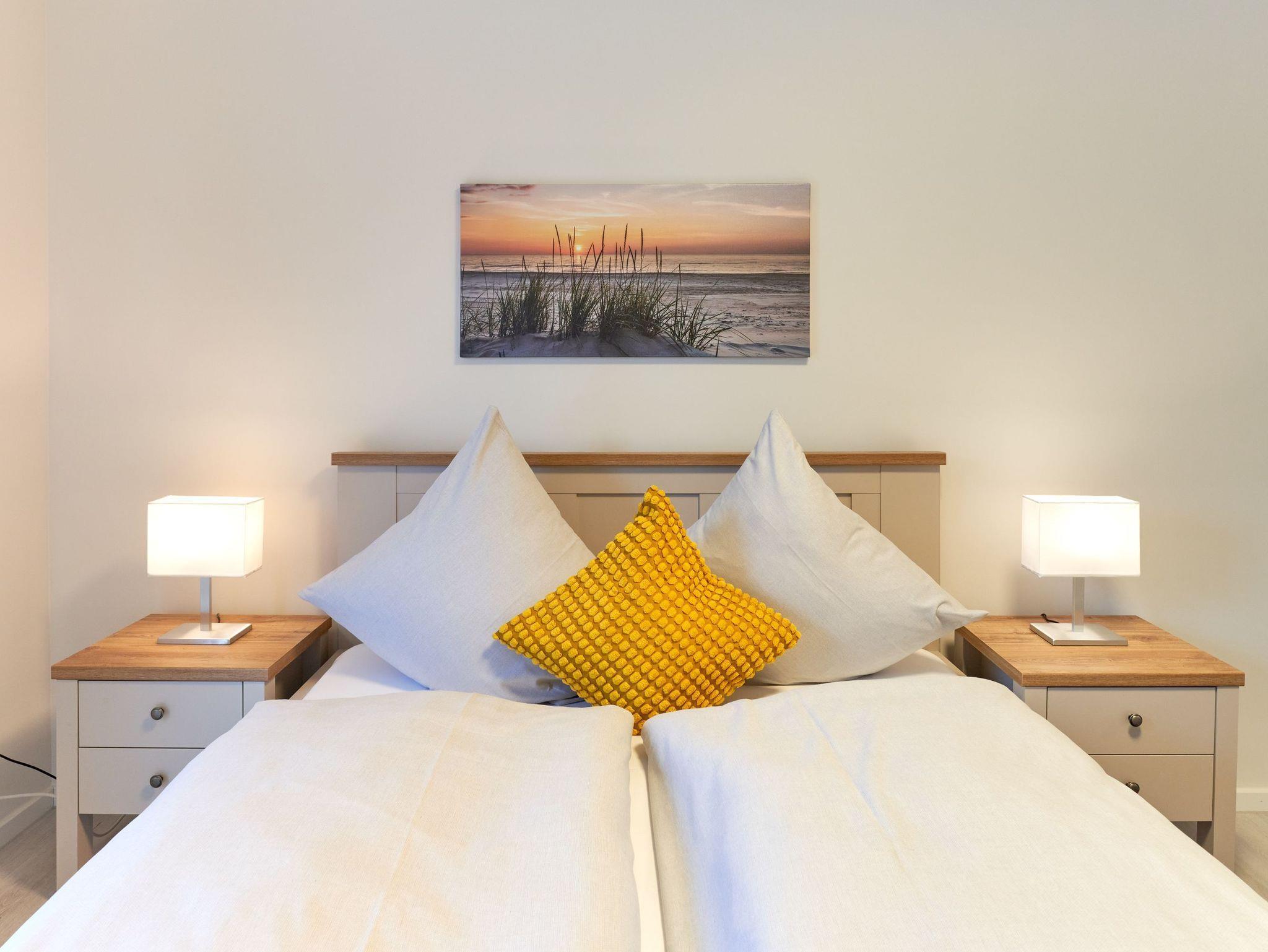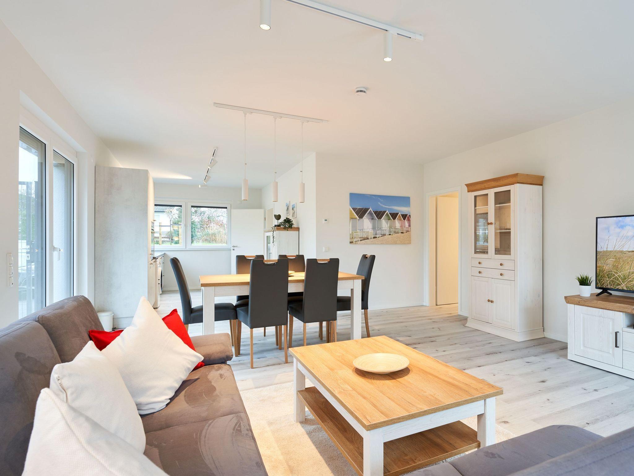 Genießen Sie Ihren Urlaub in dieser lichtdurchfluteten Ferienwohnung, die Ihnen mit ihren zwei geräumigen Schlafzimmern und dem großen Wohnzimmer mit integrierter Küchenzeile und großem Esstisch Ihre wohlverdiente Entspannung bietet.