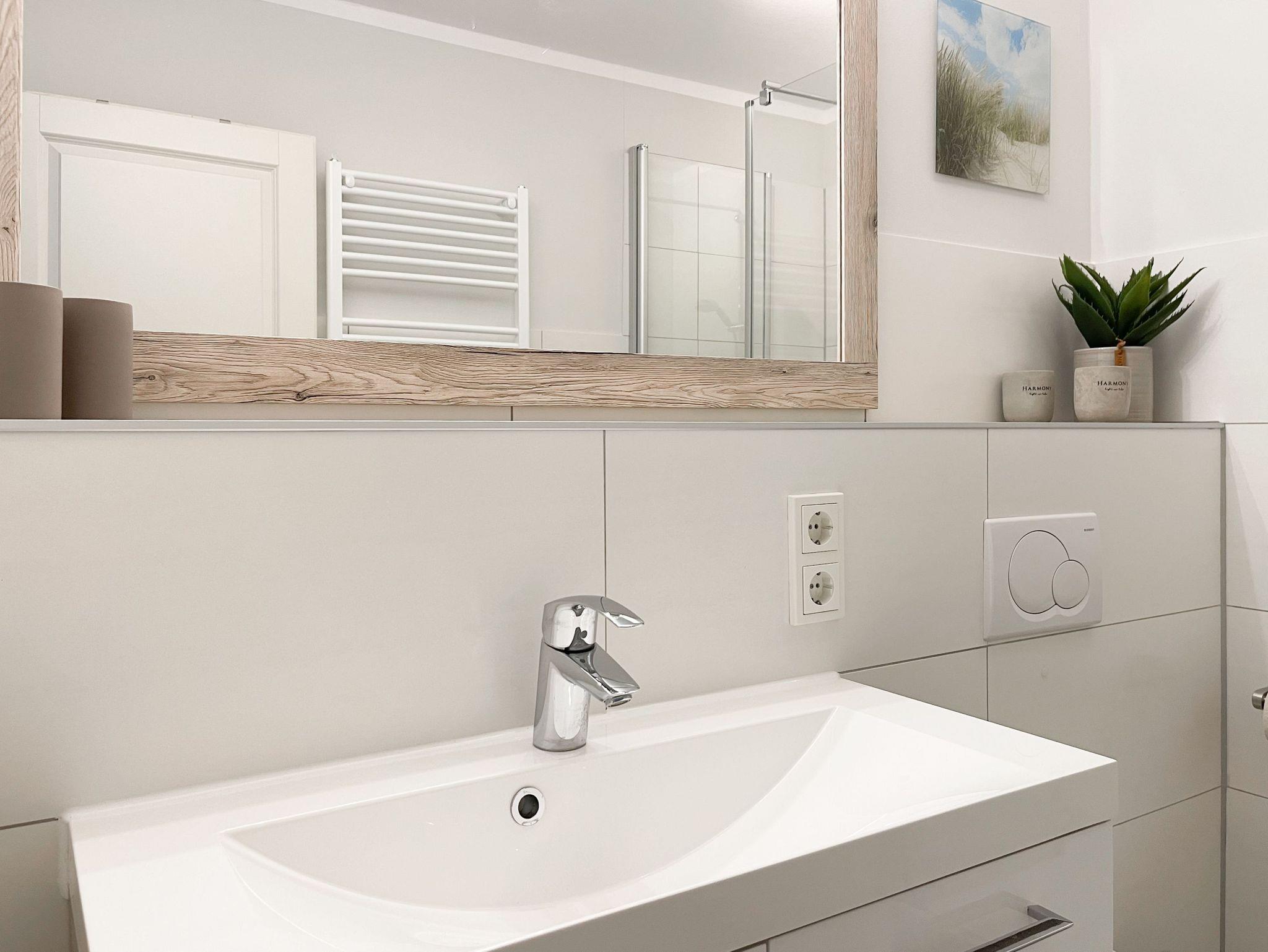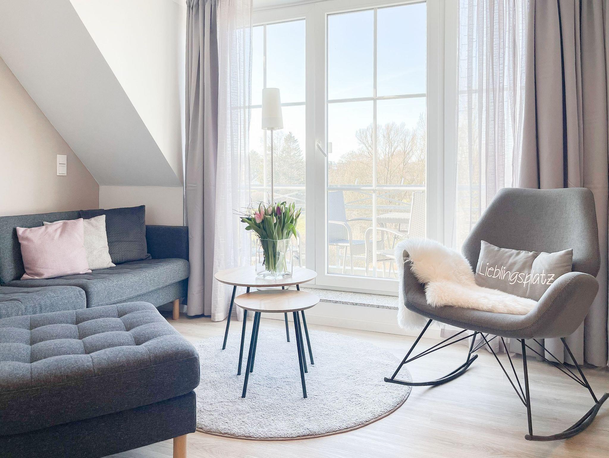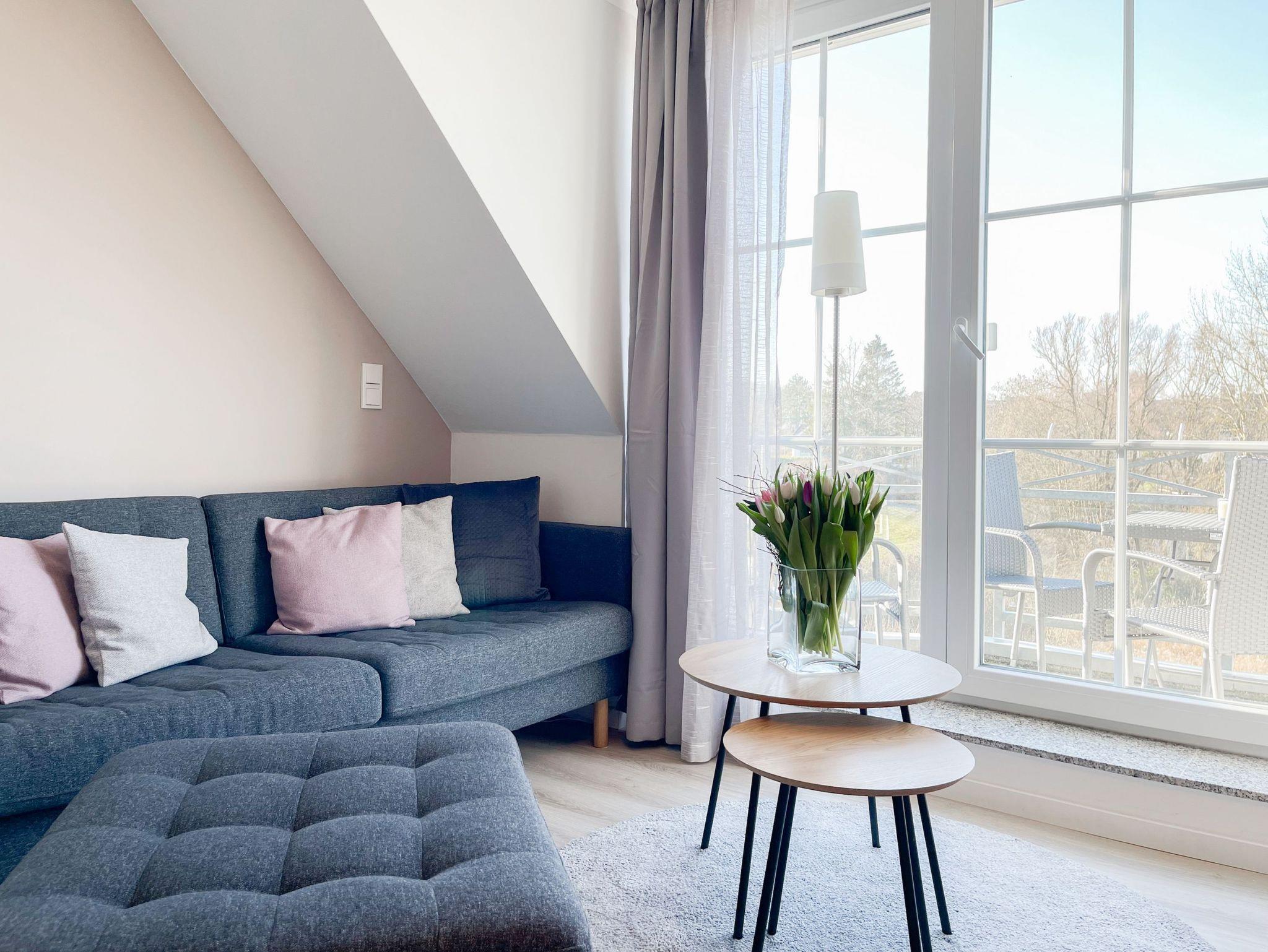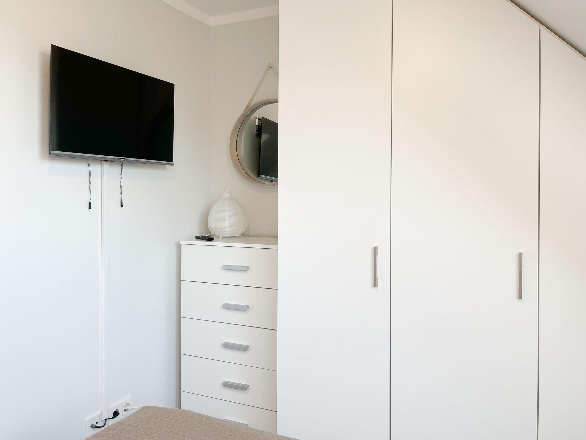 Die Ferienwohnung liegt ganz oben im 3. Obergeschoss zur lichtdurchfluteten Südseite und erstreckt sich über 2 Ebenen. Der herrliche Sonnenbalkon in Südwestausrichtung liegt direkt vor dem Wohnbereich und ist mit Gartenmöbeln und einer elektrischen Markise ausgestattet.[nbsp] Die frisch renovierte Wohnung verfügt über ein gelungenes Raumkonzept mit geschmackvollen Details sowie eine hochwertige Ausstattung und lädt 4 Personen zum Wohlfühlen in Strandnähe ein. Es erwartet Sie ein heller, freundlicher Wohnraum mit bodentiefen Fensterflächen, geschmackvoll gestaltet und hochwertig eingerichtet mit einem Sofa, TV, Bluetoothradio und einem Essbereich für 4 Personen. WLAN steht selbstverständlich zur kostenlosen Nutzung zur Verfügung. Die integrierte Küche ist bestens ausgestattet, unter anderem mit Spülmaschine, Backofen, Nespressomaschine und vielem mehr. Die Wohnung bietet 2 separate Schlafzimmer, die beide mit einem Kleiderschrank, einem zusätzlichen TV und Verdunkelungsrollos ausgestattet sind. Das Schlafzimmer auf der unteren Wohnebene ist mit einem Doppelbett (180x200) eingerichtet. Auf der oberen Wohnebene, die über eine Treppe vom Wohnbereich zu erreichen ist, befindet sich das zweite Schlafzimmer mit sehr schönem Blick auf die Ostsee, ausgestattet mit[nbsp] einem Doppelbett (140x200) und einem Einzelbett (90x200). Das neue Bad verfügt über Dusche, WC, Waschtisch und Handtuchtrockner.