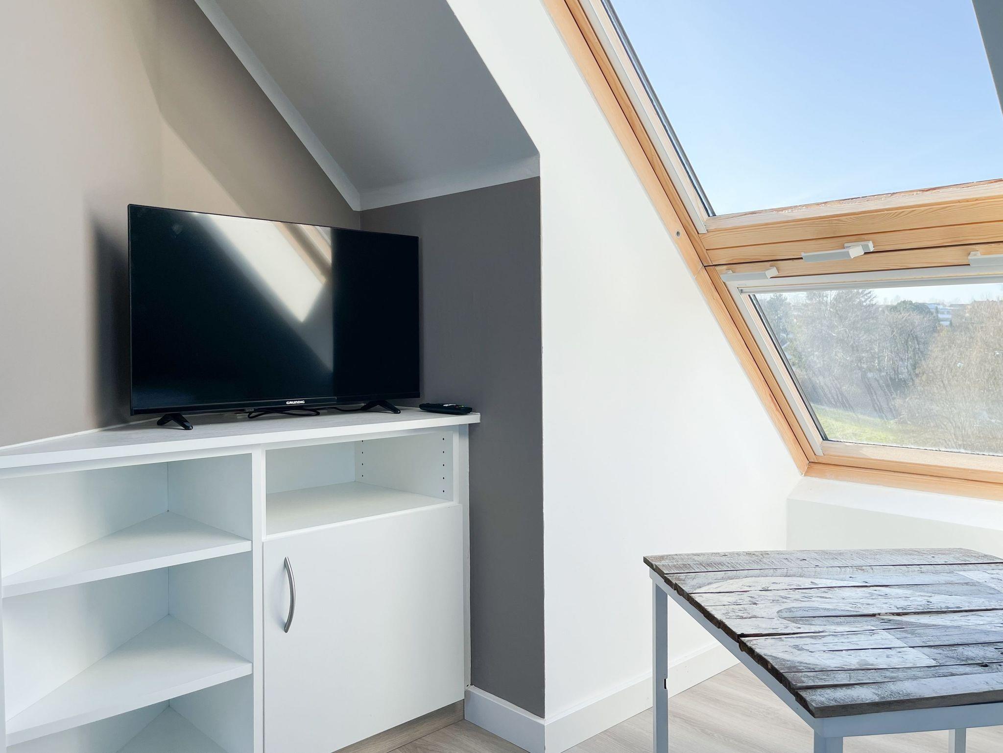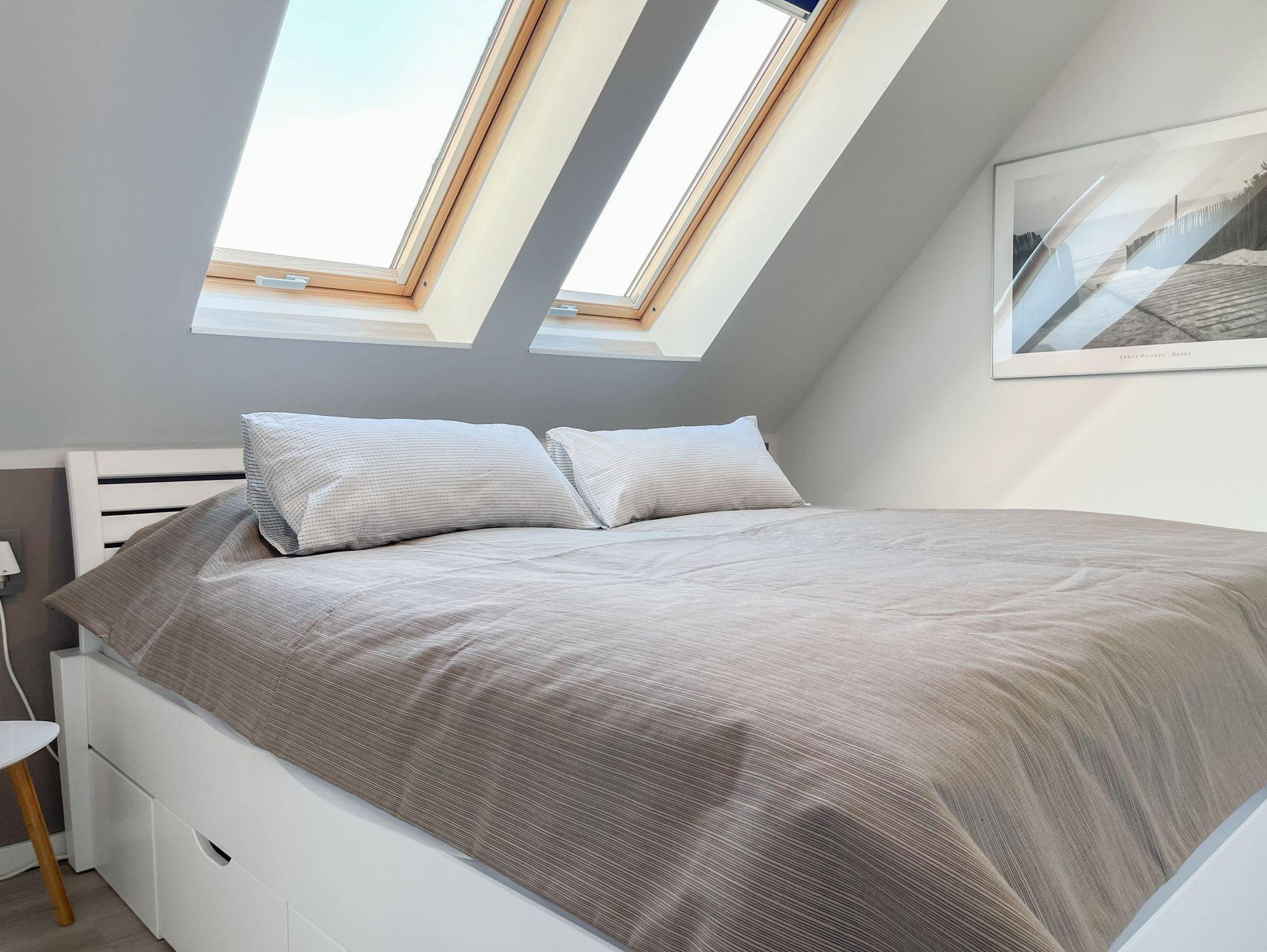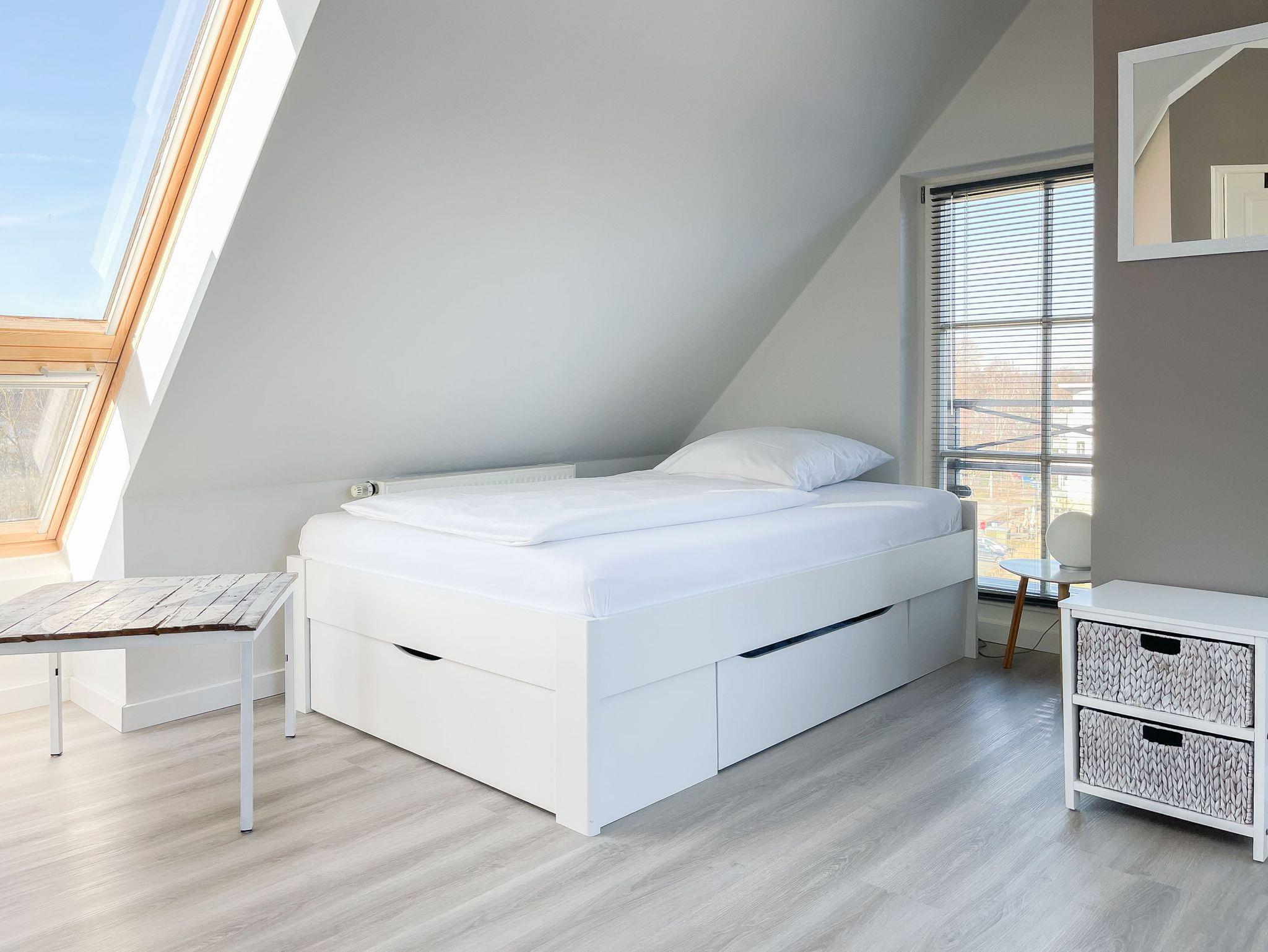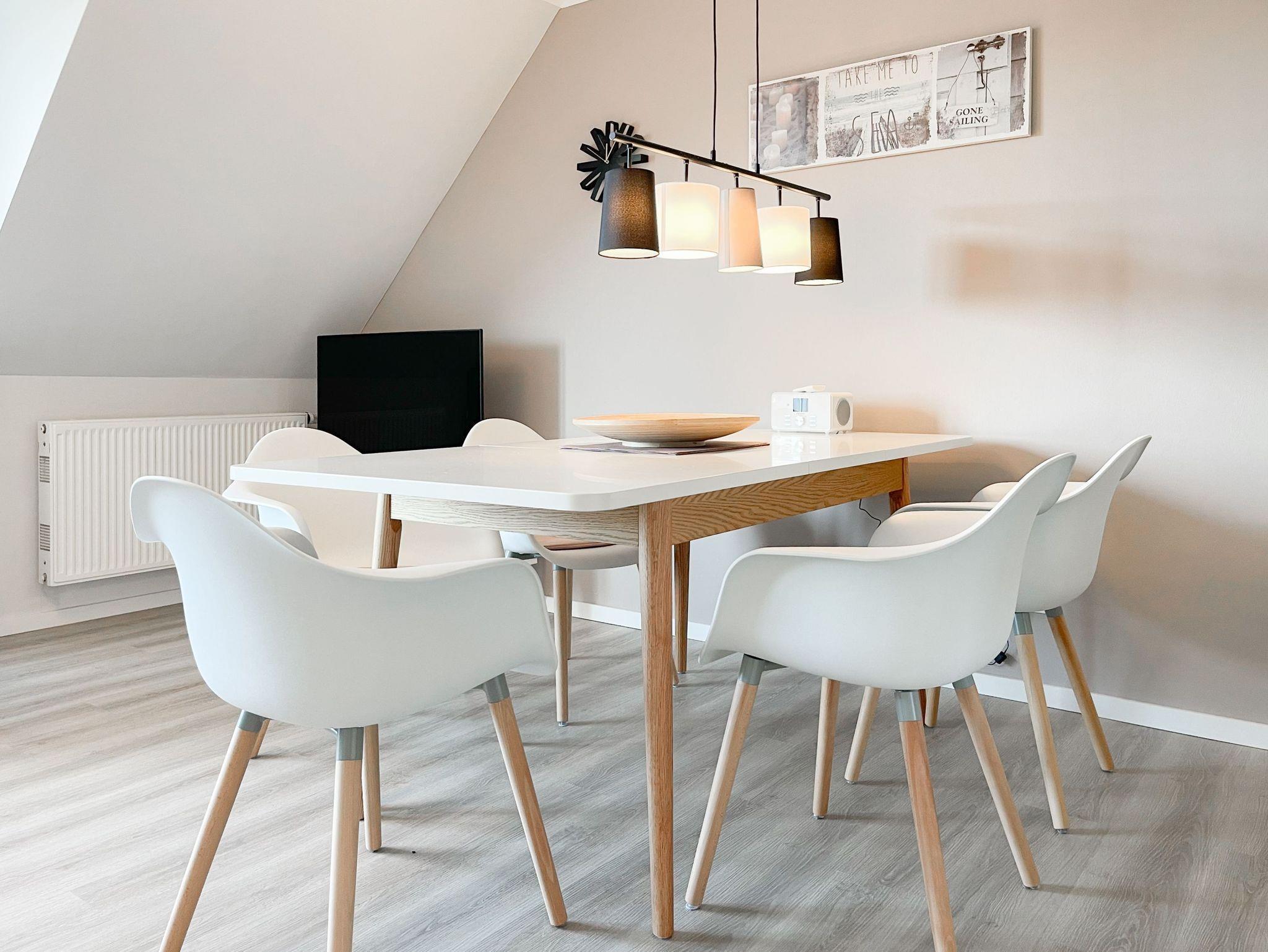 Die Ferienwohnung liegt ganz oben im 3. Obergeschoss zur lichtdurchfluteten Südseite und erstreckt sich über 2 Ebenen. Der herrliche Sonnenbalkon in Südwestausrichtung liegt direkt vor dem Wohnbereich und ist mit Gartenmöbeln und einer elektrischen Markise ausgestattet.[nbsp] Die frisch renovierte Wohnung verfügt über ein gelungenes Raumkonzept mit geschmackvollen Details sowie eine hochwertige Ausstattung und lädt 4 Personen zum Wohlfühlen in Strandnähe ein. Es erwartet Sie ein heller, freundlicher Wohnraum mit bodentiefen Fensterflächen, geschmackvoll gestaltet und hochwertig eingerichtet mit einem Sofa, TV, Bluetoothradio und einem Essbereich für 4 Personen. WLAN steht selbstverständlich zur kostenlosen Nutzung zur Verfügung. Die integrierte Küche ist bestens ausgestattet, unter anderem mit Spülmaschine, Backofen, Nespressomaschine und vielem mehr. Die Wohnung bietet 2 separate Schlafzimmer, die beide mit einem Kleiderschrank, einem zusätzlichen TV und Verdunkelungsrollos ausgestattet sind. Das Schlafzimmer auf der unteren Wohnebene ist mit einem Doppelbett (180x200) eingerichtet. Auf der oberen Wohnebene, die über eine Treppe vom Wohnbereich zu erreichen ist, befindet sich das zweite Schlafzimmer mit sehr schönem Blick auf die Ostsee, ausgestattet mit[nbsp] einem Doppelbett (140x200) und einem Einzelbett (90x200). Das neue Bad verfügt über Dusche, WC, Waschtisch und Handtuchtrockner.