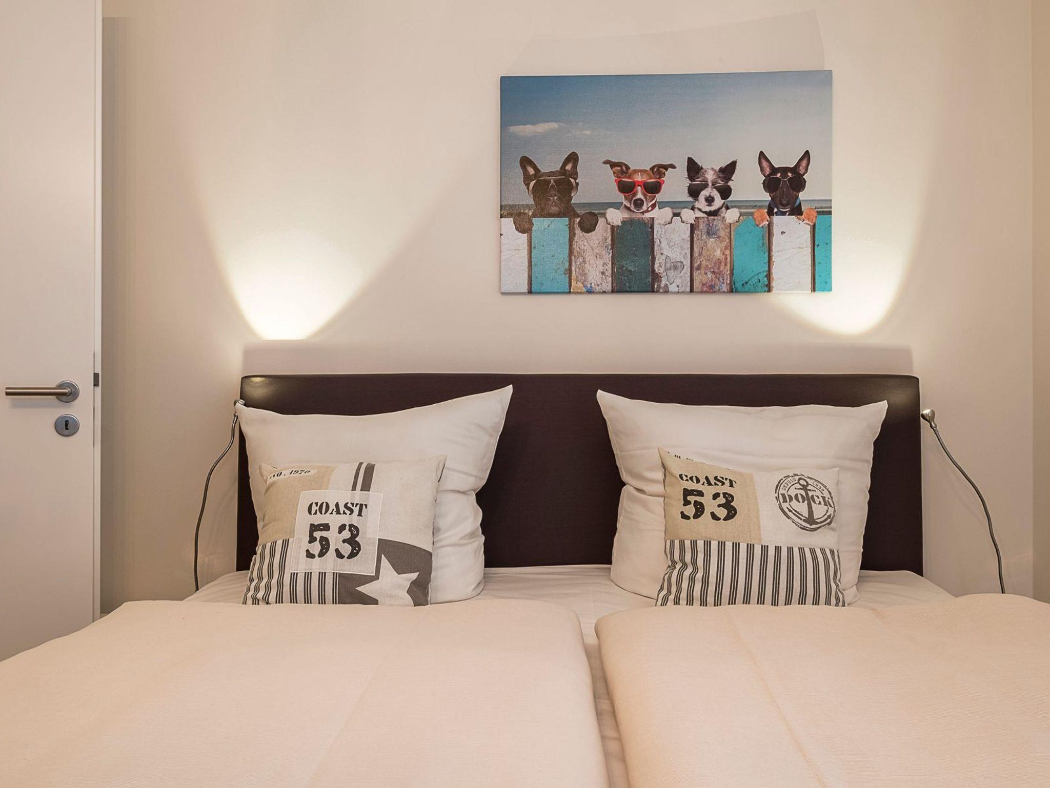 Diese Ferienwohnung bietet Ihnen einen gemütlichen Wohn-Essbereich, mit einer Couch sowie einem XXL-Sessel. Neben dem Flachbildfernseher steht Ihnen eine Stereoanlage zur Verfügung. Kostenloses WLAN ist selbstverständlich. Die offene Küche mit einem sehr schönen Esstresen ist komplett ausgestattet und lässt keine Wünsche offen. Neben der Filterkaffeemaschine steht Ihnen hier eine zusätzliche Kaffeepadmaschine zur Verfügung. Die Schlafzimmer sind je mit einem geräumigen Schrank, einem Boxspringbett (1,80 x 2,00m ) und einem Flachbildfernseher ausgestattet. Zur Verdunkelung sind elektrische Außenrollläden angebracht. Das große Duschbad verfügt über eine bodentiefe Dusche sowie einen großen Spiegel. Neben der Fußbodenheizung ist hier ein zusätzlicher Handtuchheizkörper angebracht. Ein zur Wohnung gehörender Tiefgaragenstellplatz sorgt für eine sichere Unterbringung Ihres Autos.
