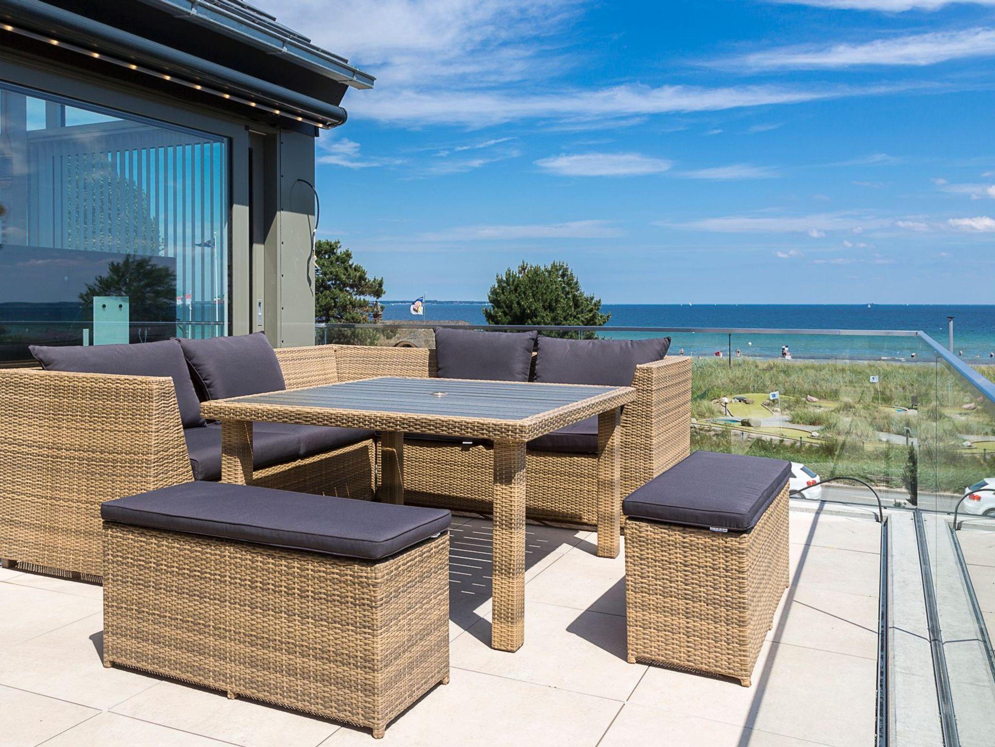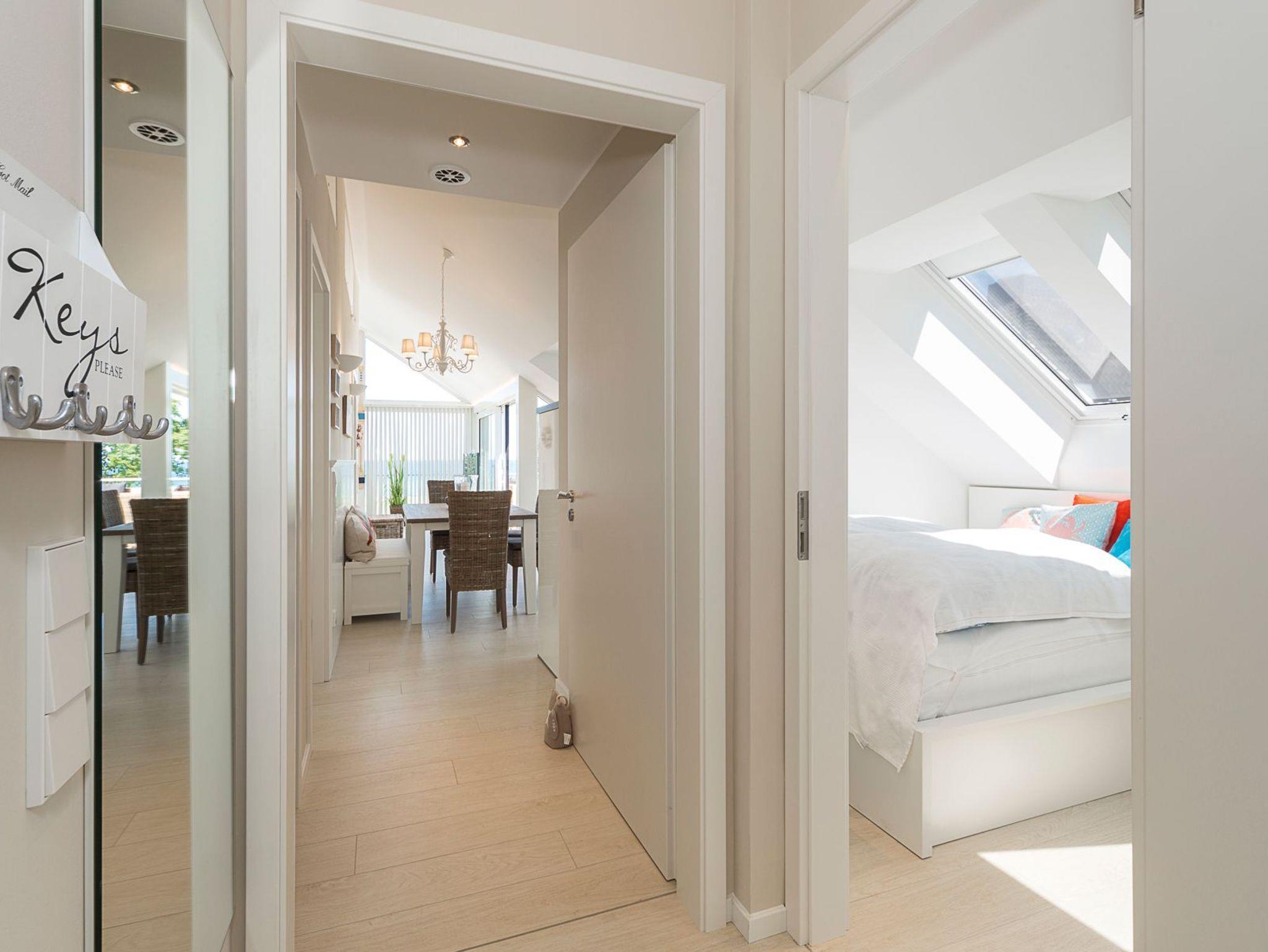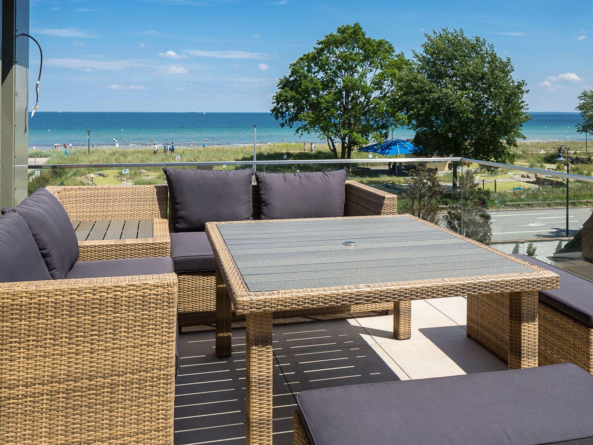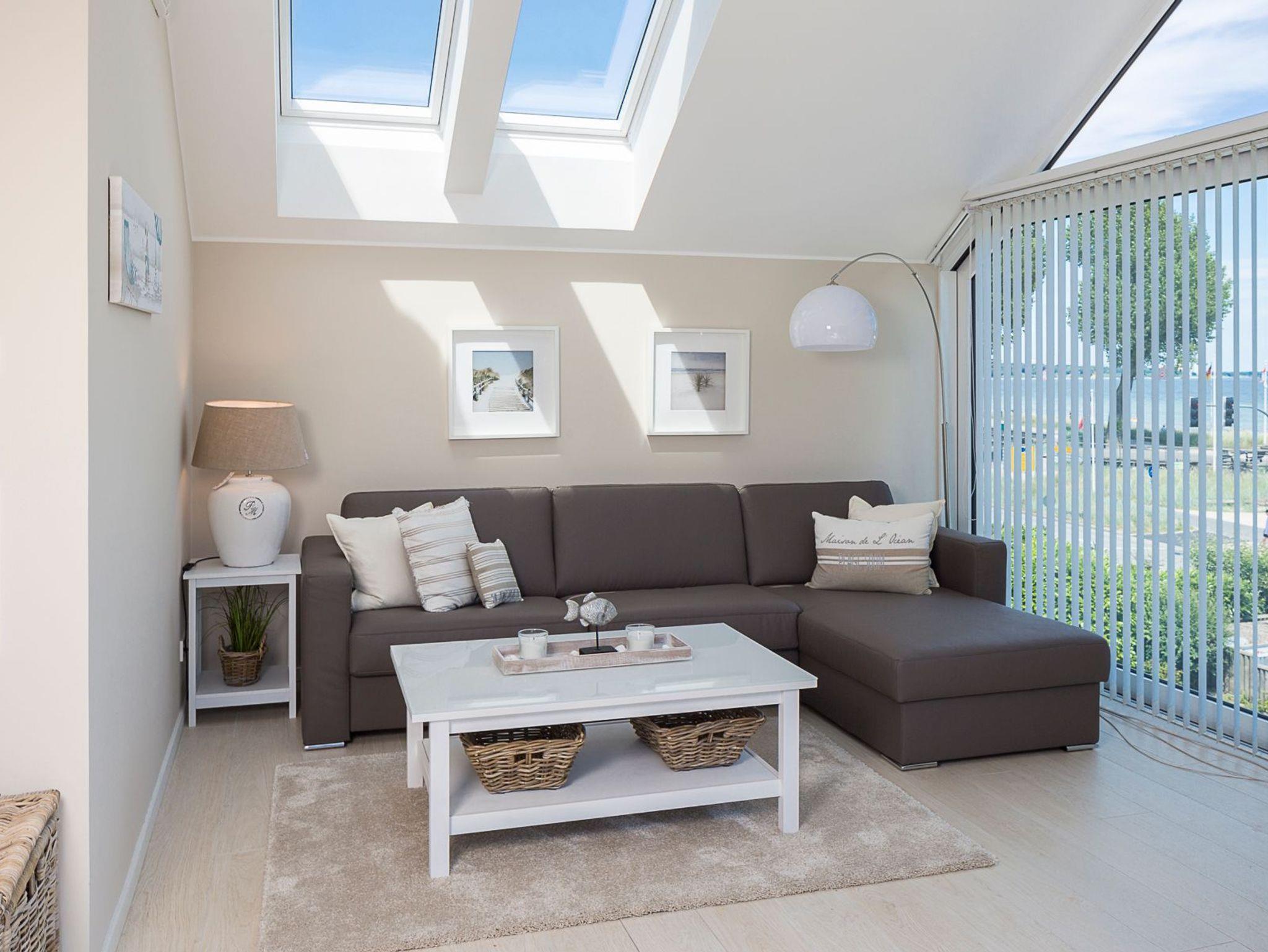 Es erwartet Sie schon beim Betreten der Wohnung der herrliche Blick auf die Ostsee. Der Wohnbereich dieser Traumwohnung ist durch die bodentiefen Fenster und großen Dachfenster absolut hell und lichtdurchflutet, selbstverständlich ist bei Bedarf ein Sichtschutz vorhanden. Der moderne Wohnbereich bietet Ihnen einen gemütlichen Essbereich (auch von hier genießen Sie die großartige Sicht auf die Ostsee), mit ausreichend Platz für 5 Personen. Hier können Sie bequem essen sowie gesellige Stunden verbringen. Die moderne Küche ist komplett ausgestattet und lässt keine Wünsche offen.