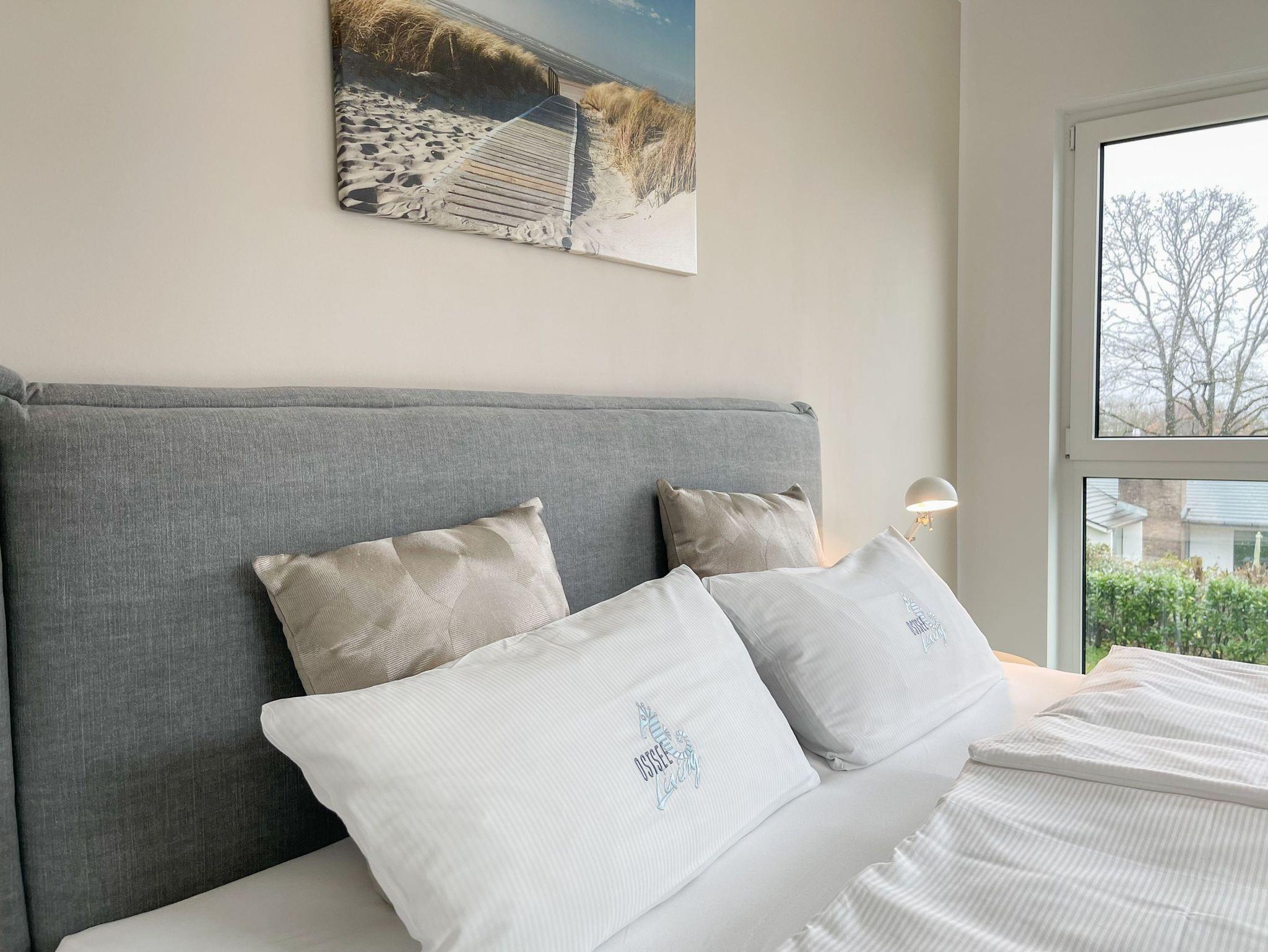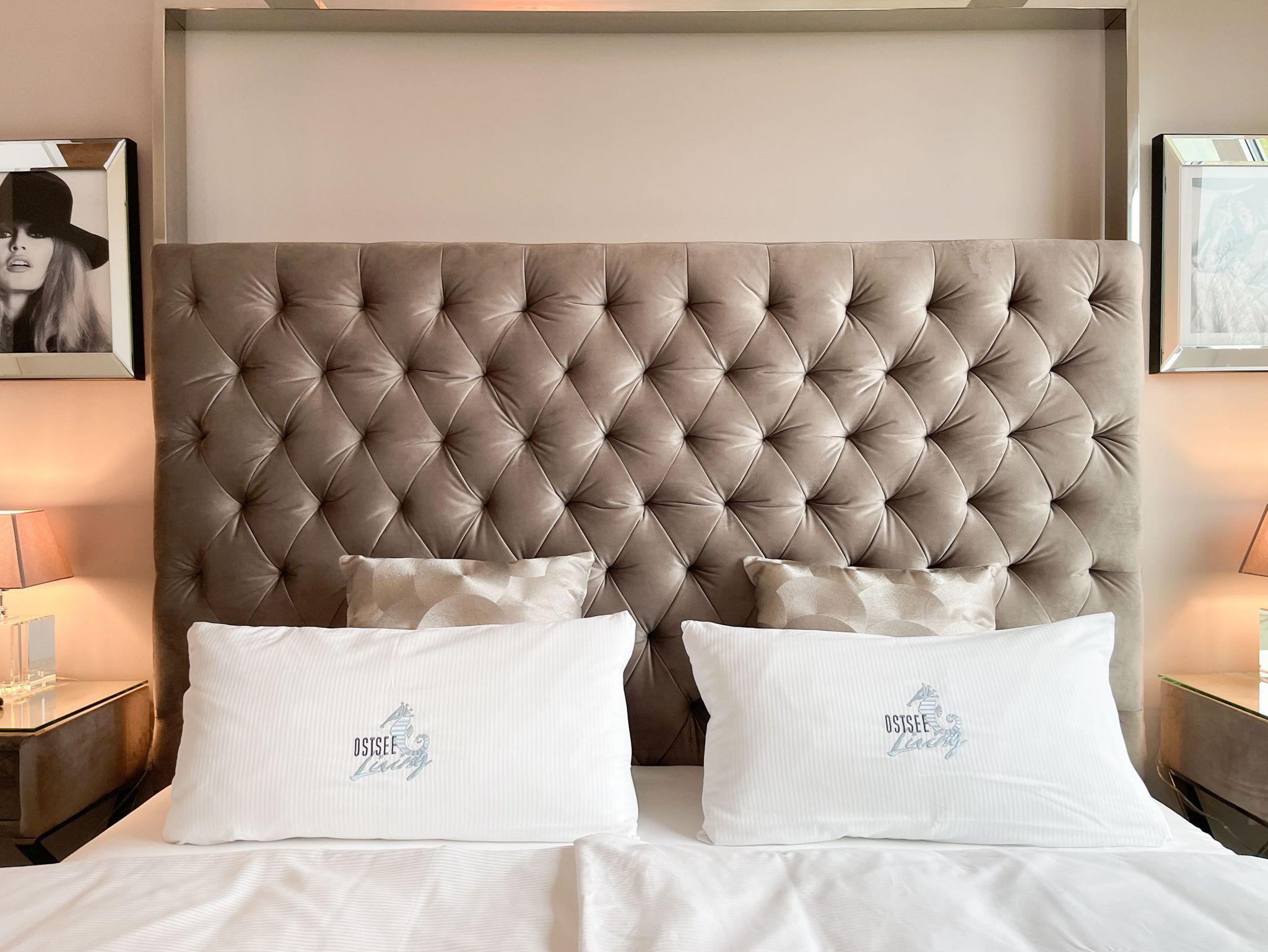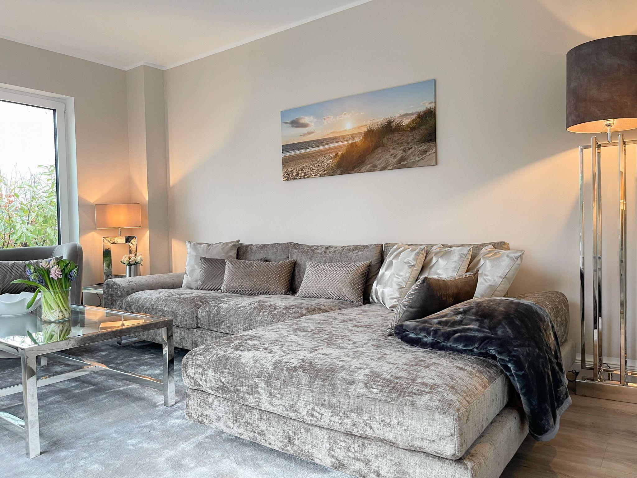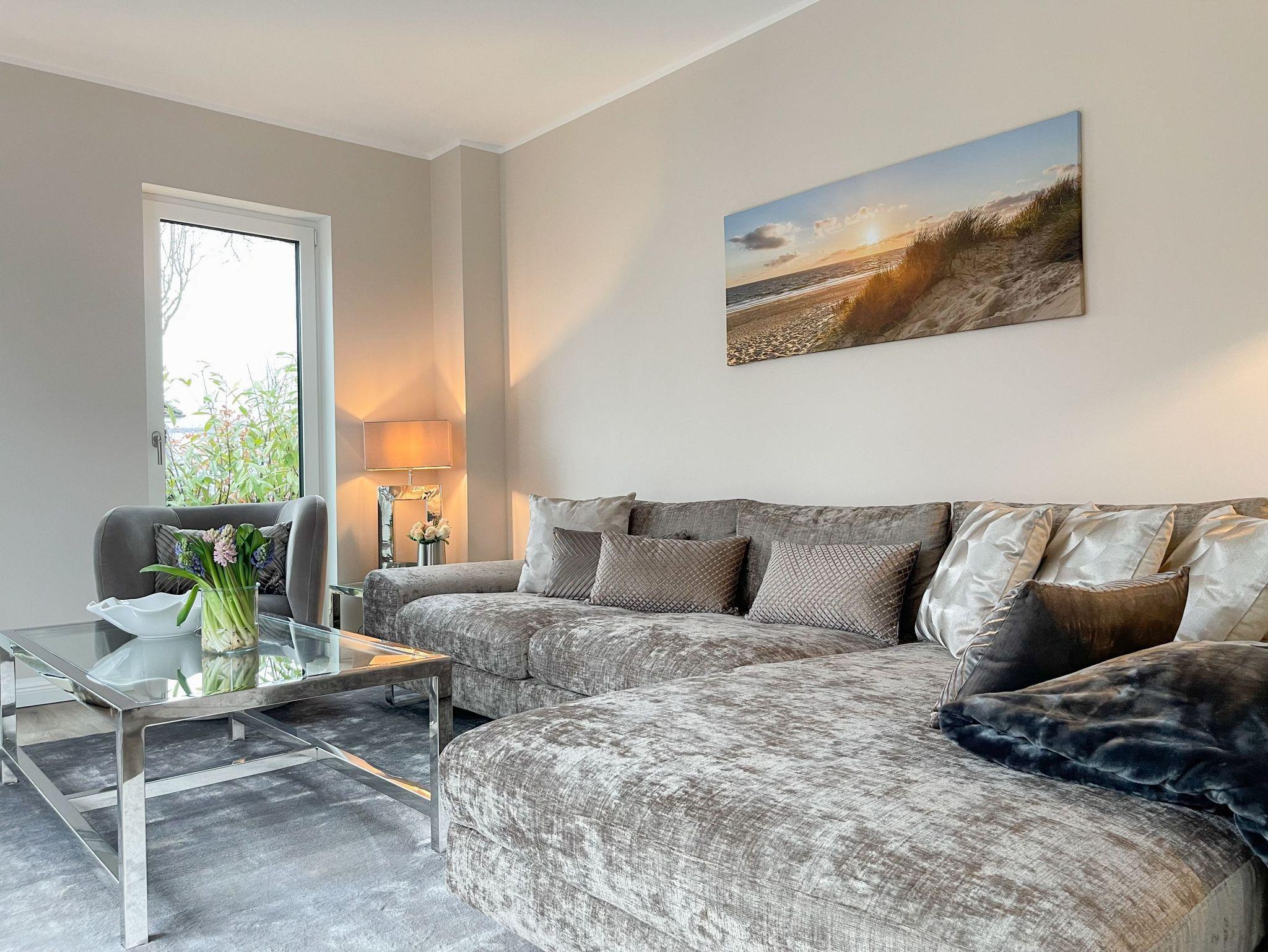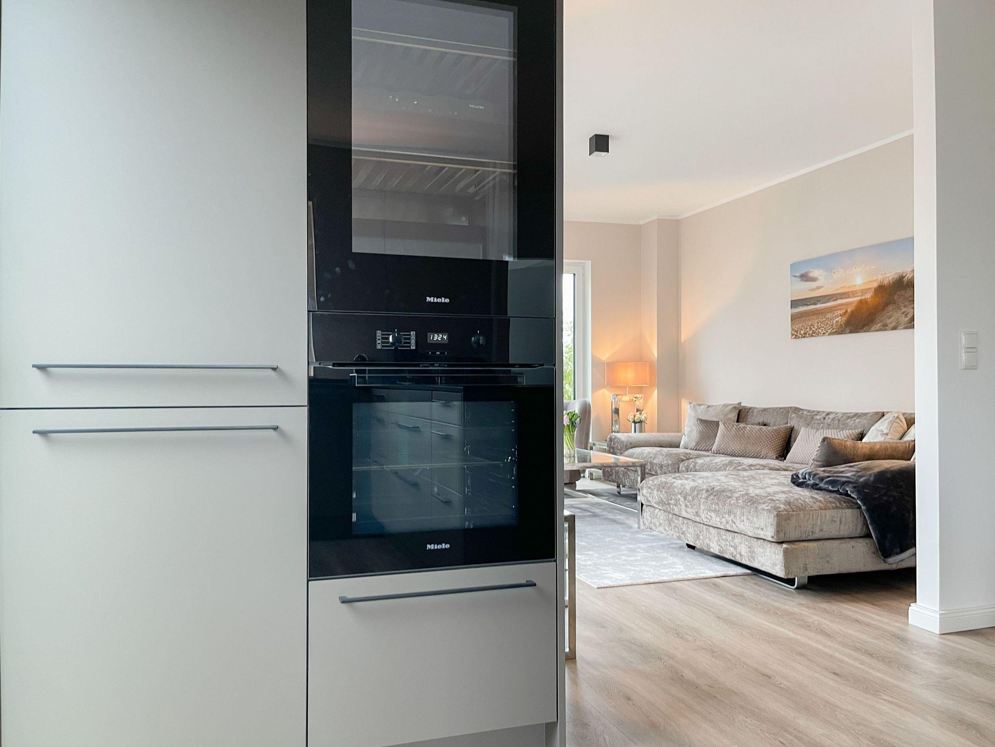 Es erwartet Sie eine äußerst hochwertig ausgestattete und geschmackvoll eingerichtete Ferienwohnung, die mit 2 separaten Schlafzimmern ausreichend Raum für 4 Personen bietet, um einen entspannten Urlaub in einem herrlichen Ambiente zu verleben. Fußbodenheizung, elektrische Außenjalousien und bodentiefe Fensterelemente, die für ein offenes Raumgefühl sorgen, gewährleisten einen hohen Wohnstandard. Mittelpunkt der Ferienwohnung bildet die Siematic Design Küche mit Kochinsel in bester Ausstattung, die zum gemeinsamen Kochen einlädt und der anschließende Essbereich im Hampton Style. Der behagliche Wohnbereich, eingerichtet mit Sofa und TV, bietet Blick und Zugang auf die großzügig angelegte Südostterrasse mit Gartenmöbeln und Sonnenliegen, um den Tag bei einem Glas Wein mit Ostseeblick ausklingen zu lassen. Beide Schlafzimmer bieten einen herrlichen Ausblick bis auf[nbsp] das Meer und sind mit hochwertigem Teppichboden, Doppelbetten (180x200)[nbsp] und einem Kleiderschrank ausgestattet. Eines der Schlafzimmer ist zusätzlich mit einem TV ausgestattet. Im Flur des Eingangsbereichs befindet sich ein weiterer Einbauschrank zum Unterbringen von Jacken Mänteln. Das Bad ist sehr hochwertig und modern, ausgestattet mit einer XXL Walk In Dusche. Waschmaschine und Trockner befinden sich in einem Einbauschrank. WLAN steht selbstverständlich zur kostenlosen Nutzung zur Verfügung.