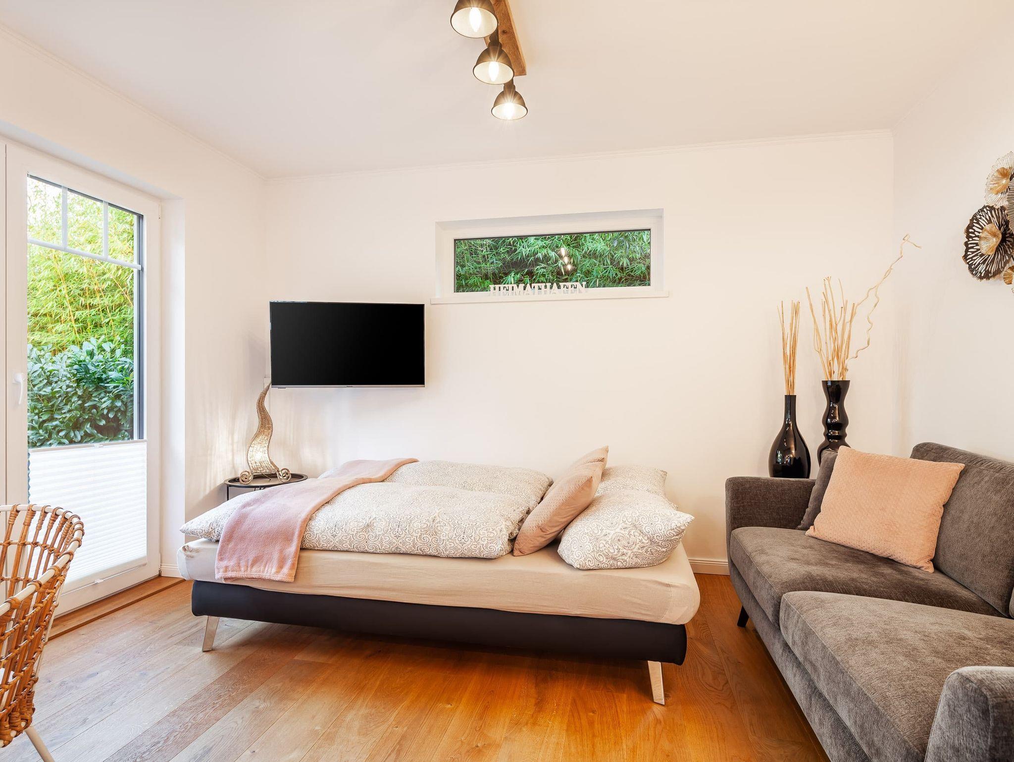 Unsere Wohnung ist darauf ausgerichtet, Ihnen erholsamen Schlaf zu ermöglichen. Das Schlafzimmer ist mit hochwertigen, schalldichten Fenstern ausgestattet und bietet ausreichend Verdunklungsmöglichkeiten. Die natürliche Bauweise unterstützt zudem ein angenehmes Raumklima, ähnlich einer Klimaanlage. Ein zusätzliches Fenster Element zum Wohnbereich verleiht dem Schlafzimmer einen besonderen Charme und lässt sich je nach Wunsch öffnen.