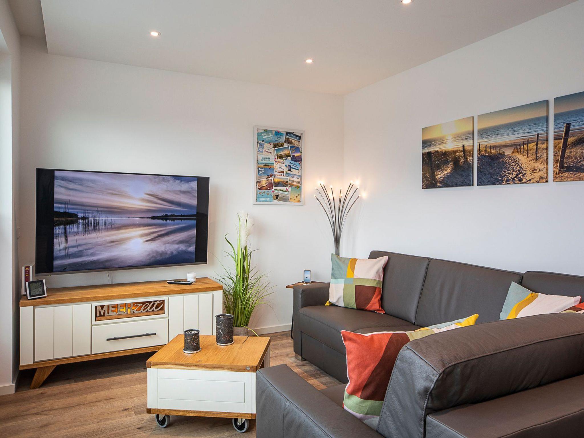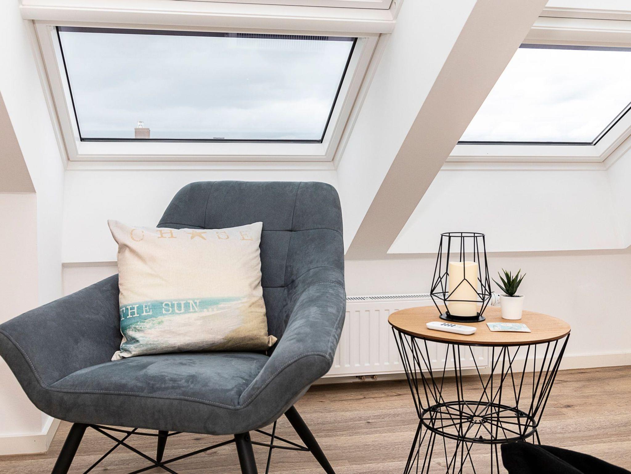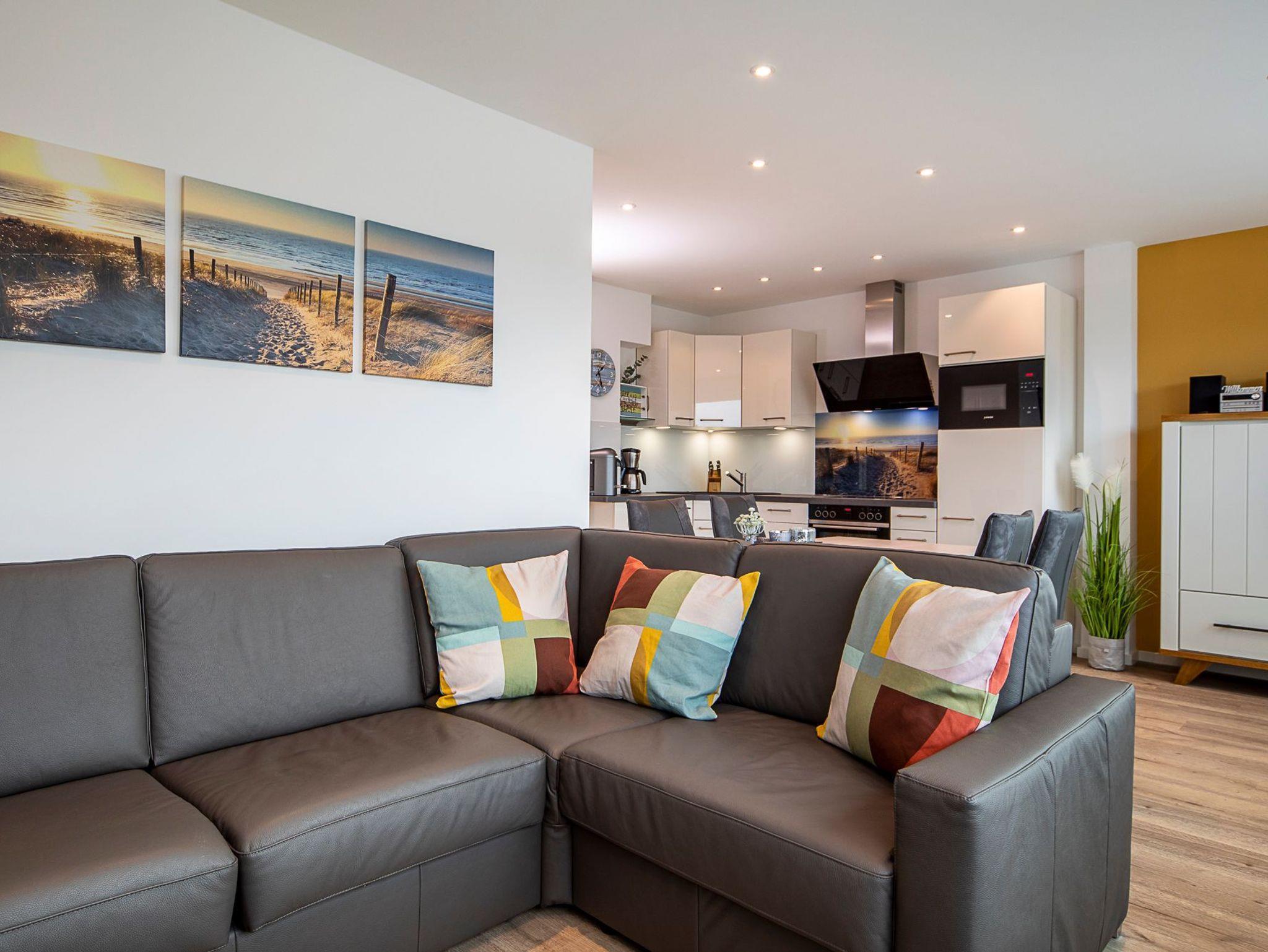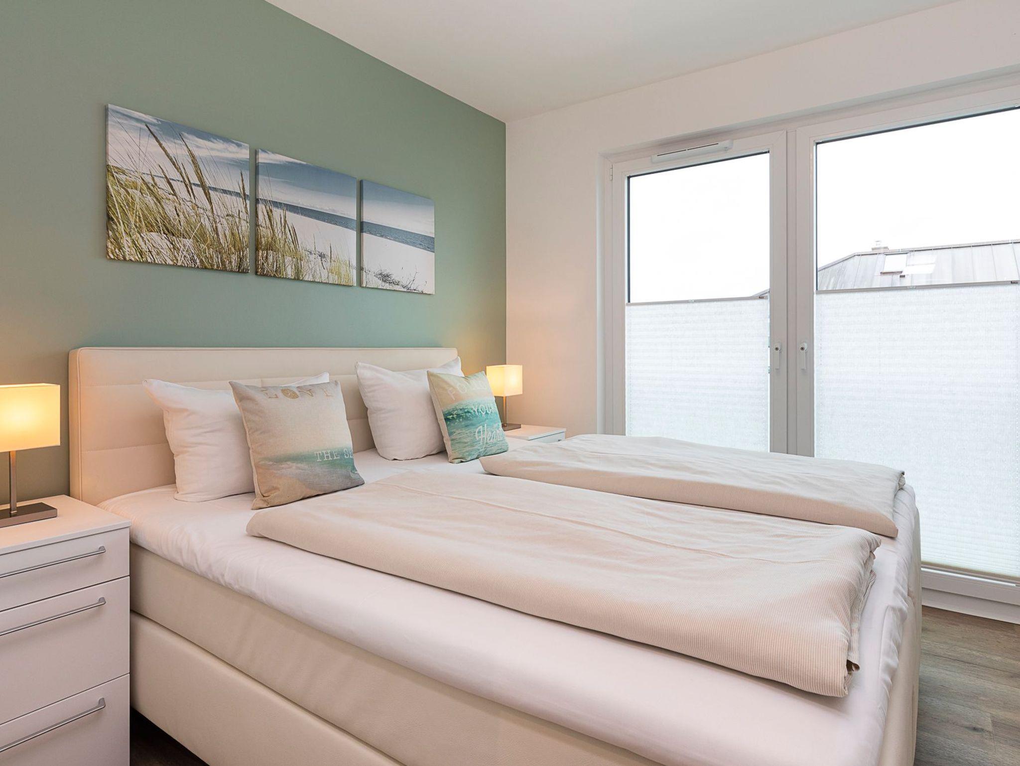 Tolle 3-Zimmerwohnung im 3. OG, 75 m² aufgeteilt auf zwei Ebenen, plus Dachterrasse, bequem mit dem Fahrstuhl zu erreichen. Außenrollläden, kostenfreies WLAN, Tiefgaragenstellplatz (Durchfahrthöhe 2,00 m), Strandkorb am nahegelegenen Strand (saisonbedingt 15.05. ? 15.09.) inklusive.