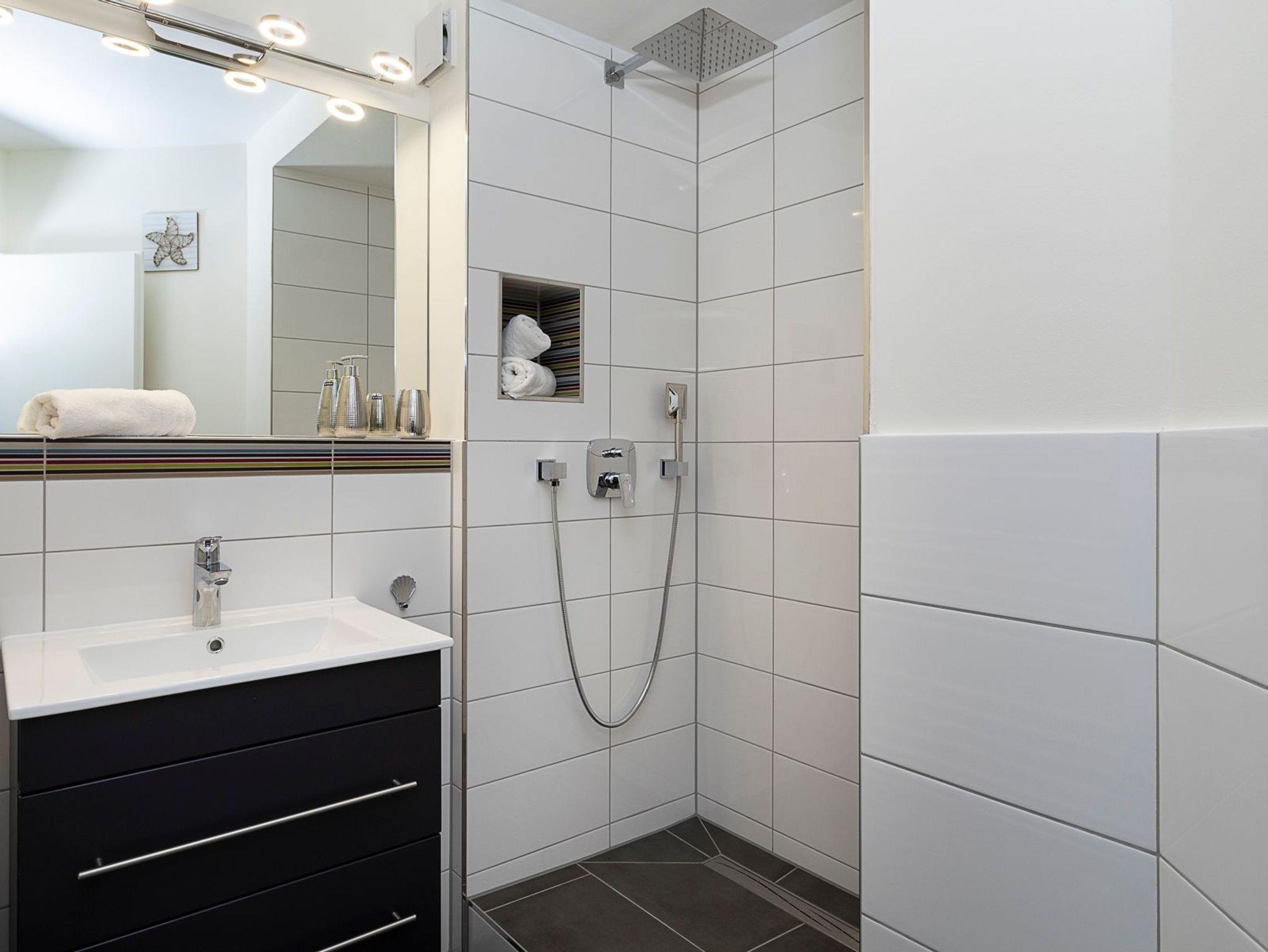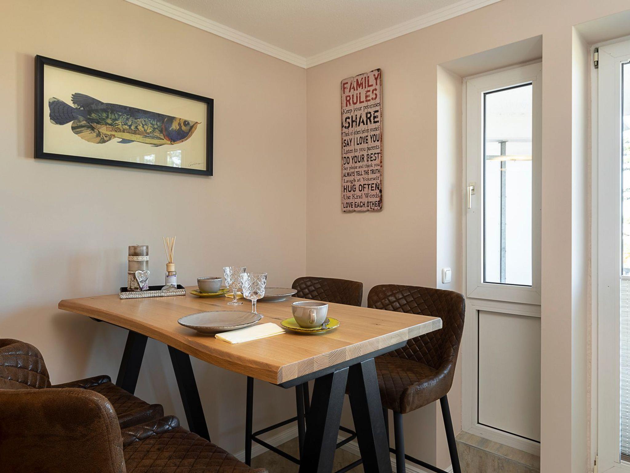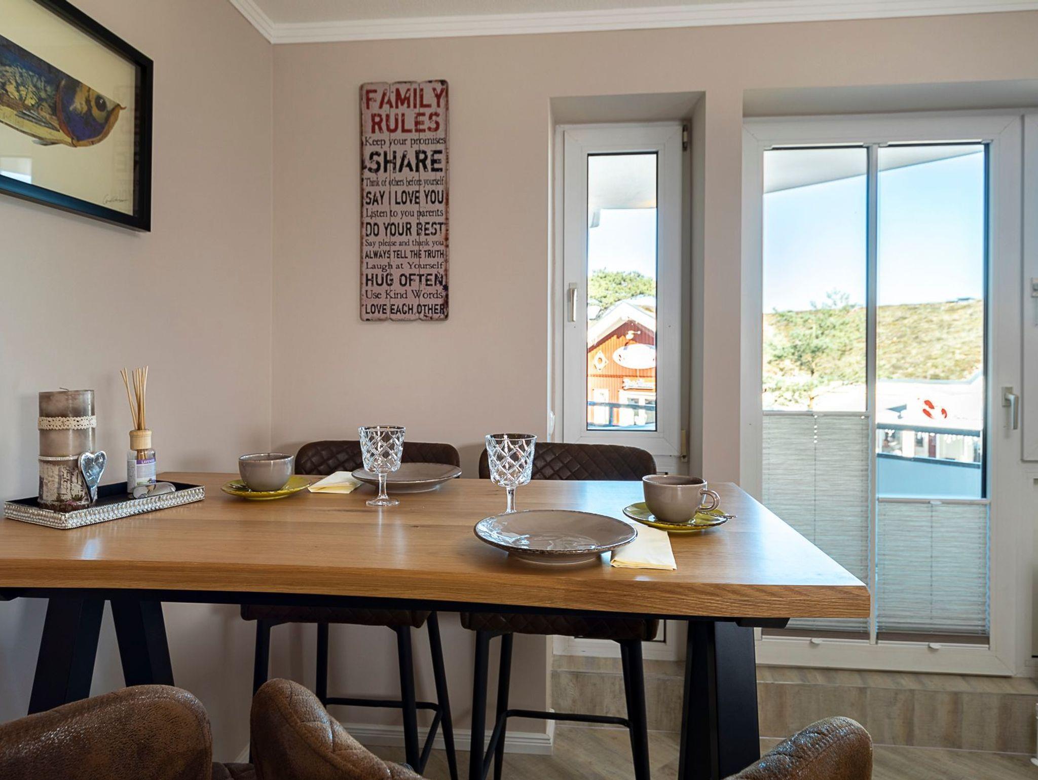 Der Wohn-Essbereich ist mit einer bequemen Couch (welche schnell in ein komfortables Schlafsofa umgebaut werden kann), einem Sessel sowie Beistelltischchen eingerichtet. Neben dem Flachbildfernseher steht Ihnen selbstverständlich kostenloses WLAN zur Verfügung. Die helle Küche mit angrenzendem Esstisch ist komplett ausgestattet. Schöne überdachte Loggia mit Morgensonne und Blick auf die Ostsee. Hier stehen Ihnen Tisch und Stühle zur Verfügung. Das Schlafzimmer ist mit einem Doppelbett (1,60 x 2,00m) und einem geräumigen Kleiderschrank sowie einem Flachbildfernseher ausgestattet. Auch von hier aus haben Sie einen Ostseeblick und Zugang zur Loggia. Das Badezimmer verfügt über eine bodentiefe Dusche und einen Handtuchheizkörper. Eine sehr angenehme Lösung in dieser Wohnung ist das separate WC.