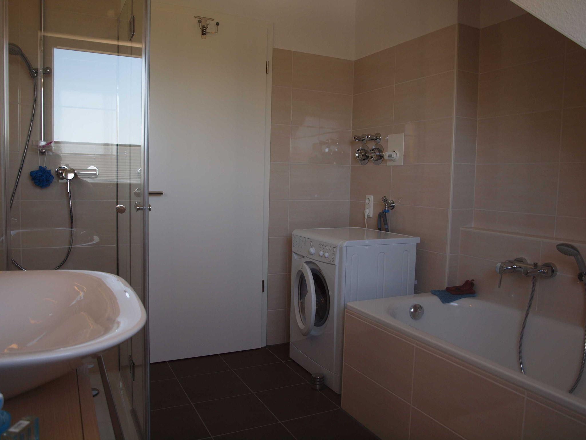 Die Wohnung ist mit Laminat ausgelegt, hat ein Badezimmer mit Badewanne und Dusche, sowie eine zusätzliche Toilette im Dachgeschoss. Aus dem Wohnzimmer kommt man auf die großzügige Loggia, die besonders an den Sonnentagen zum Ausruhen einlädt. Die Küche ist so eingerichtet, das alles zum täglichen Bedarf vorhanden ist.