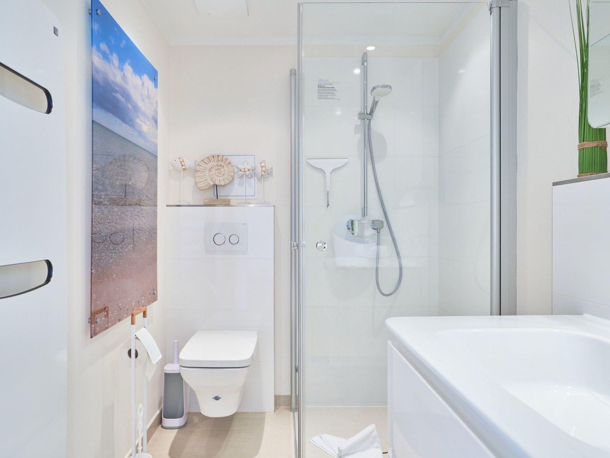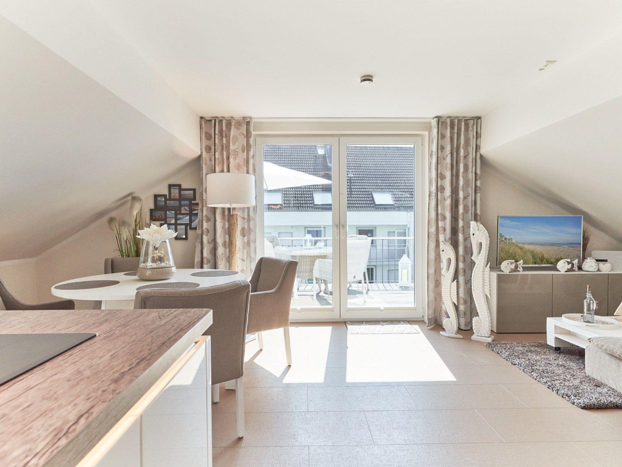 Sehr ansprechende, hochwertige und mit viel Liebe eingerichtete Ferienwohnung. Sie ist durchgehend mit einem Plankendesign in heller Optik und Fußbodenheizung ausgestattet. Der Wohnraum verfügt über einen Essbereich sowie einen gemütlichen Sitzbereich. Die Couch lässt sich mit nur wenigen Handgriffen in eine bequeme Schlafcouch (1,40 x 2,00 m) umfunktionieren. Neben dem Flachbildfernseher steht Ihnen eine moderne HiFi-Anlage zur Verfügung. Kostenloses WLAN ist selbstverständlich. Der Balkon Richtung Süden ist mit einem runden Rattantisch mit Glasplatte und vier Stühlen ausgestattet. Die moderne Küche lässt keine Wünsche offen. Filterkaffeemaschine, Waschmaschine, Wärmeschublade, Eierkocher, Toaster, Mixer, Passierstab sowie eine Alessi-Saftpresse finden hier unter anderem ihren Platz. Helles Duschbad, bodentiefe Dusche sowie Handtuchheizkörper.