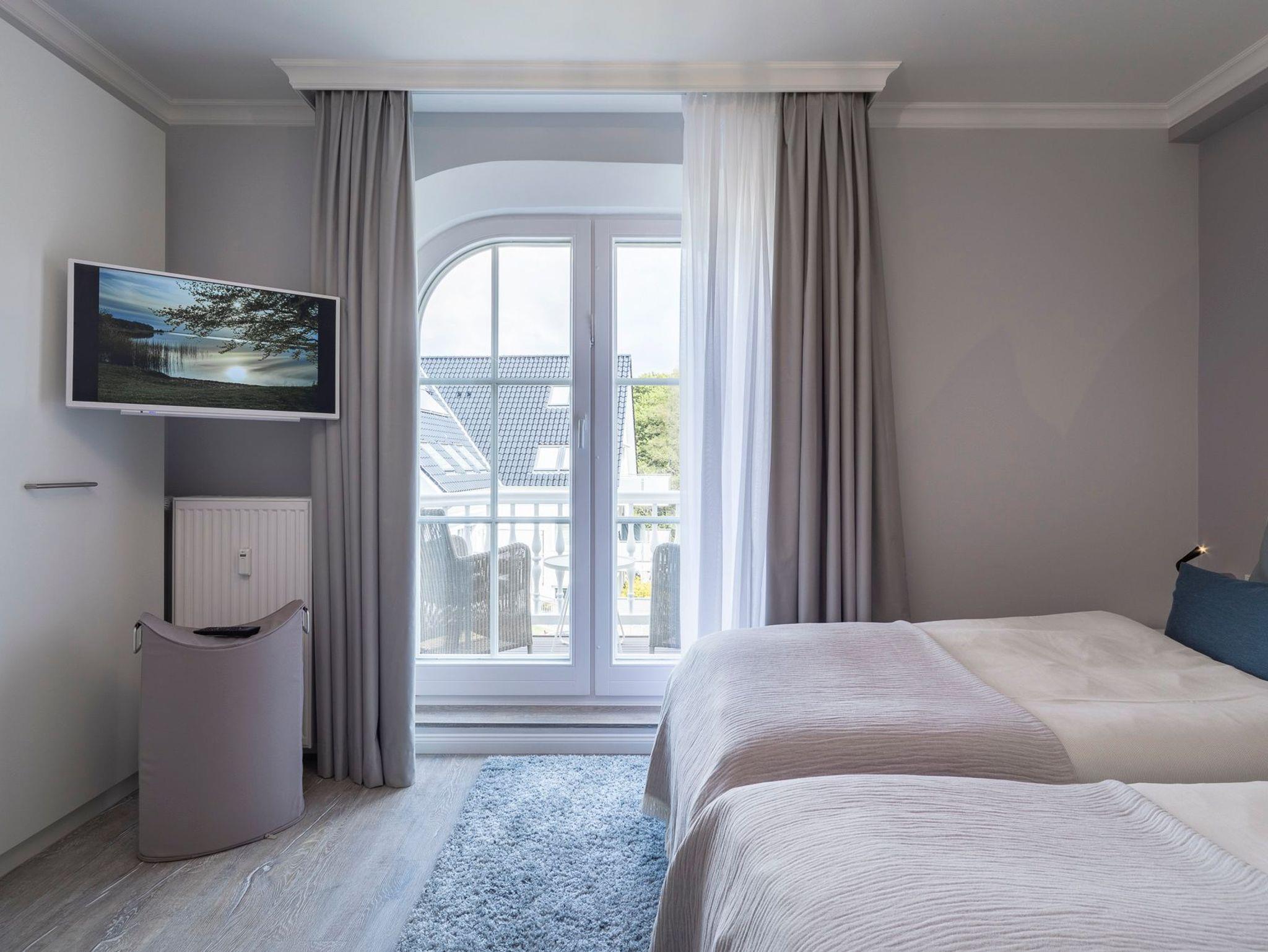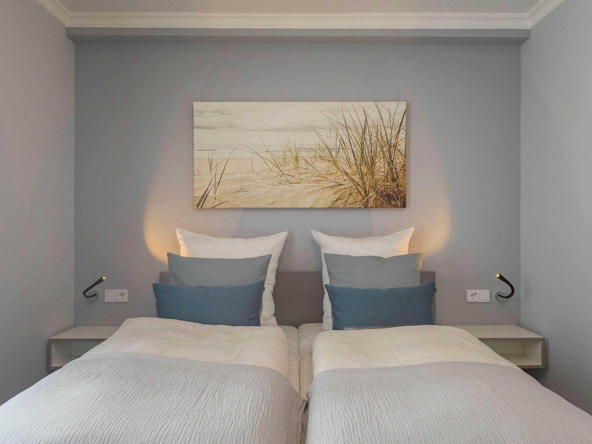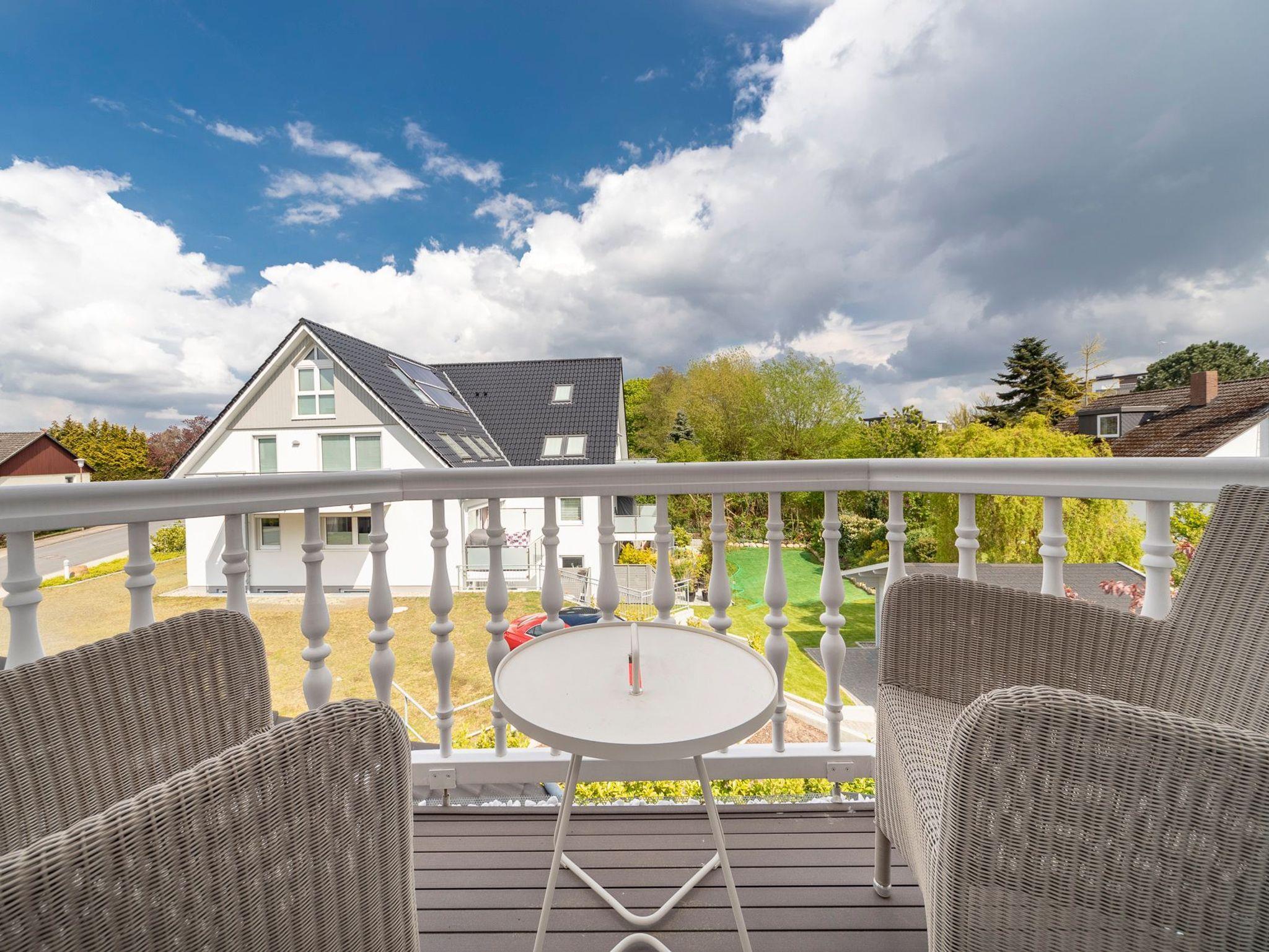 Eine 65 m² große 2-Zimmer-Ferienwohnung mit zwei Balkonen, Duschbad, PKW-Stellplatz und Fahrradgarage