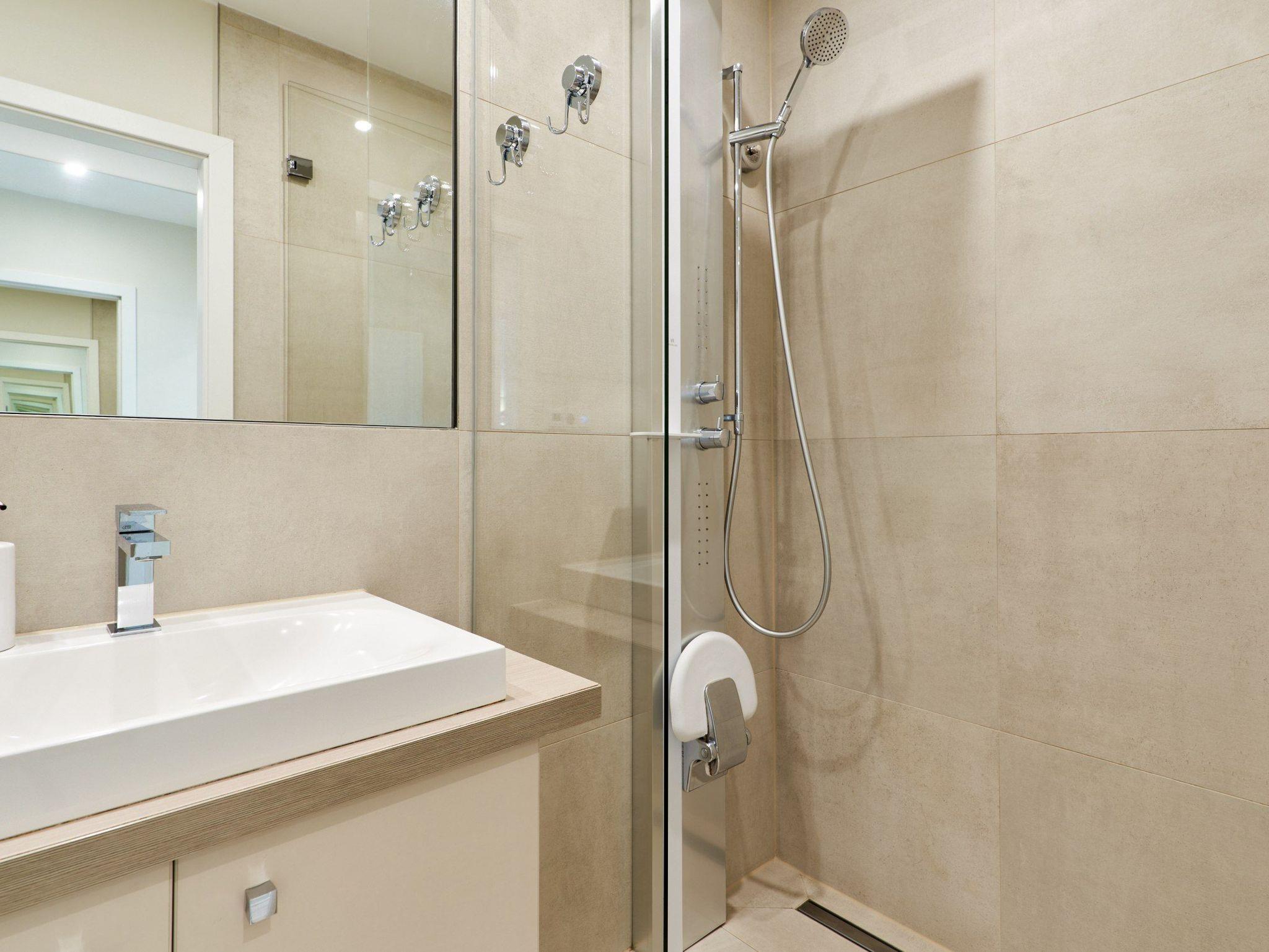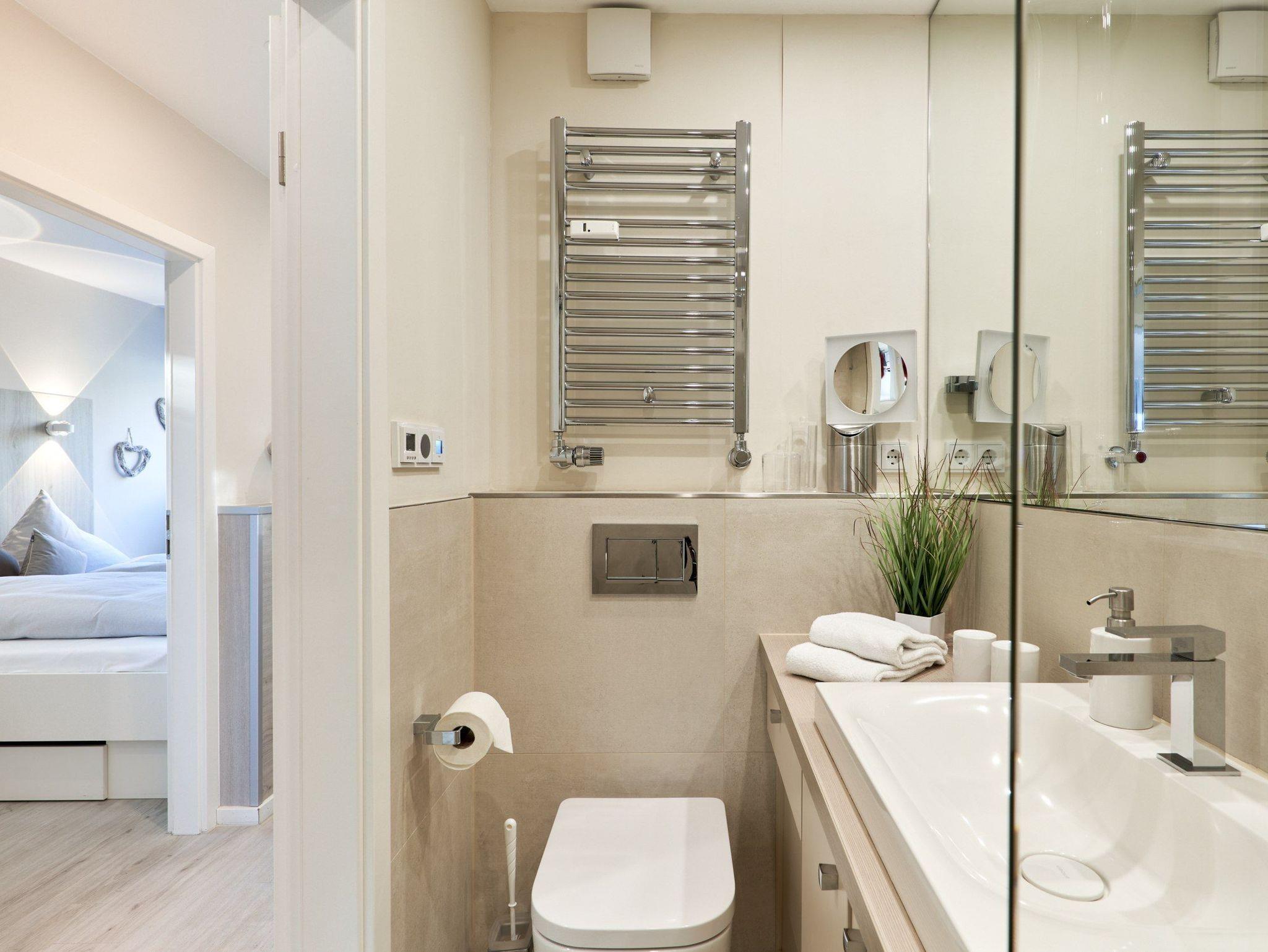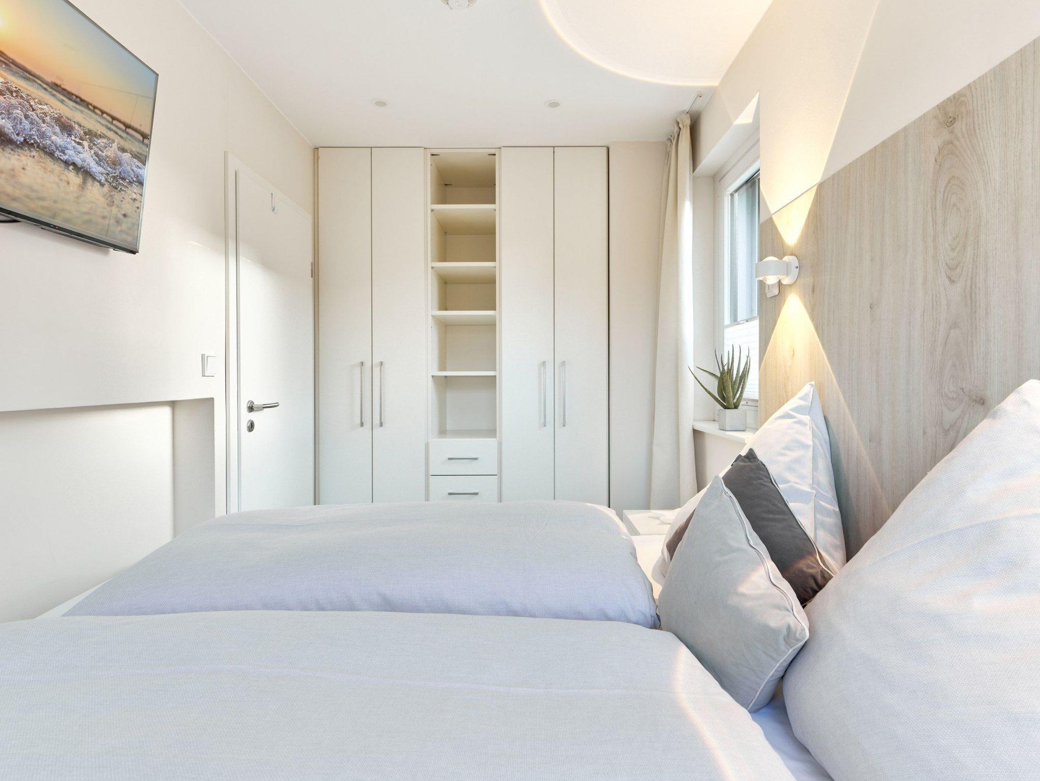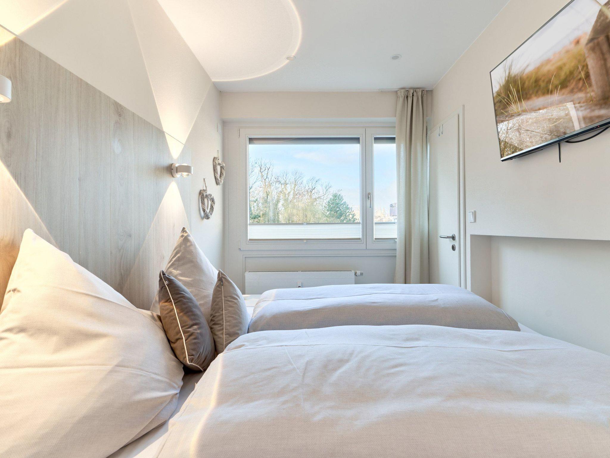 Von dem Eingangsbereich mit einer Garderobe geht es über in den großzügigen Wohnbereich (Schlafsessel 0,90 x 2,00m). Hier finden Sie auch die moderne, offene sowie voll ausgestattete Einbauküche. Durch zwei große Panoramafenster können Sie hier den Blick auf die Ostsee und die gesamte Lübecker Bucht genießen. Die 55 m² große, sonnige Dachterrasse ist mit einem XXL-Strandkorb, Markisen und Terrassenmöbeln bestückt und lädt zum Verweilen ein. Das Schlafzimmer verfügt über ein bequemes Bett in 1,80 x 2,00m mit verstellbaren Lattenrosten und einen Einbauschrank sowie einen SAT-Fernseher. Das helle, sehr ansprechende Badezimmer ist sehr hochwertig ausgestattet. Lassen Sie sich von der Wellness-Dusche und der elektrischen Fußbodenheizung sowie dem Bad-Radio verwöhnen. Selbstverständlich stehen Ihnen ein Föhn und ein beleuchteter Kosmetikspiegel zur Verfügung. In der Saison (15.05. ? 15.09.) steht für Sie am Strand kostenfrei ein Strandkorb bereit.