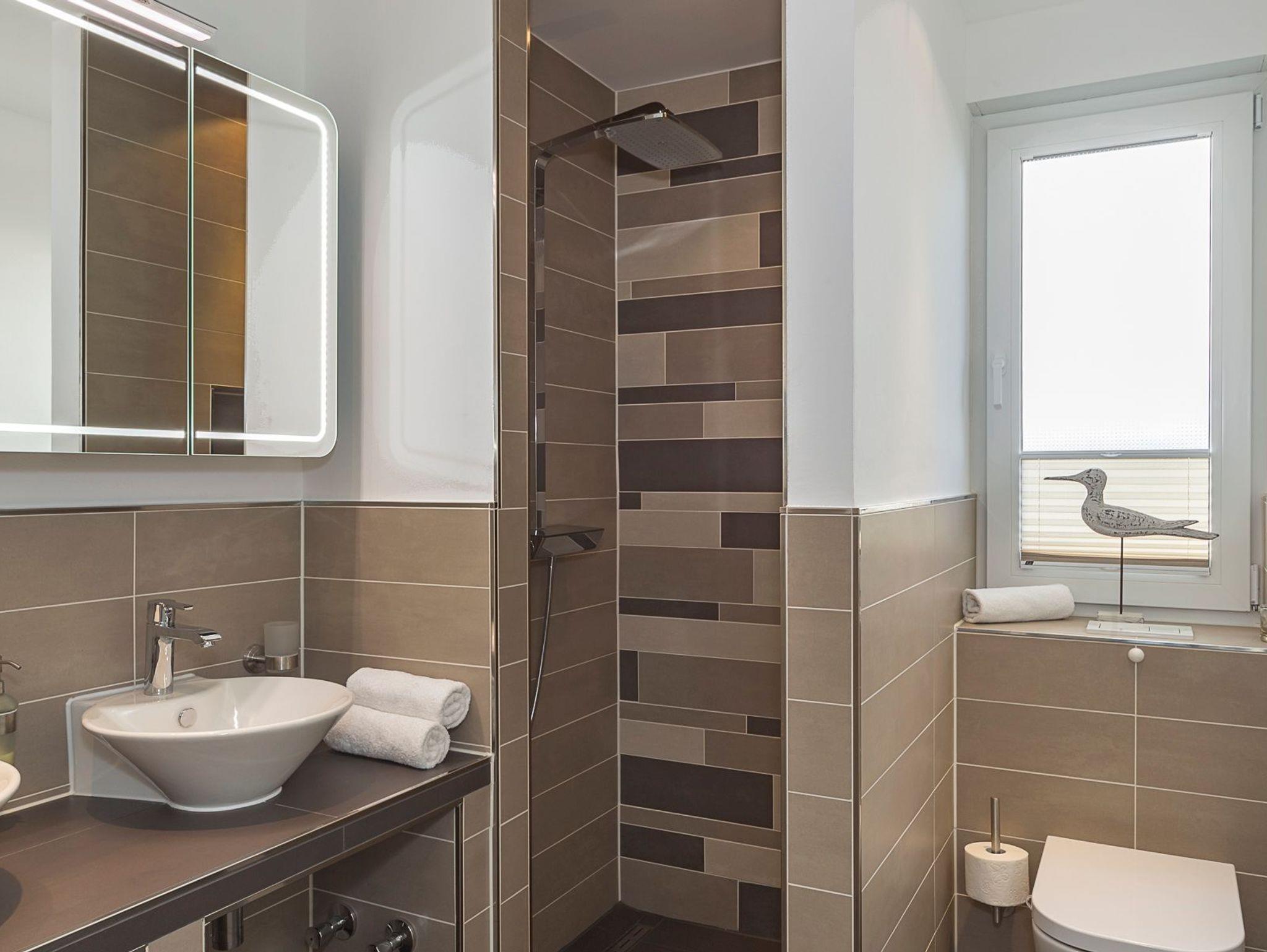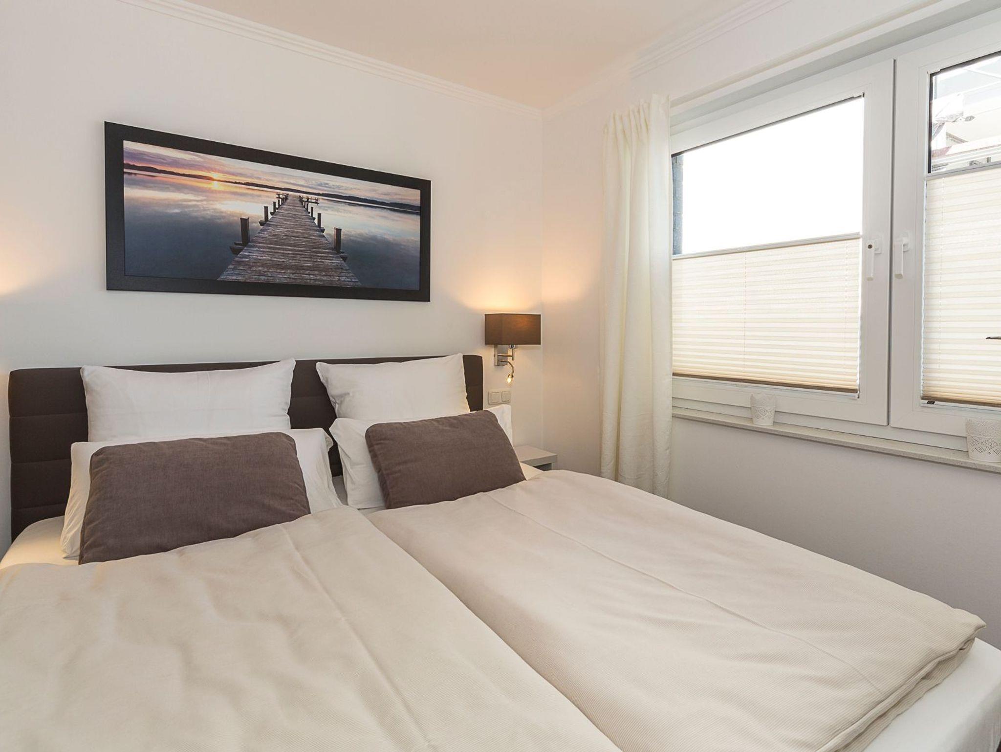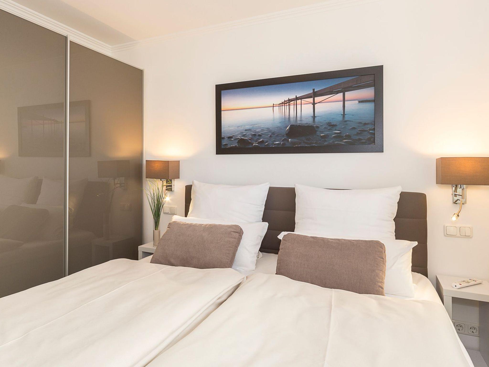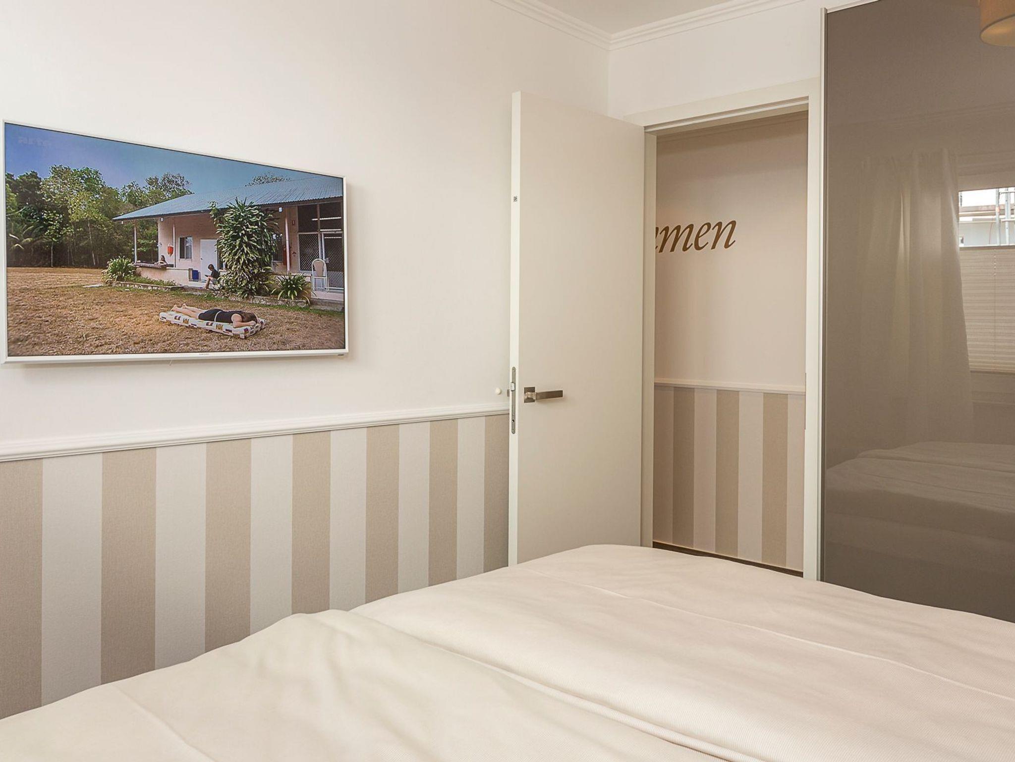 Das Badezimmer bietet Ihnen u. a. einen Doppelwaschtisch, eine bodentiefe Dusche, einen extra Handtuchheizkörper sowie einen großen Design-Spiegelschrank. Weitere Details, wie einen Kosmetikspiegel, einen Föhn, ein Fenster-Mückenschutzgitter und ein integriertes Badradio, runden dieses schöne Bad ab. Die 2 Schlafräume sind ebenfalls sehr hochwertig ausgestattet. Hierbei sind vor allem die exklusiven Schlaraffia-Boxspringbetten (1,80x 2,00m) mit den sehr komfortablen Geltex-Inside-Matratzen für einen erholsamen Schlaf zu erwähnen.