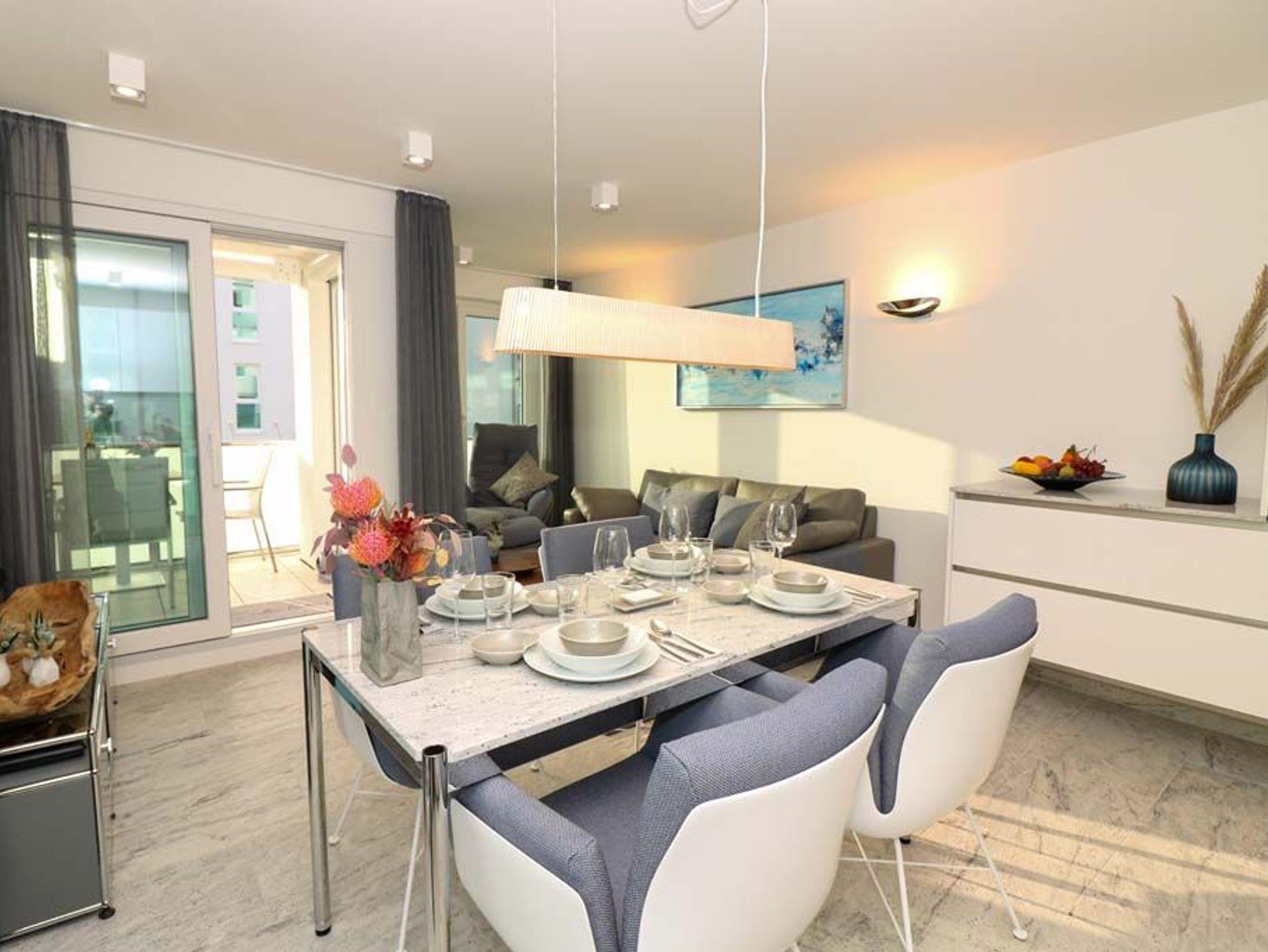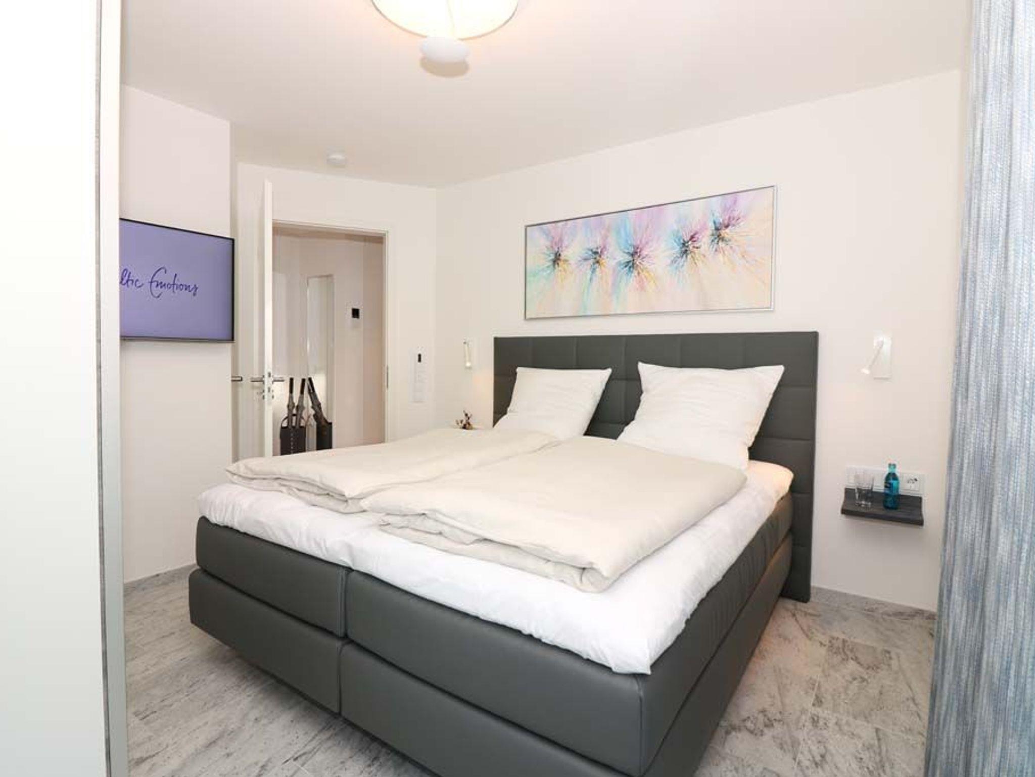 Helle und freundliche 3-Zimmer-Ferienwohnung, ca. 54 m² im 1. OG. Fahrstuhl, überdachter Süd-Balkon, exklusive Designer-Möbel, Wellnessbad mit Regendusche, inkl. Saison-Strandkorb (15.05. ? 15.09.) und kostenlosem Highspeed-WLAN, großzügiger Tiefgaragen-Stellplatz (TG-Einfahrt Höhe 2,00 m), mit einer E-Ladestation für Ihr Elektroauto, gegen Gebühr
