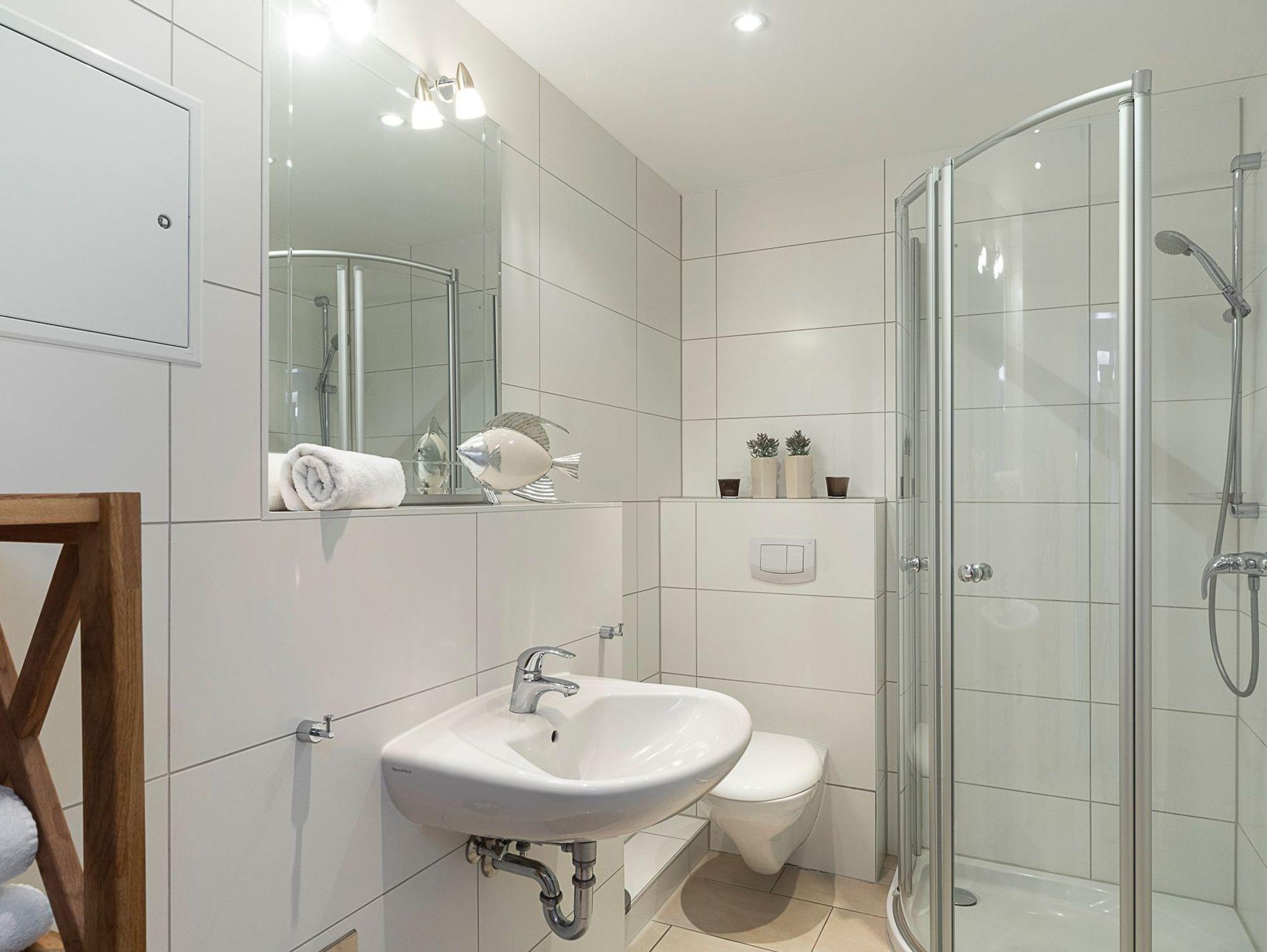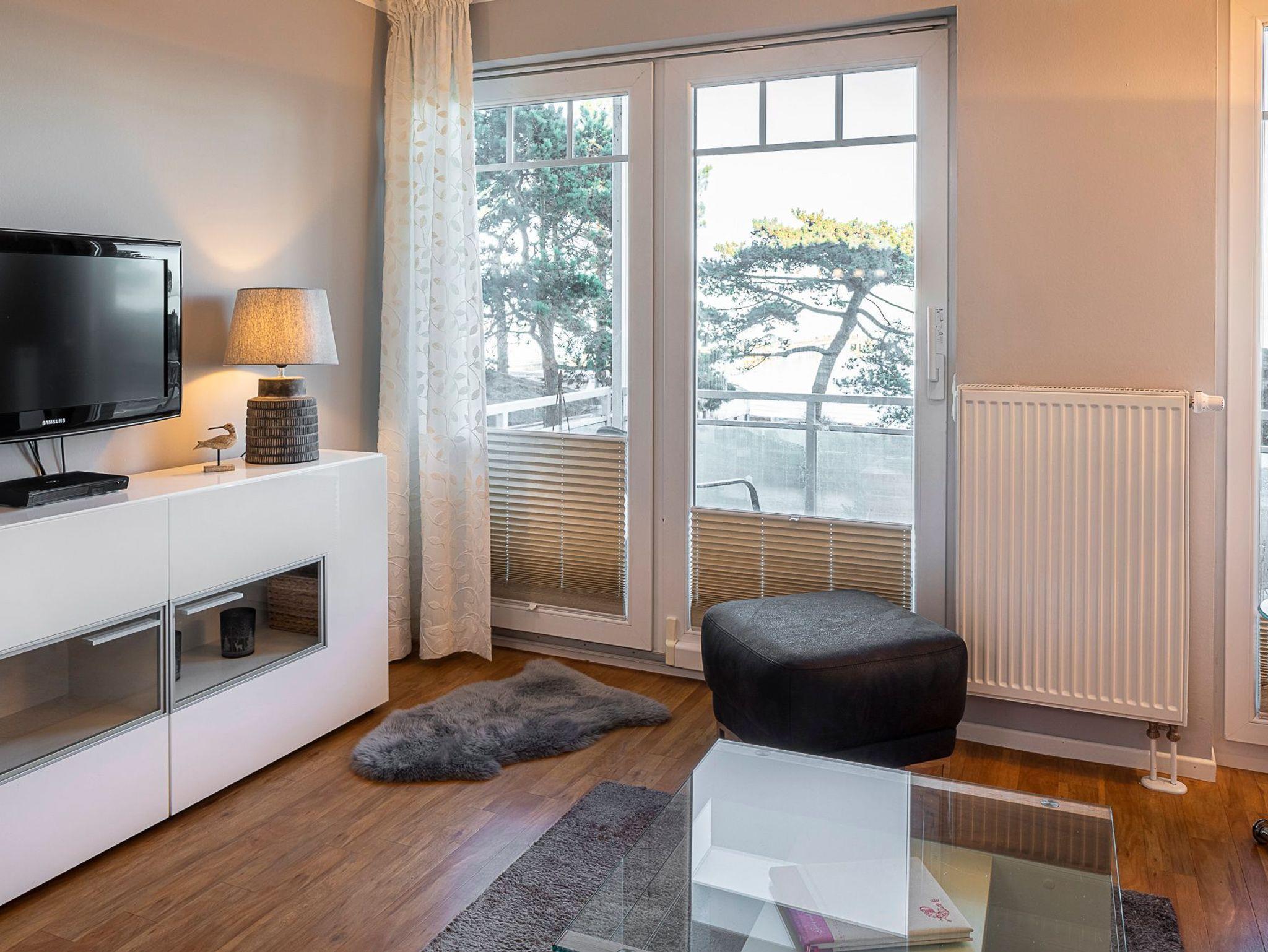 Der helle Wohn-Essbereich ist mit einer gemütlichen Couch eingerichtet. Neben dem Flachbildfernseher, dem DVD-Player und einem CD-Player steht Ihnen selbstverständlich kostenloses WLAN zur Verfügung. Die Küche ist komplett ausgestattet. Der angrenzende Balkon ist mit Tisch und Stühlen ausgestattet und lädt Sie in der Morgensonne zu Ihrem Frühstück mit Ostseeblick ein. Im Schlafzimmer stehen ein bequemes Doppelbett (1,80 x 2,00m) und ein geräumiger Kleiderschrank. Auch hier ist ein Flachbildfernseher für Sie angebracht. Das Badezimmer verfügt über eine Dusche und einen Handtuchheizkörper.