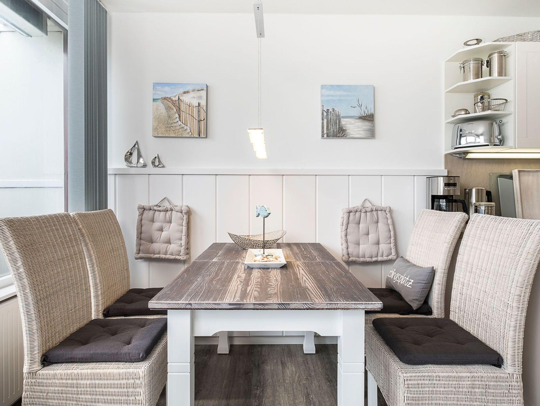 Meerblick, Kaffeemaschine mit Milchaufschäumer, WMF-WOK, Fußbodenheizung, Handtuchheizkörper, Kinderbett, Kinderhochstuhl und Babybadewanne, Fluxtec-Bollerwagen, WLAN, Kfz-Außenstellplatz, Strandkorb gegenüber am Strand (saisonbedingt 15.05. 15.09.).