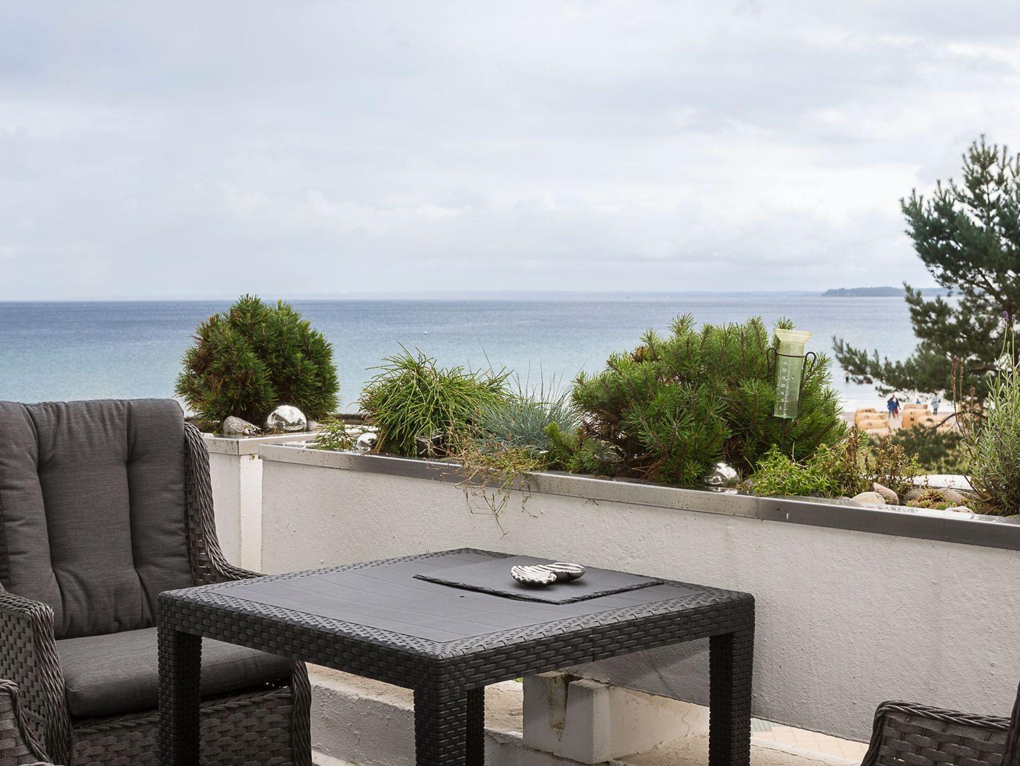 2,5-Zimmer-Ferienwohnung, ca. 56 m², Südbalkon mit herrlichem Ostseeblick, Duschbad, Kfz-Außenstellplatz, für bis zu 3 Personen. Die Wohnung liegt im 1. OG nach Süden. Bis zur Wohnung sind einige kleine Treppenstufen zu gehen.