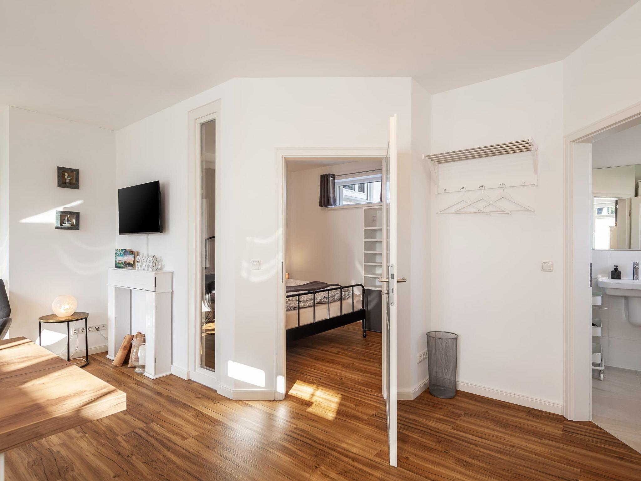 Unsere Wohnung ist darauf ausgerichtet, Ihnen erholsamen Schlaf zu ermöglichen. Das Schlafzimmer ist mit hochwertigen, schalldichten Fenstern ausgestattet und bietet ausreichend Verdunklungsmöglichkeiten. Die natürliche Bauweise unterstützt zudem ein angenehmes Raumklima, ähnlich einer Klimaanlage. Ein zusätzliches Fenster Element zum Wohnbereich verleiht dem Schlafzimmer einen besonderen Charme und lässt sich je nach Wunsch öffnen.