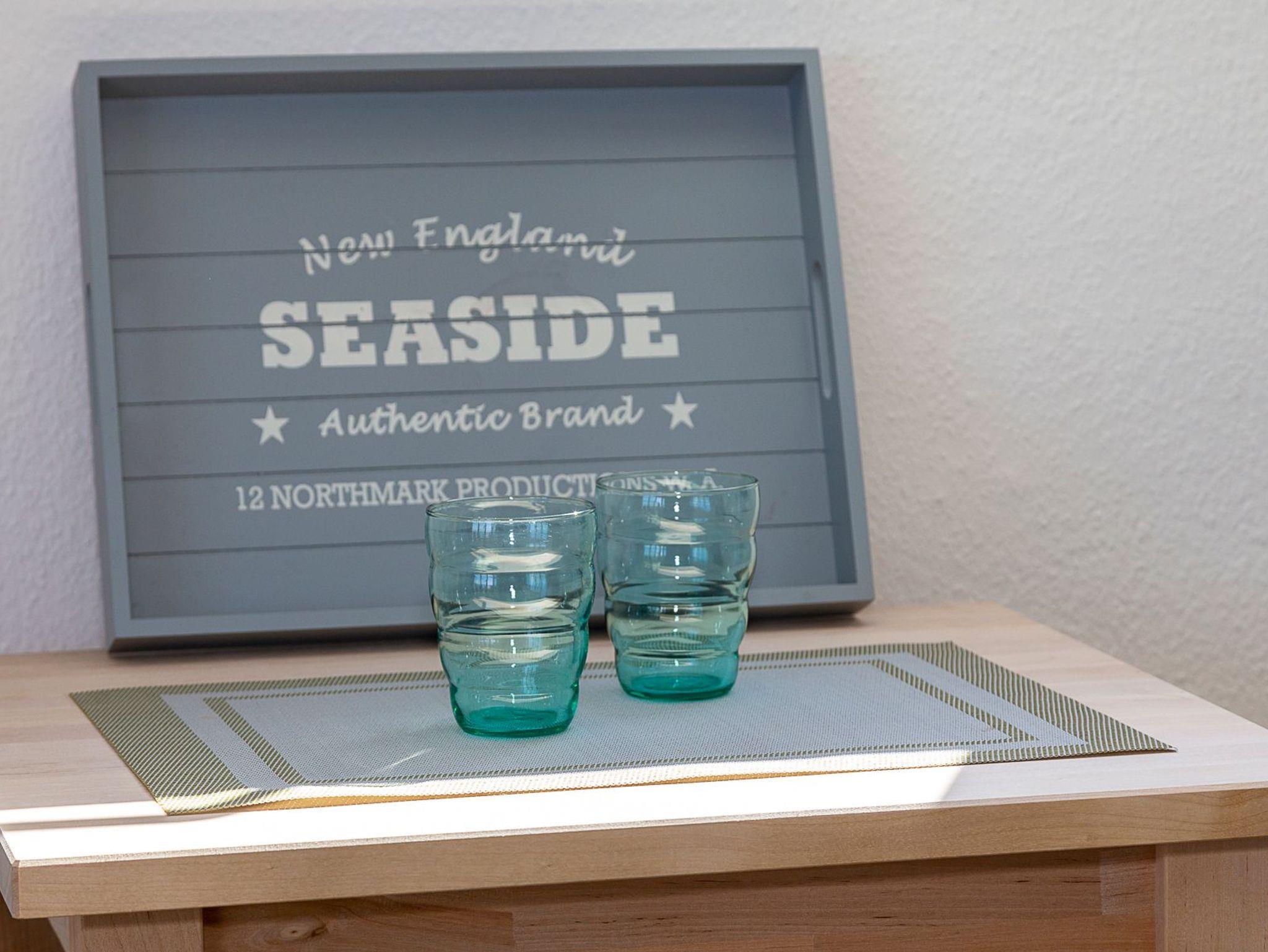 Heller, großer Wohn-Essbereich mit weitem Blick auf die Ostsee. Tiefer sowie breiter Balkon mit Tisch und Stühlen, Ostseeblick pur. Schöner Wohnbereich mit einem Sofa, 2 Sesseln sowie Beistelltischen. Flach-TV, DVD-Player, Bose-Radio, CD-Player, Bücher, Spiele und DVD´s. Der Essbereich bietet Ihnen Platz für 4 Personen. Hier können Sie ausgiebig frühstücken und den Ostseeblick genießen. Die moderne Küche ist komplett ausgestattet und lässt keine Wünsche offen. Neben der Filterkaffeemaschine steht Ihnen hier zusätzlich eine Nespresso-Maschine zur Verfügung. Kleiner Abstellraum. Selbstverständlich steht Ihnen auch in dieser Wohnung kostenloses WLAN zur Verfügung.