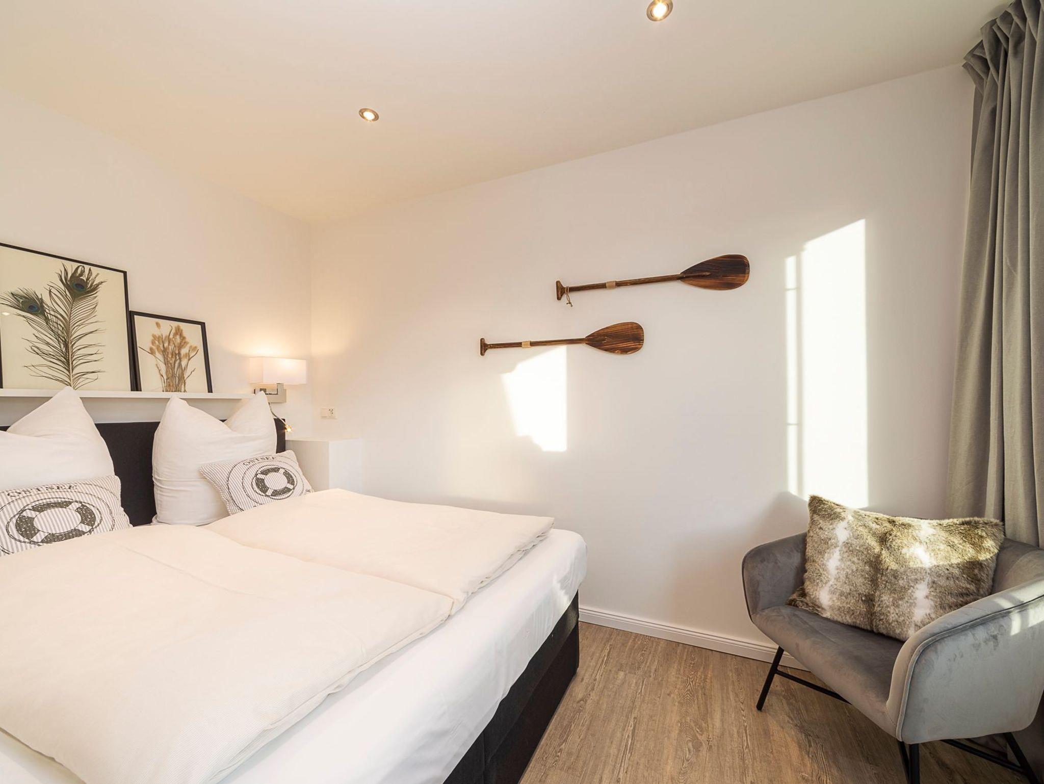 Meerblick, Sauna, Handtuchheizkörper, Kinderreisebett inkl. Matratze, Kinderhochstuhl, WLAN, Kfz-Außenstellplatz. Elektrische Shutter als Wärmeschutz und Verdunkelungsmöglichkeit. Strandkorb gegenüber am Strand (saisonbedingt 15.05. ? 15.09.) und auf dem Balkon. Das Haus verfügt über eine Waschmaschine im Waschkeller und einen Fahrradkeller.