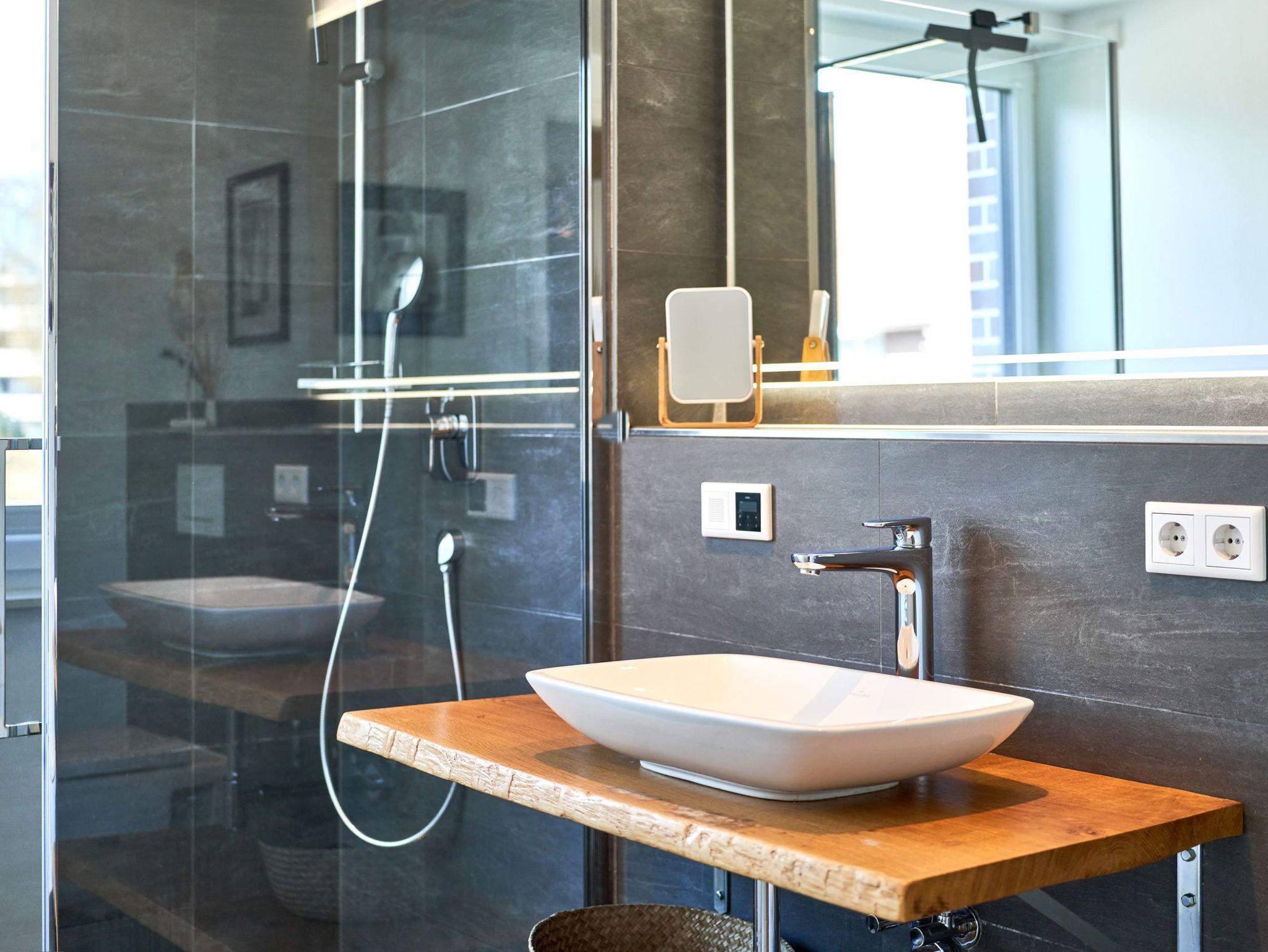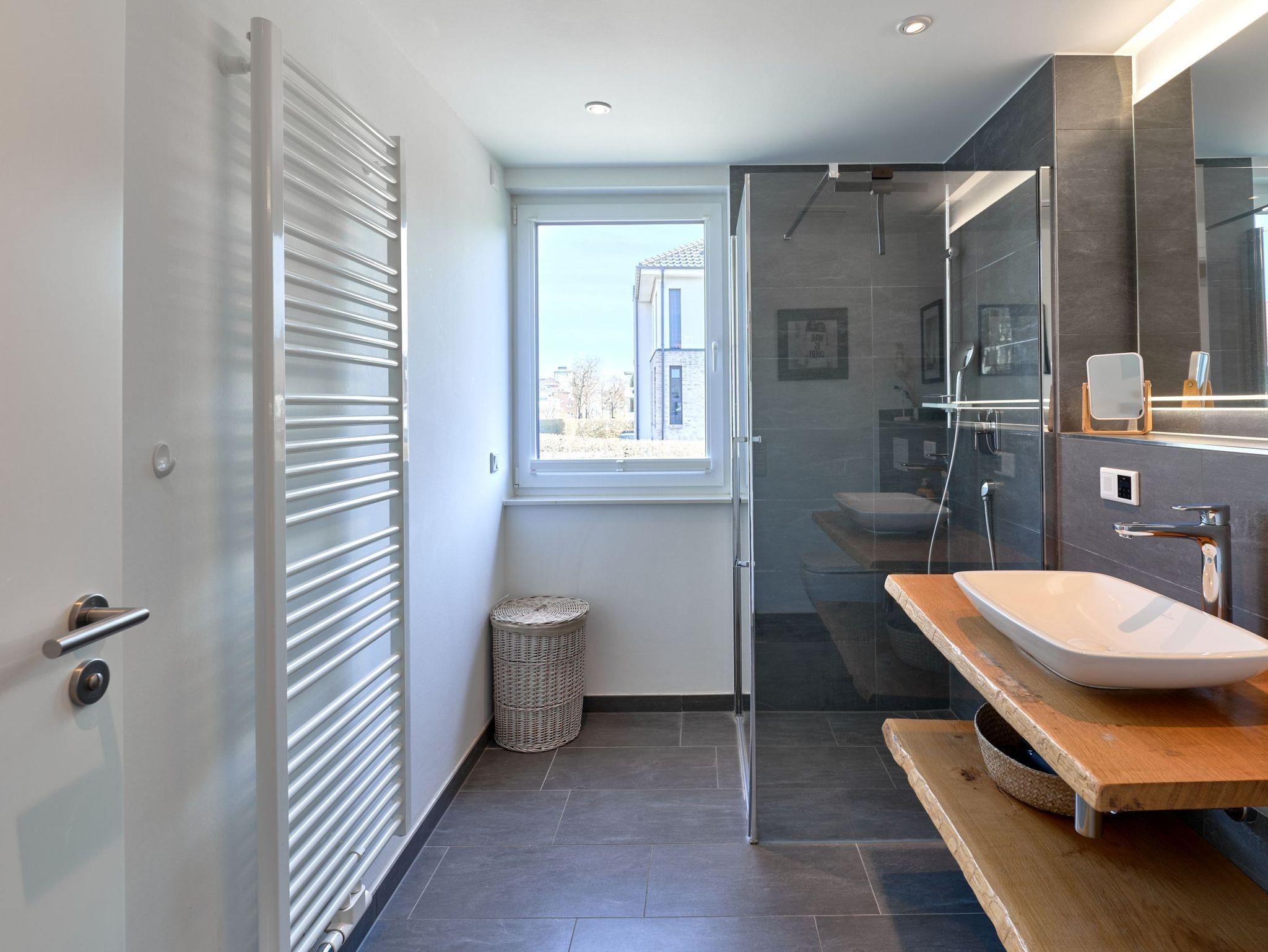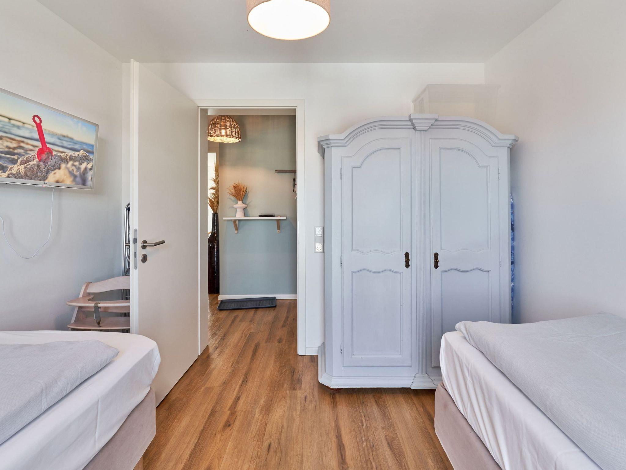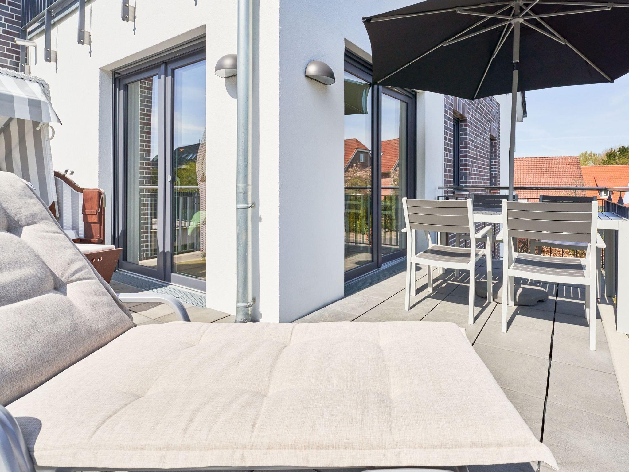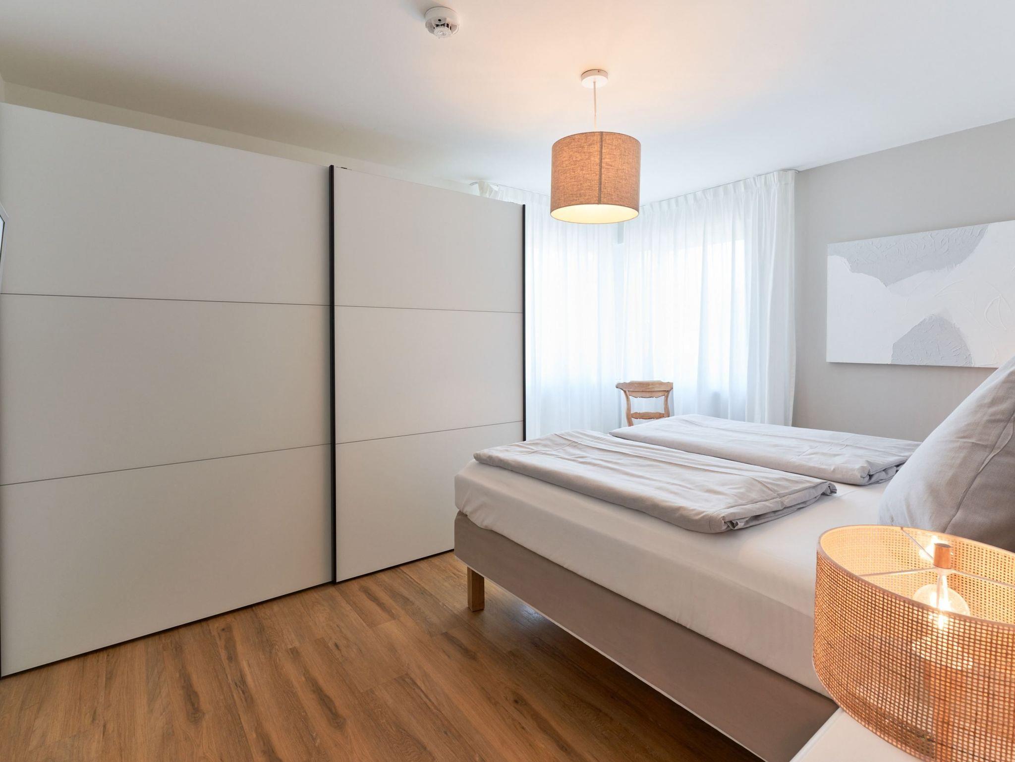 Genießen Sie Ihren Urlaub in dieser lichtdurchfluteten Ferienwohnung, die Ihnen mit ihren zwei geräumigen Schlafzimmern und dem großen Wohnzimmer mit integrierter Küche, großem Esstisch und gemütlicher Fernsehecke mit einer Bose-Musik-Station viel Raum zum Entspannen bietet. WLAN steht Ihnen kostenlos zur Verfügung. Der nach Südwesten ausgerichtete Balkon ist mit einer Liege sowie Tisch und Stühlen sowie einem Sonnenschutz ausgestattet. Im ersten Schlafzimmer steht ein bequemes Doppelbett, im 2. Schlafzimmer warten 2 Einzelbetten auf Sie. Beide Schlafzimmer sind mit Flachbildfernsehern ausgestattet. In allen Räumen sind elektrische Rollläden angebracht. Das helle Tageslichtbad verfügt über eine bodengleiche Dusche. Neben der Fußbodenheizung steht Ihnen hier ein Handtuchheizkörper zur Verfügung. Eine zur Wohnung gehörende Waschmaschine befindet sich im Keller.