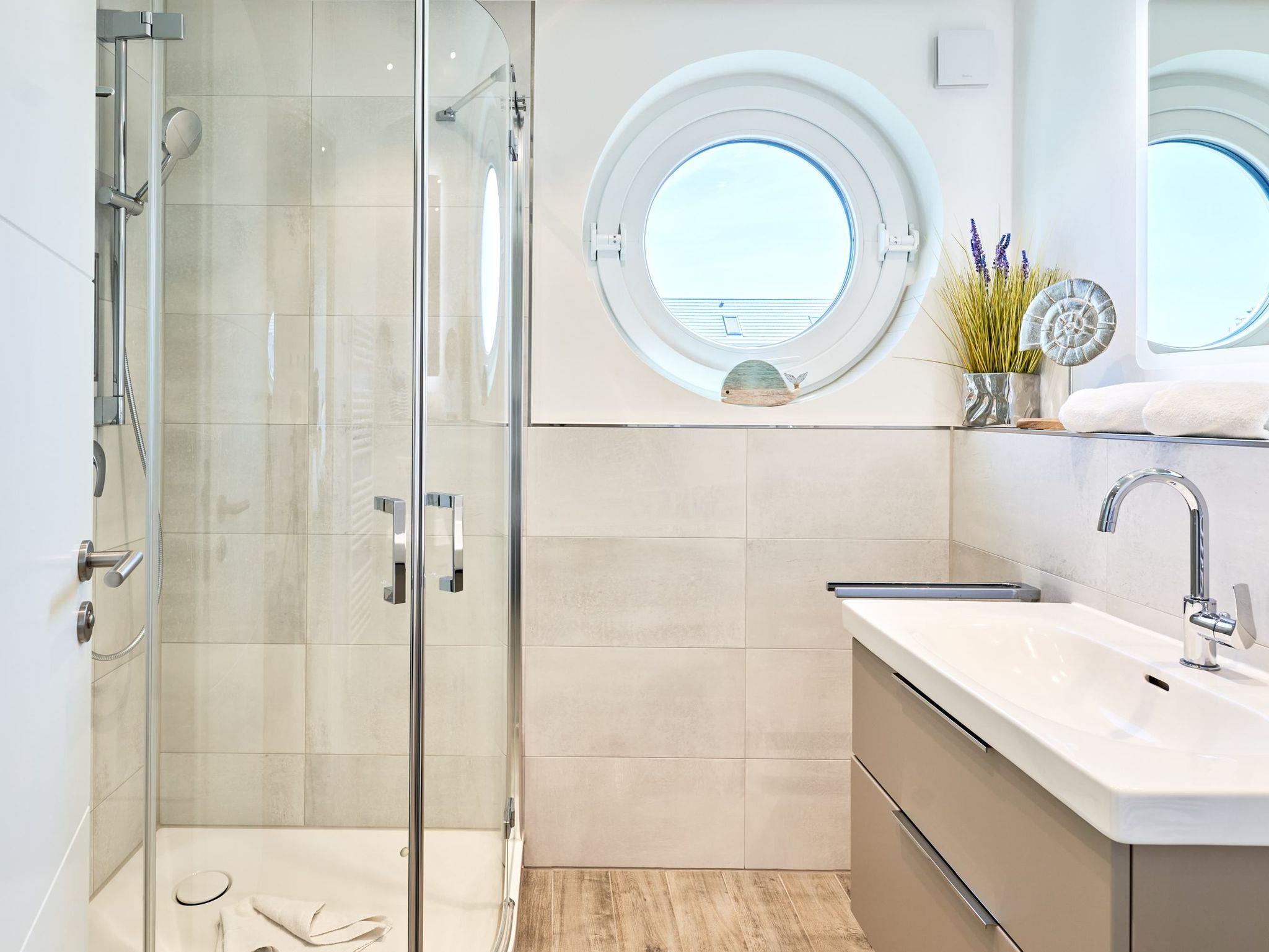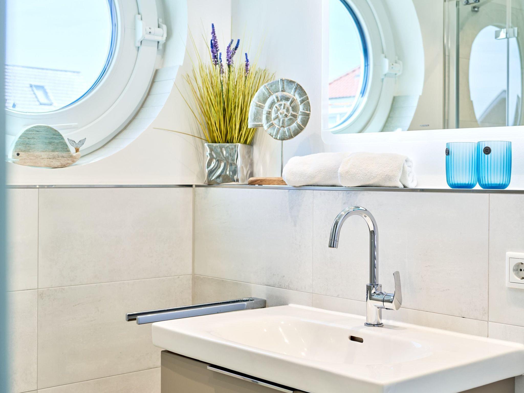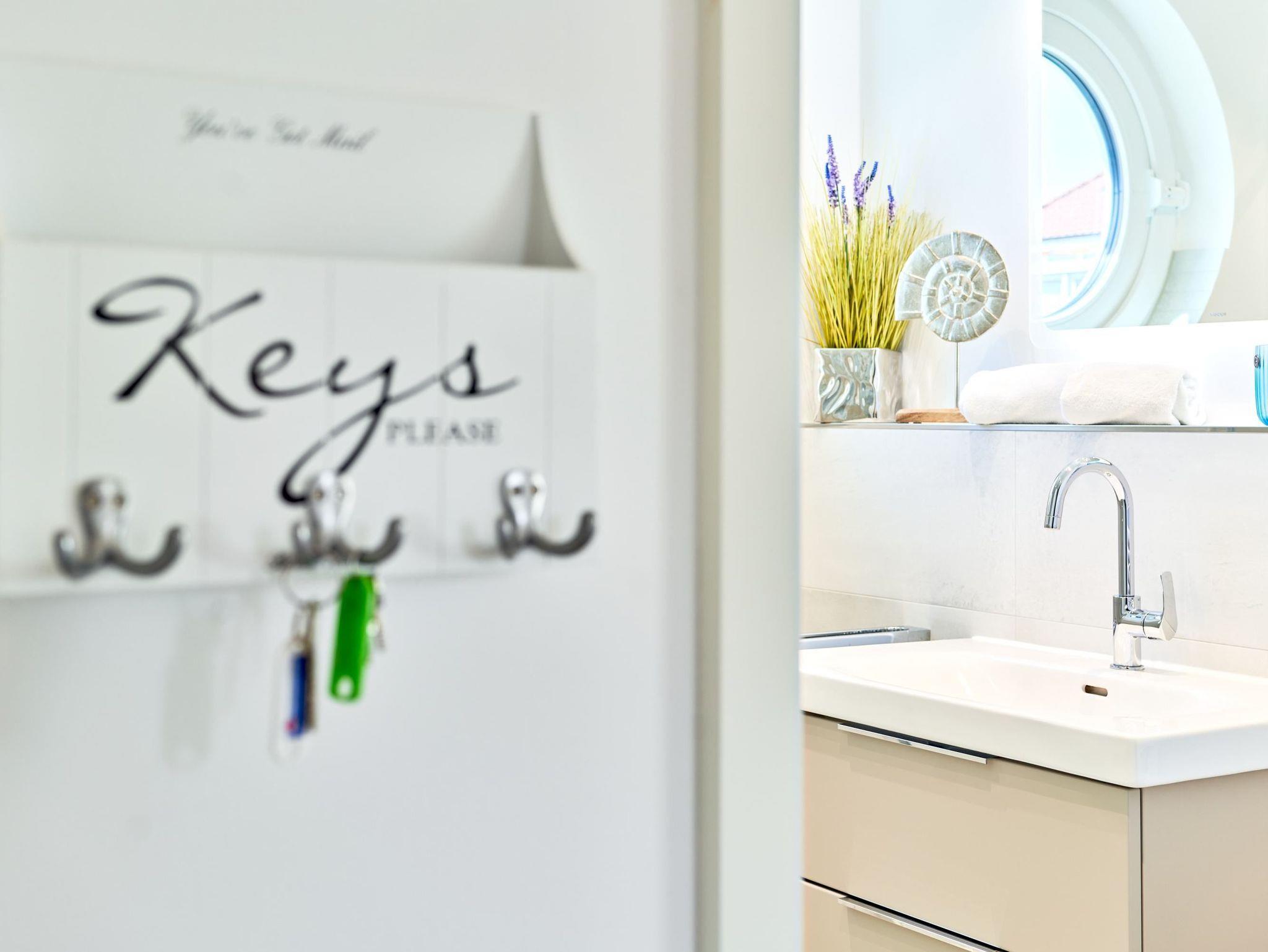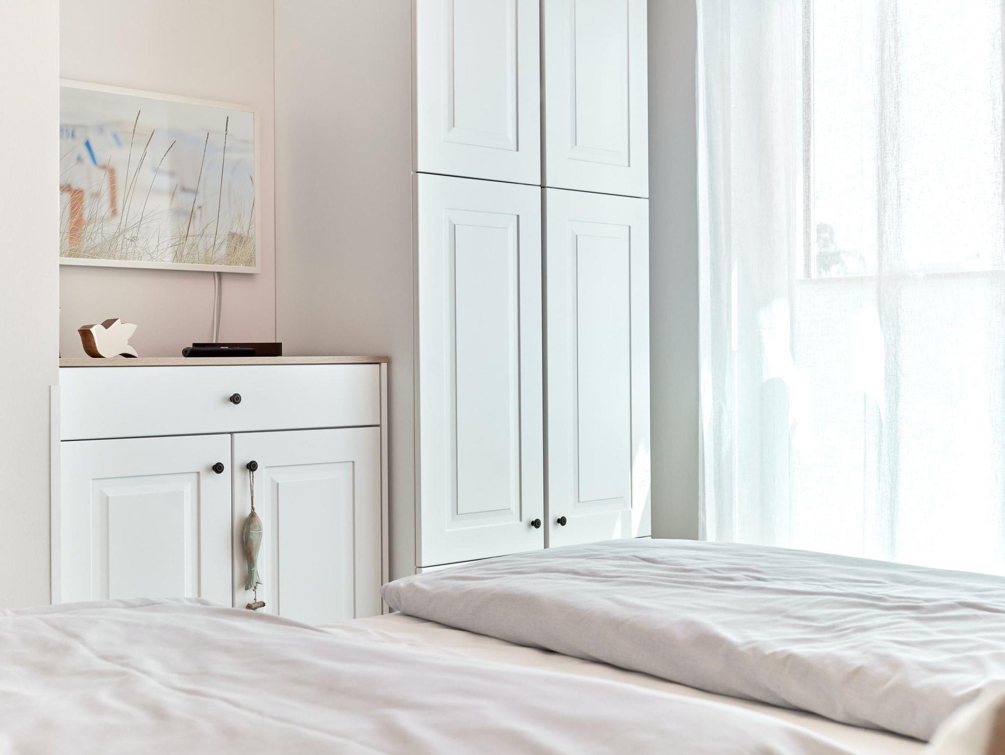 Die Ferienwohnung strahlt eine helle, behagliche Gemütlichkeit aus. Die offene Küche im Wohn-Essbereich ist komplett ausgestattet und lässt keine Wünsche offen; Küchenzeile mit Backofen, Ceran-Kochfeld, Elektroherd, Dunstabzug, Geschirr, Geschirrspüler, Kühlschrank incl. Gefrierfach, Mikrowelle, Filterkaffeemaschine, Pad-Kaffeemaschine, Toaster, Wasserkocher. Im Wohnbereich finden Sie alles, was zu einem Wohlfühlbereich gehört; ein Ecksofa, ausziehbar als Schlafmöglichkeit, Wohnzimmertisch (Coffee Table), TV SAT/Kabel, Blu-ray/CD-Player, Radio, TV-Board, Geschirrschrank, Esstisch mit 3 Stühlen, bodentiefe Fenster, elektrische Fensterrollläden. Das Schlafzimmer ist mit einem Boxspringbett (1,80 x 2,00m) ausgestattet und verfügt über einen Kleiderschrank, 2 Nachttische, TV SAT/KABEL, einen Spiegel sowie bodentiefe Fenster und Außenrollläden. Ein Tageslicht-Duschbad mit Dusche und Handtuchheizkörper, Radio, Fön, Kosmetikspiegel.