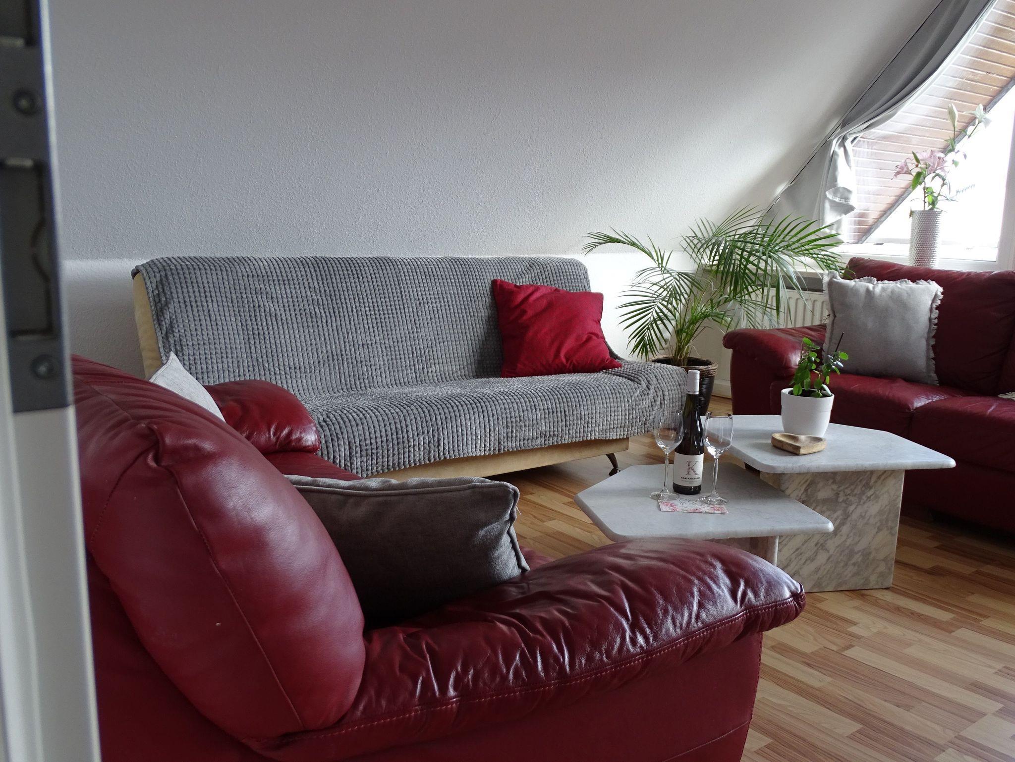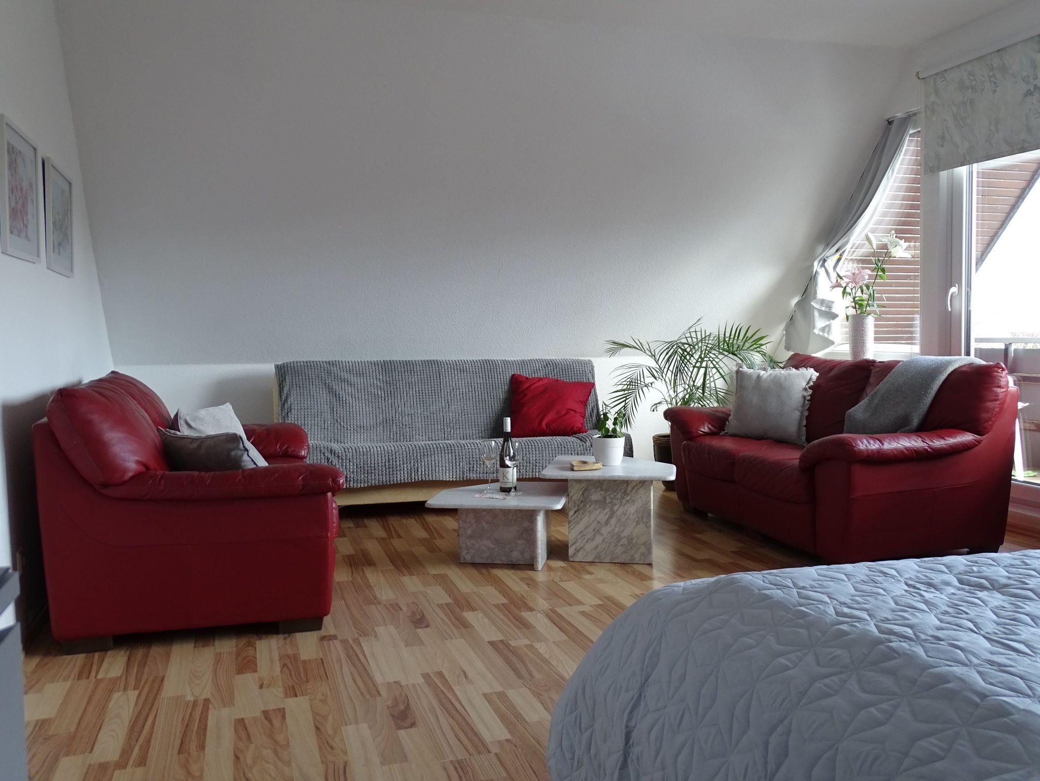 Die 80m² große Nichtraucher Ferienwohnung verfügt über zwei separate Schlafräume. Der große Wohn-/ Schlafraum, mit Zugang auf den Balkon, hat ein Doppelbett (180 x 200m), ein ausziehbares Sofa und eine gemütliche Sitzecke.