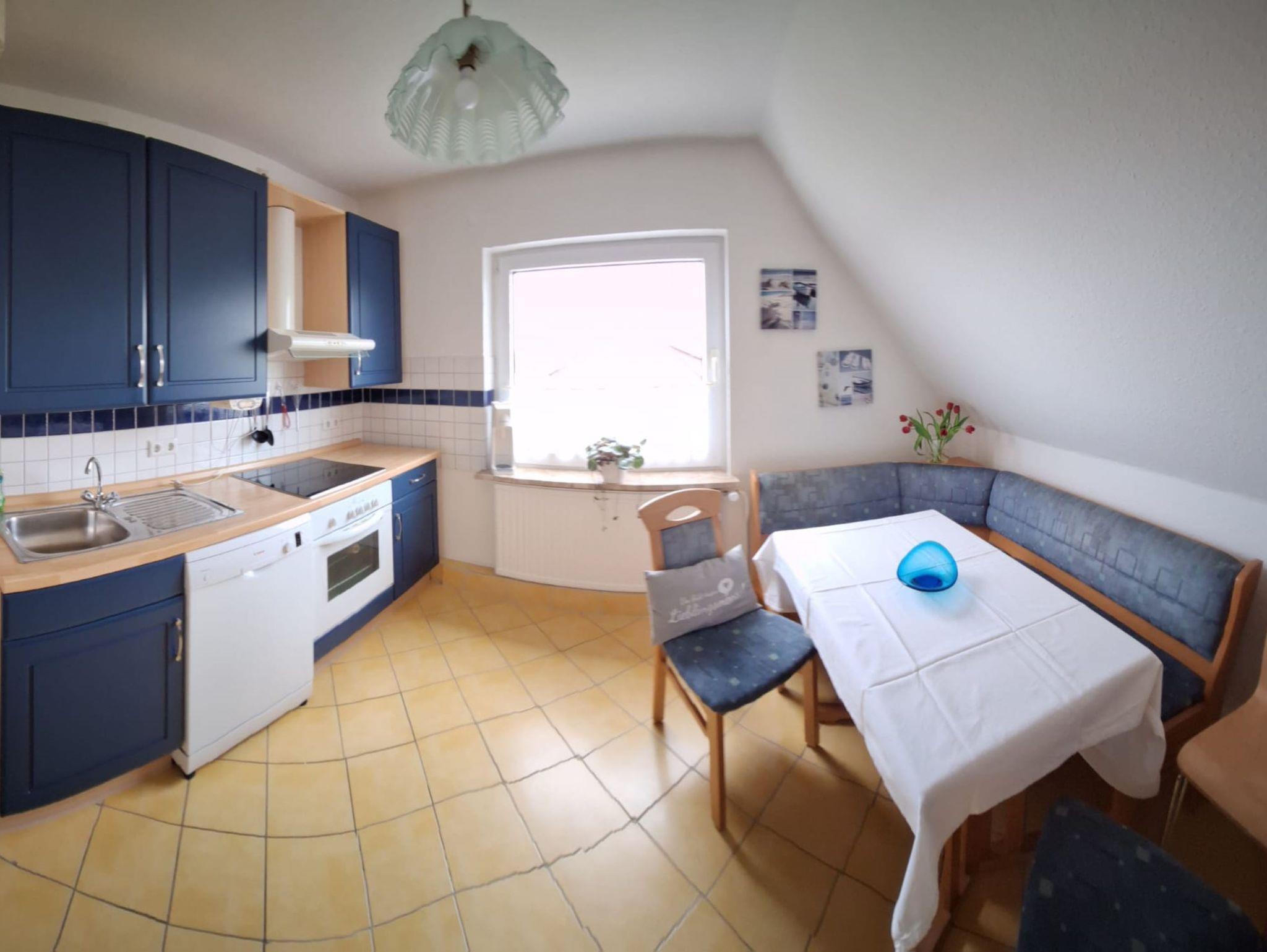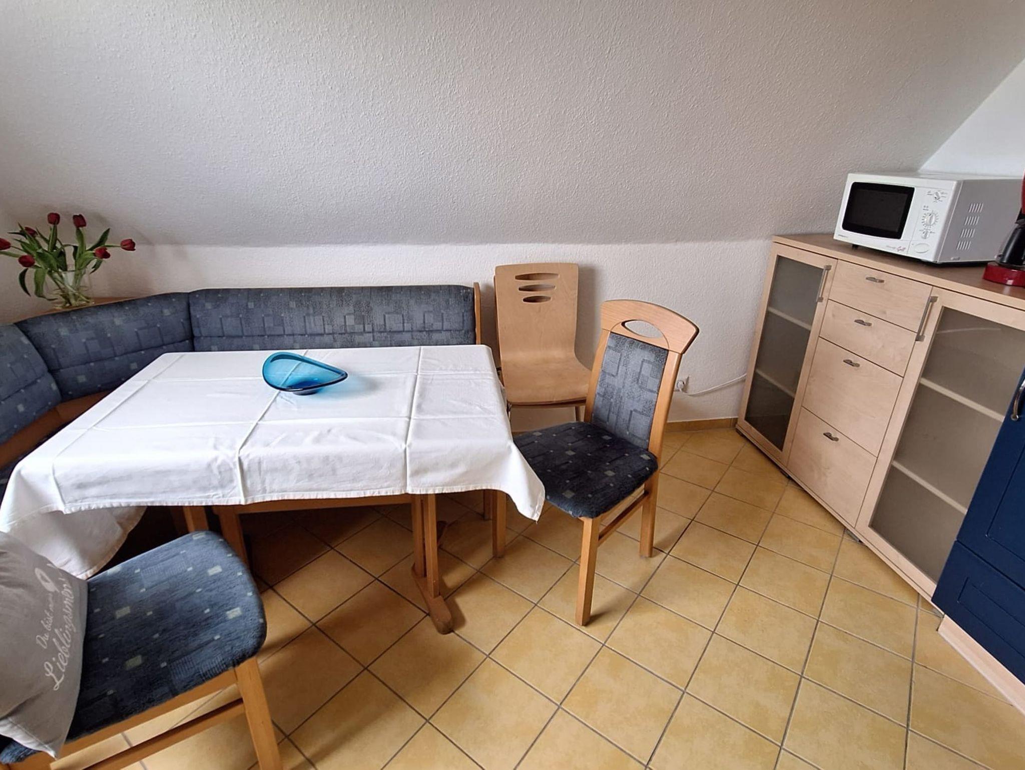Die gemütlich, geräumige Wohnküche ist gut ausgestattet und bietet Platz für gesellige Spielabende. Eine Spielesammlung ist vorhanden.