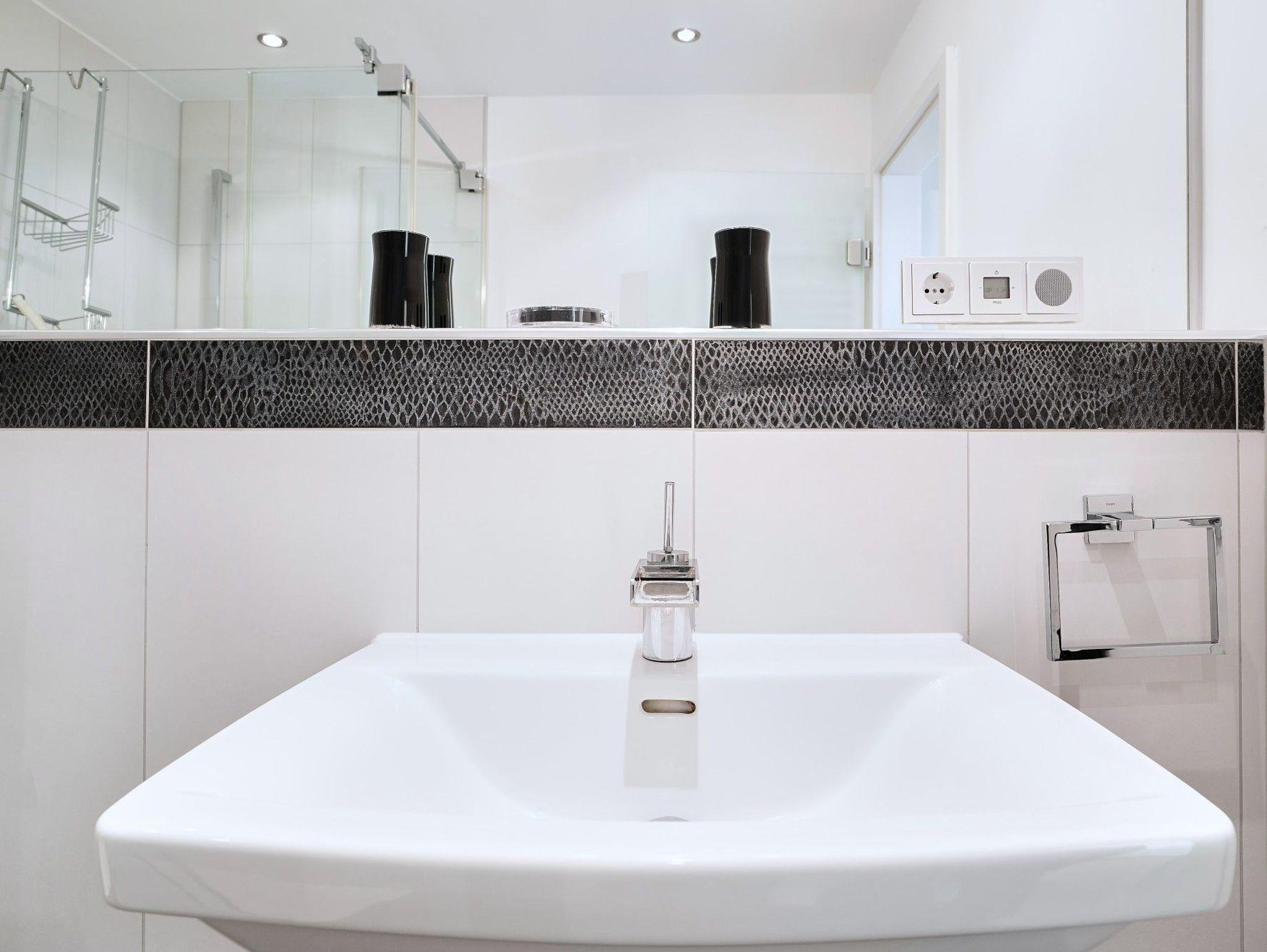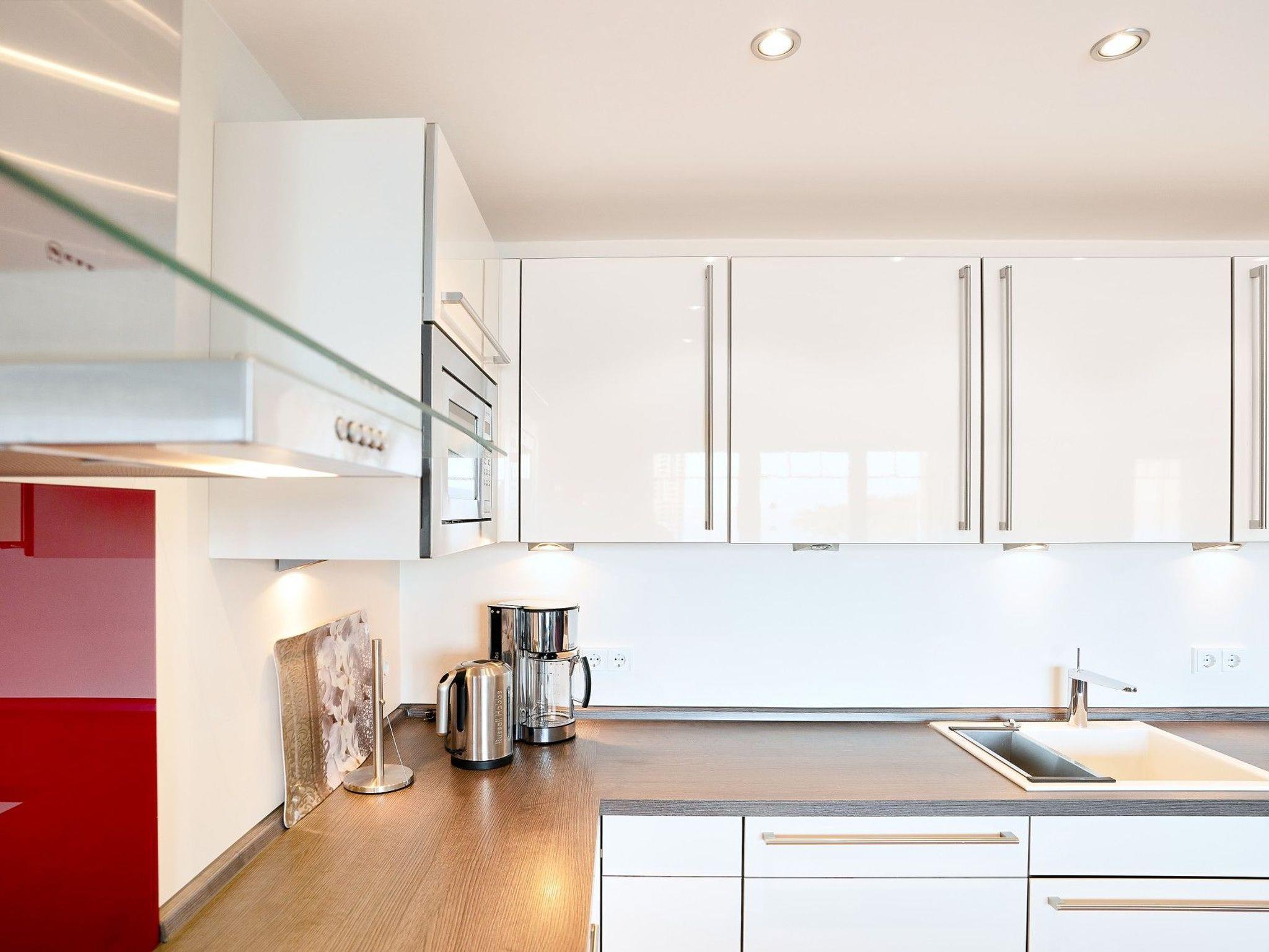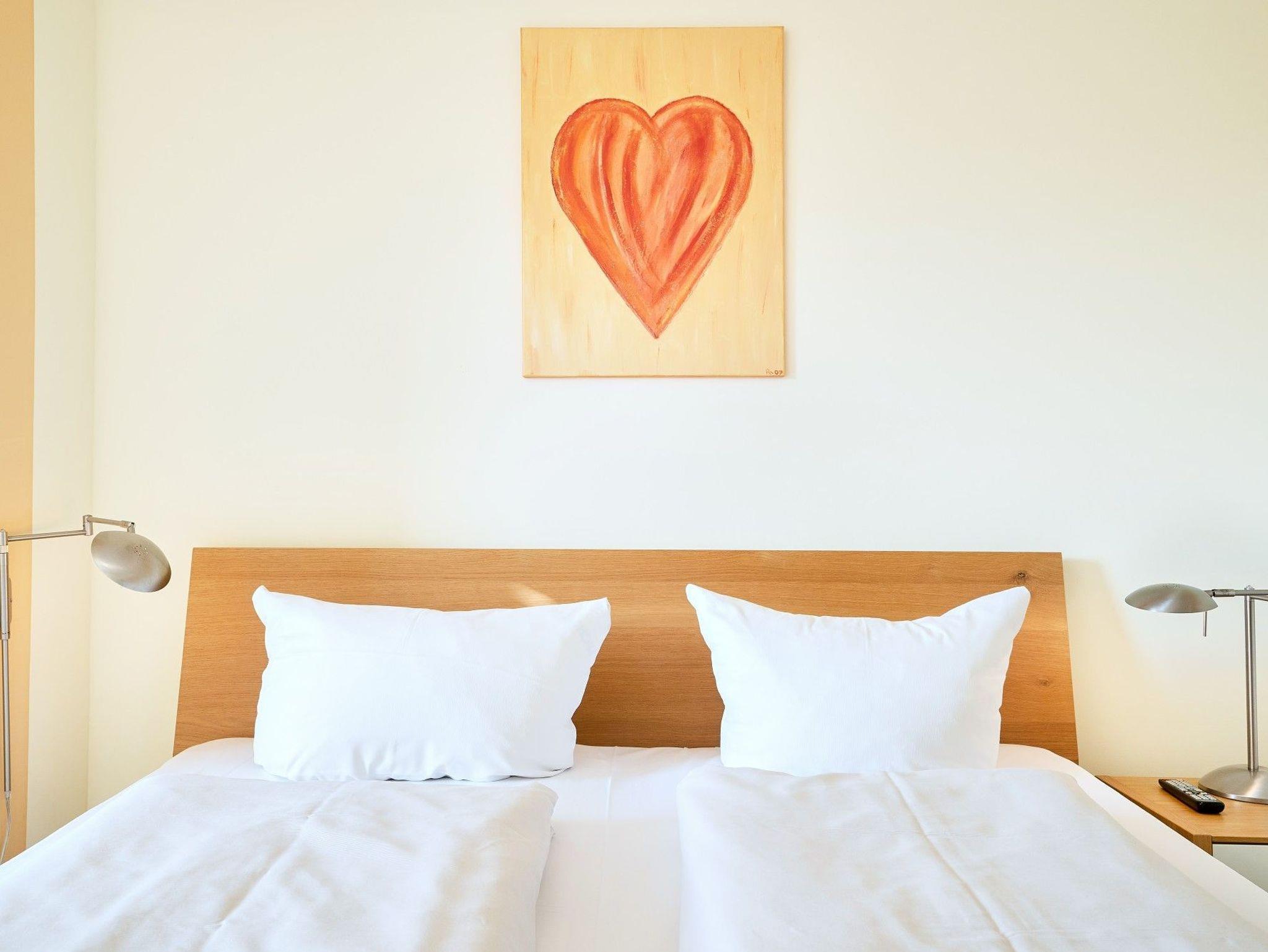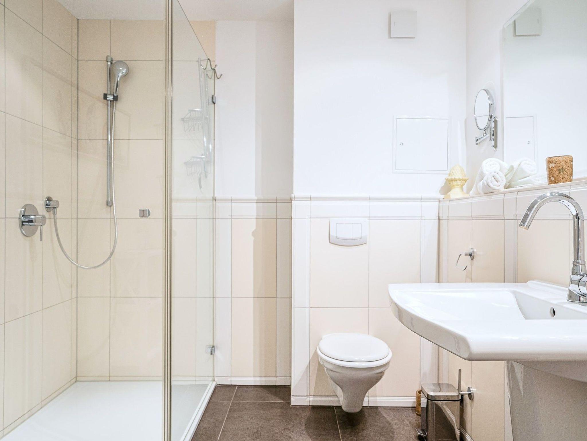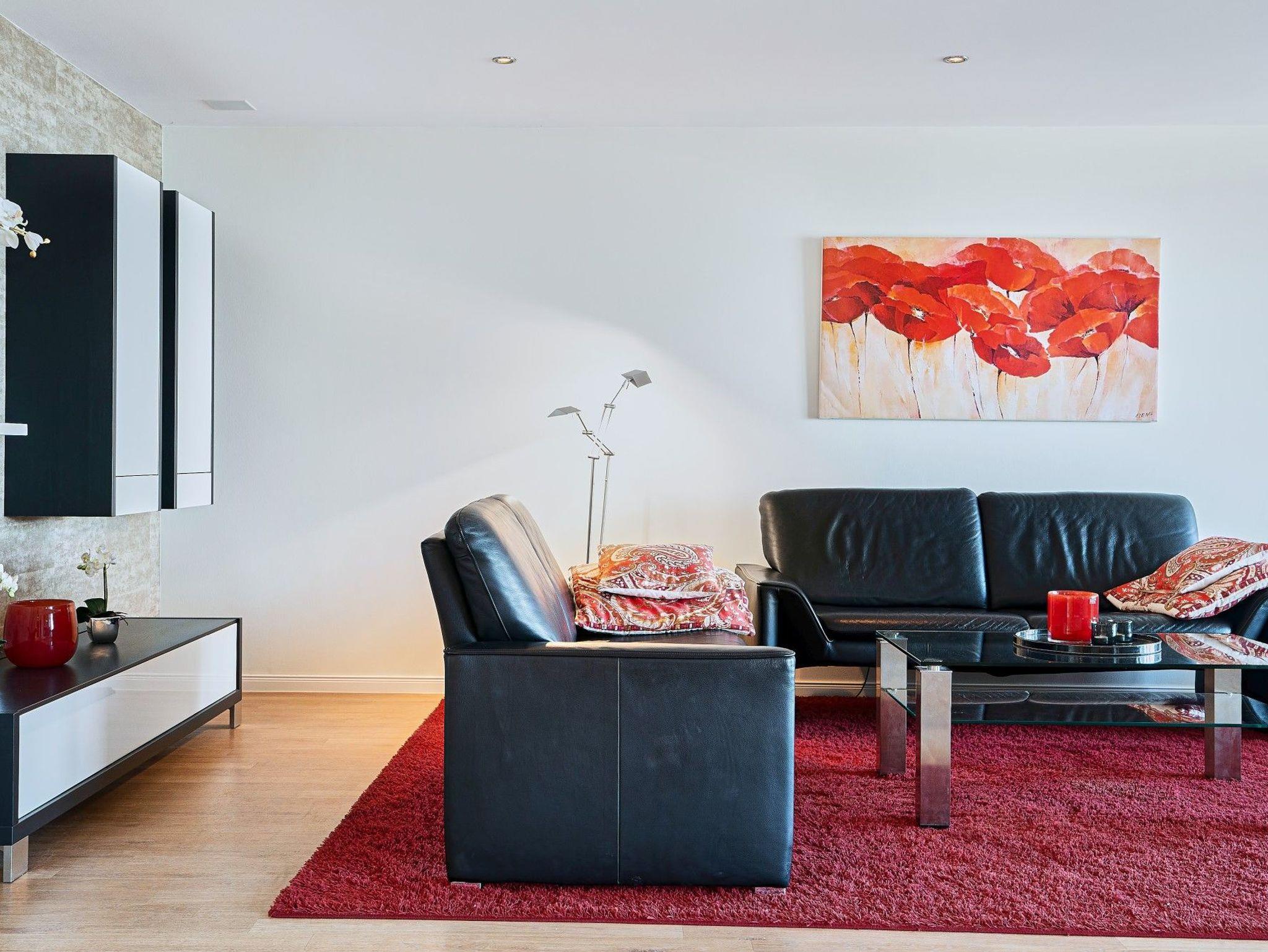 Der Wohn-Essbereich ist mit einem 2er- und einem 3er-Sofa sowie einem Sessel eingerichtet. Neben dem Flachbildfernseher, dem DVD-Player und einem CD-Player steht Ihnen selbstverständlich kostenloses WLAN zur Verfügung. Die helle Küche mit angrenzendem Esstisch ist komplett ausgestattet. Der großzügige Balkon mit Blick auf die Ostsee und mit Morgensonne ist windgeschützt und überdacht. Neben Tisch und Stühlen verfügt er über einen Sonnenschutz. Das erste Schlafzimmer ist mit einem Doppelbett (1,80 x 2,00m) und einem geräumigen Kleiderschrank sowie einem Flachbildfernseher ausgestattet. Das zweite Schlafzimmer verfügt über ein Boxspringbett (1,80 x 2,00m), ein Sideboard und ein Sofa, das schnell in ein Schlafsofa umgebaut werden kann. Auch hier ist ein Flachbildfernseher für Sie bereitgestellt. Ein nettes Extra ist hier sicher die Yamaha-Stereoanlage. Von beiden Schlafzimmern gelangen Sie auf den Balkon Richtung Kurpark, wo Sie die Nachmittagssonne bis in den Abend genießen können. Die Badezimmer verfügen über große Duschen und unterfahrbare Waschbecken. Diese Wohnung ist daher auch für Rollstuhlfahrer geeignet.