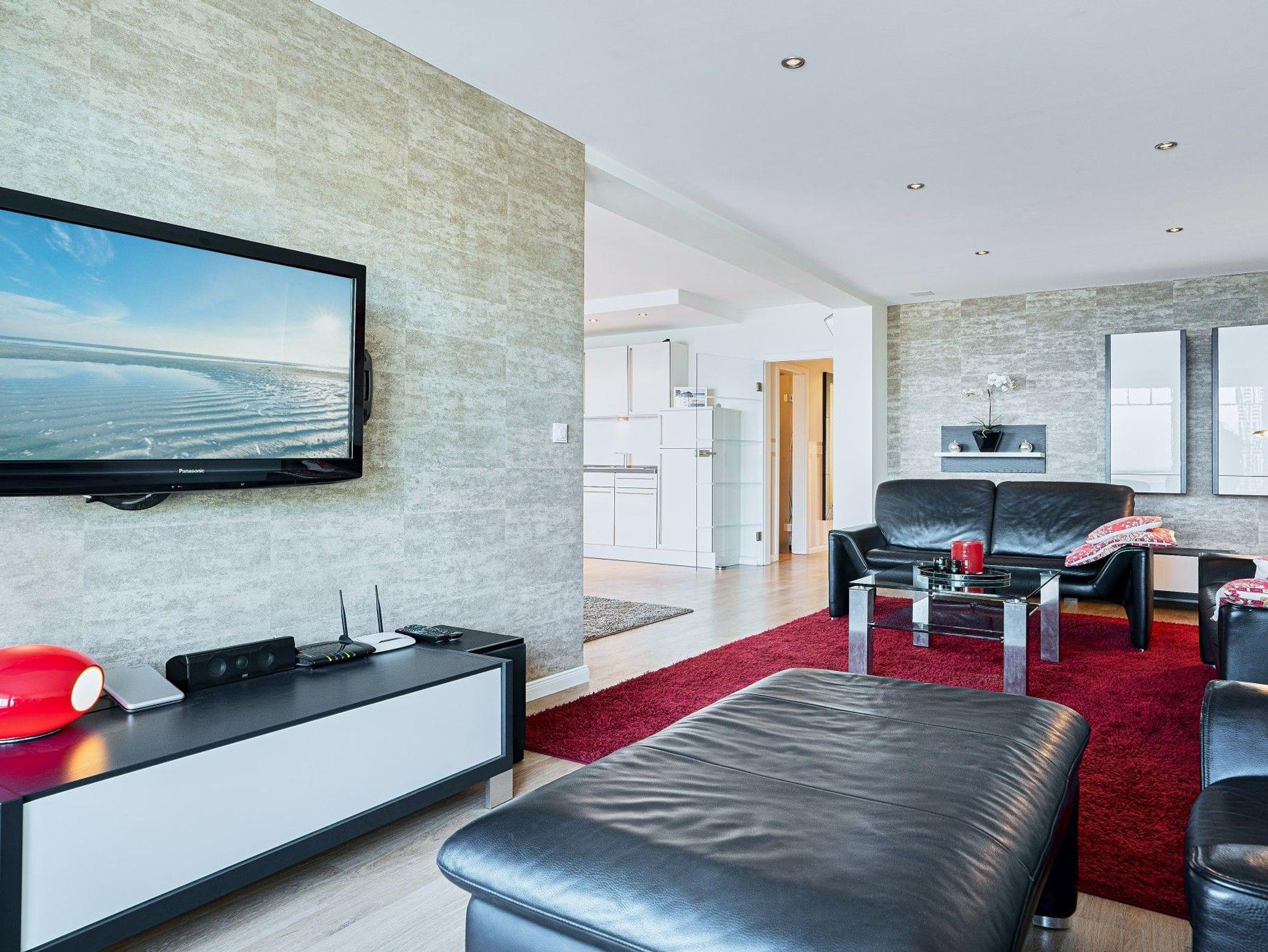 3-Zimmer-Ferienwohnung, ca. 125 m², Meerblick, zwei Schlafzimmer, zwei Balkone, zwei Duschbäder und 2 PKW-Stellplätze, Fahrstuhl, für bis zu 4 Personen