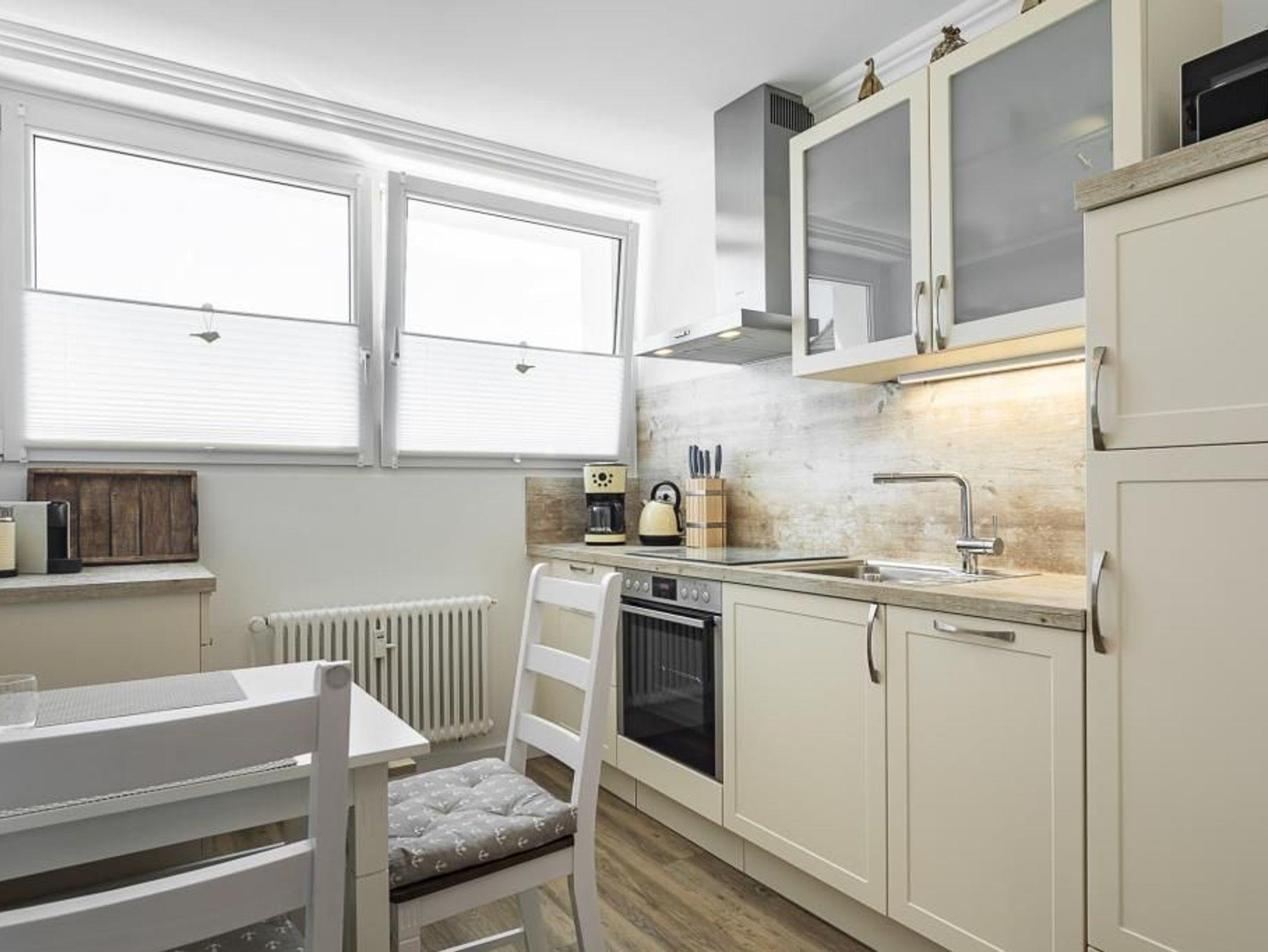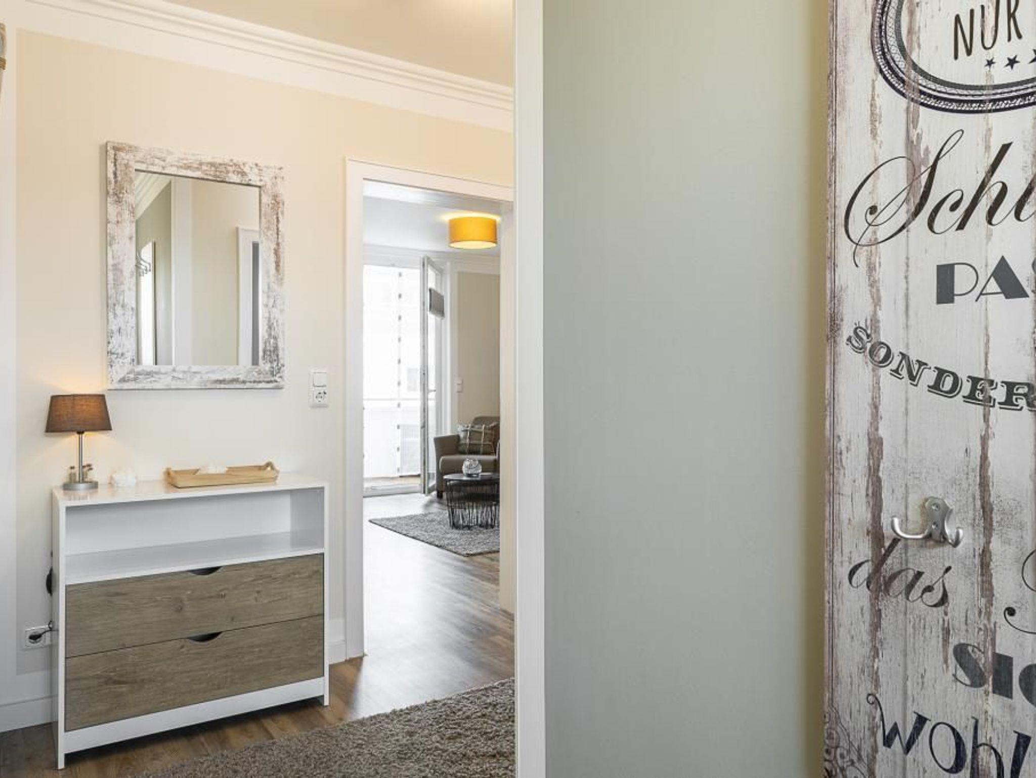 Die Wohnung ist hell und freundlich eingerichtet ? Wohlfühlfaktor garantiert. W-LAN sowie ein kostenloser Strandkorb (saisonbedingt, 15.05. - 15.09., gegenüber am Strand) runden diese Ferienwohnung ab. Ein Fahrradkeller befindet sich im Hause, dieser ist nur über die Kellertreppe zu erreichen! Ein Kinderreisebett inkl. Matratze sowie ein Kinderhochstuhl stehen unseren kleinen Gästen kostenlos zur Verfügung.