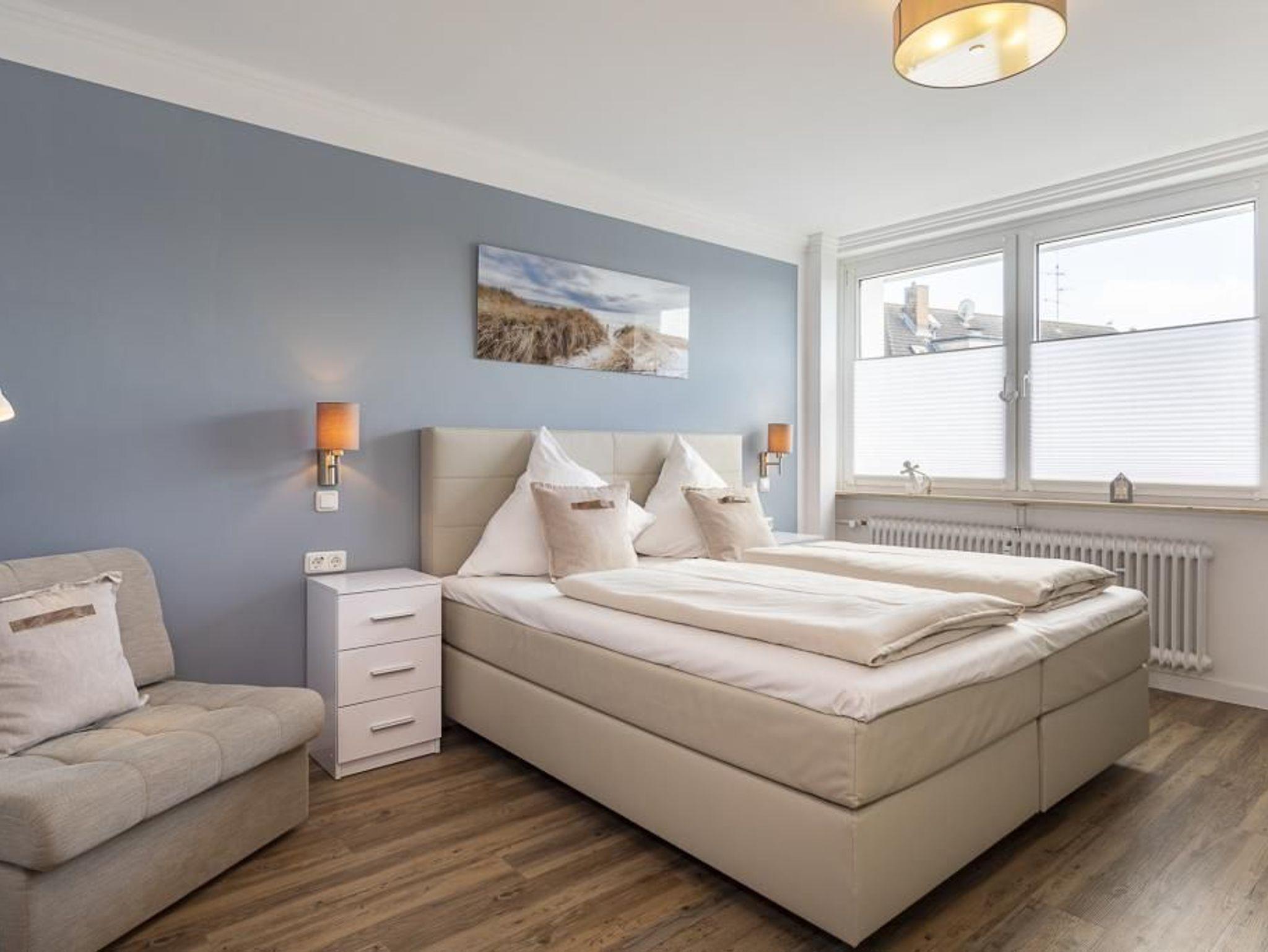 Diese schöne Ferienwohnung liegt in der dritten Etage und ist mit dem Fahrstuhl bequem zu erreichen. Ruhige, Strandnahe und doch zentrale Lage und auch der Kurpark sowie die Dünenmeile mit ihren zahlreichen Cafés, Restaurants und Geschäften sind mit wenigen Schritten zu erreichen. Zu der Wohnung gehört ein Kfz-Außenstellplatz.