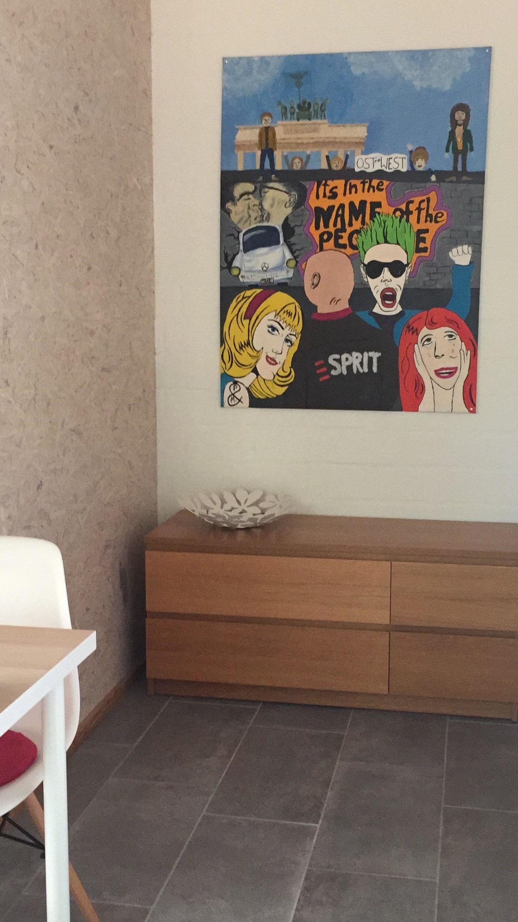 Unsere Ferienwohnung ist im Jahr 2009 fertiggestellt worden. Das wunderschöne Wohn-/Schlafzimmer im Dachraum ist mit einer großen Glasfront ausgestattet und bietet einen weiten Blick ins Grüne . Hier wird gewohnt und traumhaft geschlafen. Im Erdgeschoss befindet sich der Windfang, das Duschbad, der Essbereich mit Austritt zur Terrasse und die individuell gestaltete Küche.