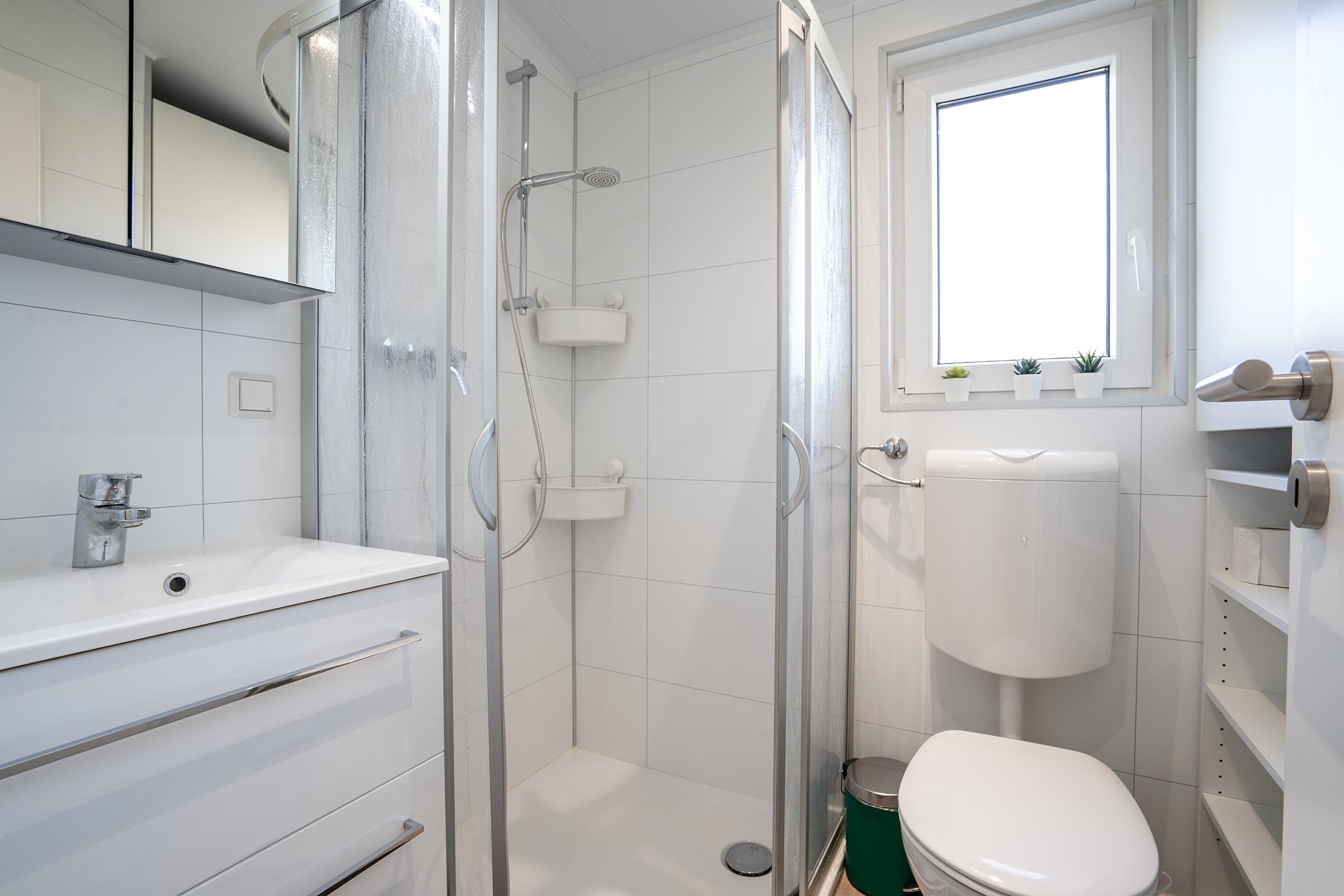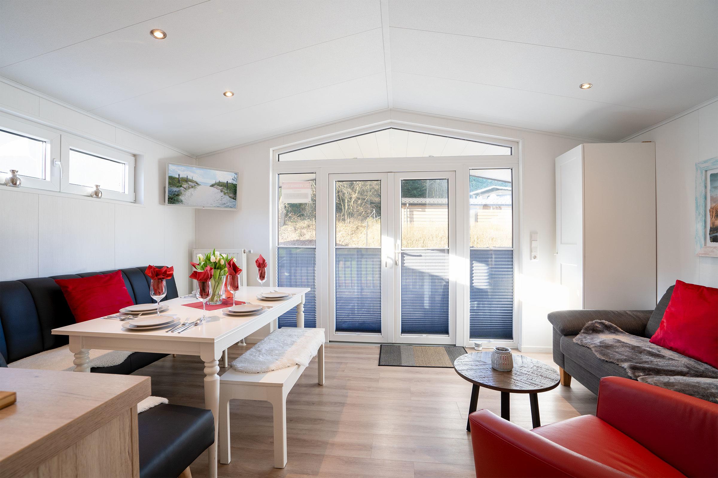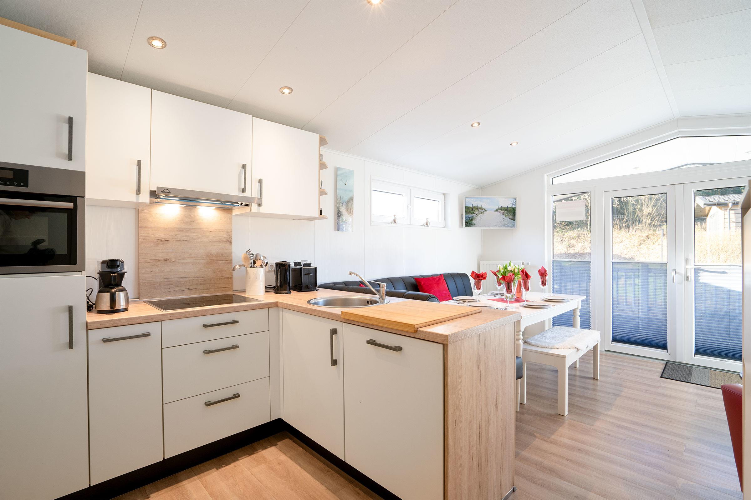 Modernes Ferienhaus (Baujahr 2020) auf einem ca. 300 m² großen, waldnahen Grundstück: Das 45 m² große Ferienhaus bietet Platz für bis zu fünf Personen und einen kleinen Hund und verfügt über eine 15 m² große Veranda, die zum Frühstücken oder Grillen einlädt. Der helle, offene Wohnbereich geht in eine voll ausgestattete Küche über; der angrenzende Essbereich bietet Sitzplätze für fünf Personen. Schlafmöglichkeiten: Elternschlafzimmer mit Doppelbett 160 × 200 cm, Gästezimmer mit Doppelbett 140 × 200 cm sowie ein Etagenbett 80 × 200 cm mit Absturzsicherung. Ein Stellplatz für Ihr Fahrzeug steht während des Aufenthalts kostenfrei zur Verfügung; für E-Autos gibt es vier Ladestationen mit je 300 kW. Die Nutzung der Sauna ist für unsere Gäste kostenfrei (in der Regel täglich 17:00–23:00 Uhr). Im Garten und auf dem Grundstück finden Sie ein Trampolin und eine Schaukel; auf dem Gelände des Ostseecamps stehen zahlreiche Freizeitmöglichkeiten wie Volleyball und Tischtennis zur Verfügung. Waschmaschinen und Trockner sind auf dem Platz kostenlos nutzbar. Dieses Haus eignet sich ideal für Familien oder kleine Gruppen, die Ruhe, Natur und Komfort an der Lübecker Bucht suchen. Der Eigentümer des Ferienhauses wird sich rechtzeitig vor Ihrer Anreise telefonisch oder per E-Mail mit Ihnen in Verbindung setzen, um den genauen Zeitpunkt Ihrer Anreise für die persönliche Begrüßung und Schlüsselübergabe mit Ihnen abzustimmen. Fahrräder können optional gemietet werden. W-Lan-Internet (WiFi) kann ohne Aufpreis NUR in der vom Ostseecamp erzeugten Verfügbarkeit genutzt werden.