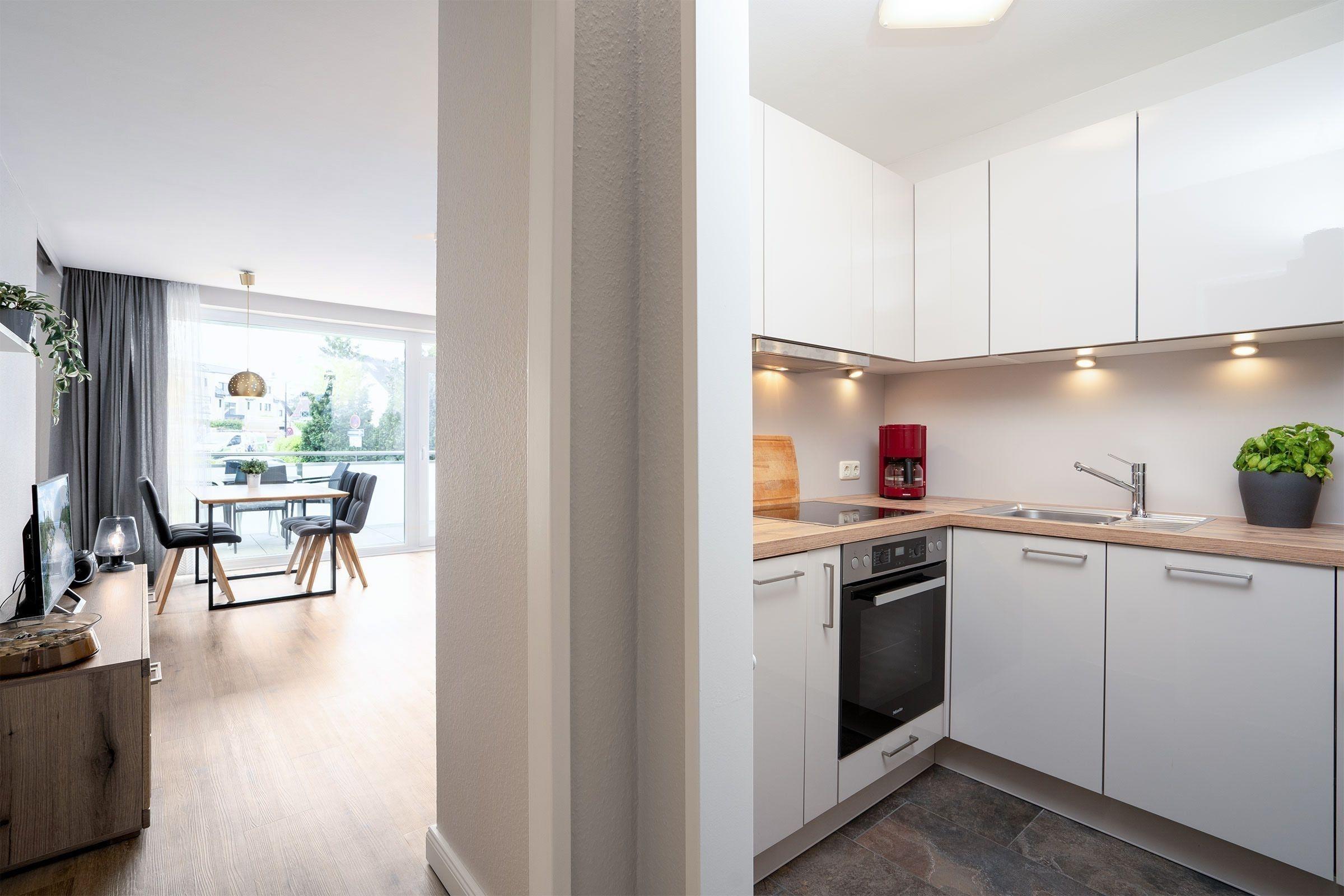 Die helle Ferienwohnung für bis zu 4 Personen, nur 200 Meter vom Strand entfernt, bietet einen großzügigen Balkon und moderne Ausstattung – ideal für erholsame Urlaubstage in Scharbeutz.