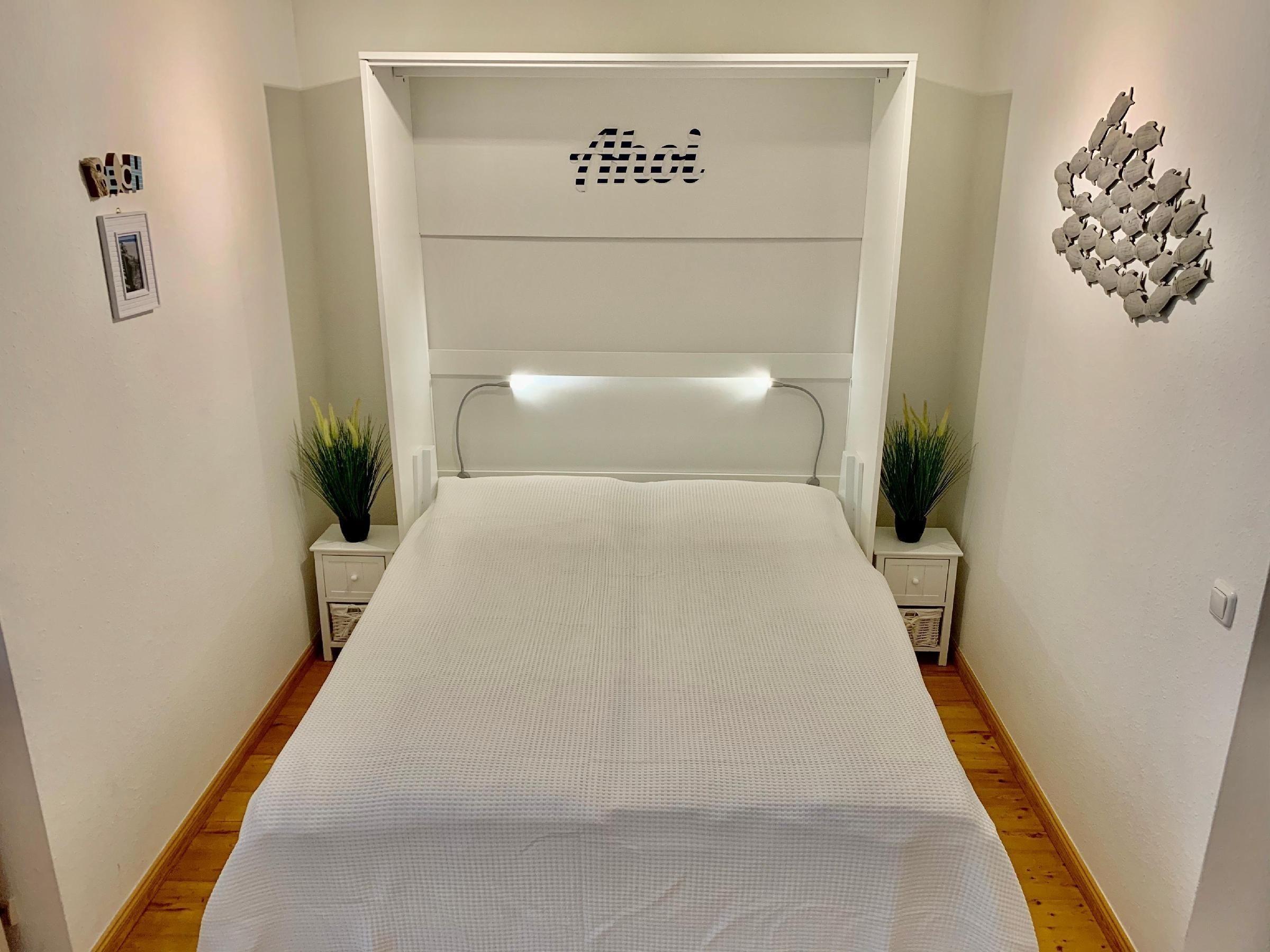 Die Wohnung befindet sich sehr gut gelegen im 1.OG und ist bequem mit dem Fahrstuhl bzw. über das Treppenhaus erreichbar. Sie bietet einen modernen Wohn-Essbereich mit einem bequemen Ecksofa und passendem Sessel, Sideboard mit Flachbild-TV, Stereoanlage und W-LAN sowie einen gemütlichen Essplatz für 4 Personen. Eine neue und sehr gut ausgestattete offene Küche im Landhausstil, in der Spülmaschine, Mikrowelle, Kaffeemaschine, Espressokocher, Wasserkocher und Toaster vorhanden sind, erwartet Sie.