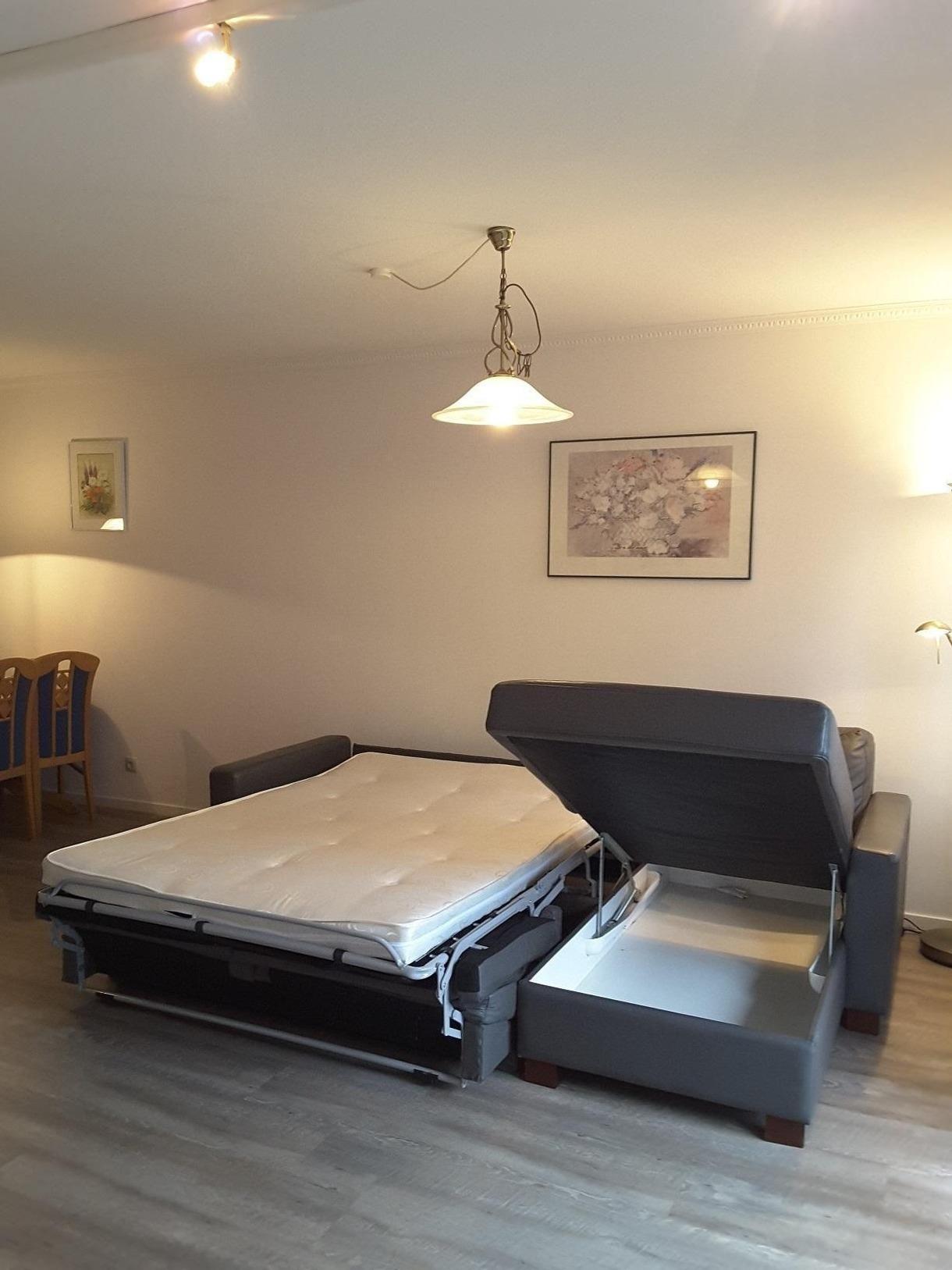 Der Wohnbereich ist u.a. ausgestattet mit einem Polstersofa, welches zur Schlafcouch umgewandelt werden kann sowie einem Relax Sessel. Es stehen Ihnen ein TV-Gerät, ein DVD-Spieler und auch W-Lan zur Verfügung.
