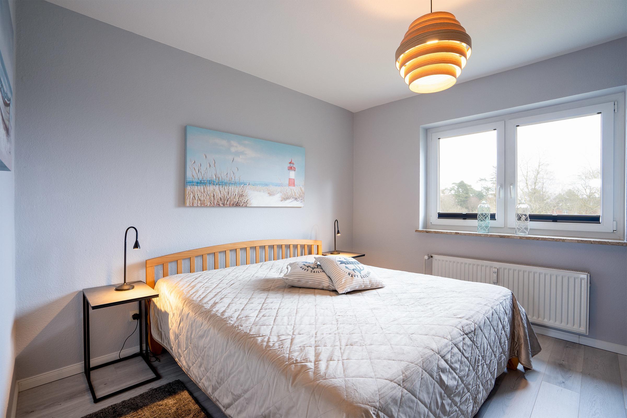 - Schlafzimmer: Ein Schlafzimmer mit einem bequemen Doppelbett und ausreichend Stauraum für Kleidung und Gepäck.