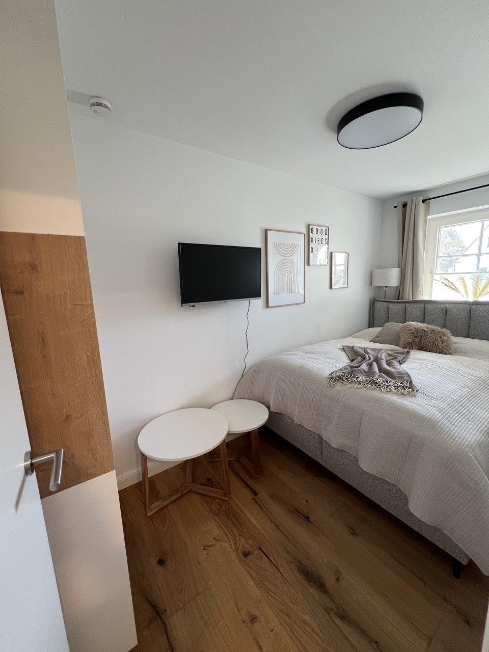 Willkommen in der Cosy Dream Scharbeutz Dein ganz persönlicher Wohlfühlort an der Ostsee!Diese frisch renovierte Ferienwohnung (Ende 2024) bietet Dir auf 55 m² alles, was Du für einen unvergesslichen Aufenthalt an der Lübecker Bucht brauchst. Die Cosy Dream Scharbeutz besticht durch ihren modernen Skandi-Style, der mit klaren Linien, warmen Farben und hochwertigen Materialien eine gemütliche und zugleich elegante Atmosphäre schafft. Hier trifft Komfort auf Stil ideal für Deinen Ostseeurlaub!Die Wohnung verfügt über zwei separate Schlafzimmer, die jeweils mit einem komfortablen Doppelbett (4 Erwachsene oder 2 Kinder ab 8 Jahren) ausgestattet sind. So kannst Du die Nachtruhe in absoluter Ruhe genießen. Das Badezimmer ist ein Highlight: Mit einem Doppelwaschbecken, Fußbodenheizung und modernen Akzenten bietet es Dir eine perfekte Wohlfühloase zum Entspannen und Frischmachen.Im großzügigen Wohnzimmer findest Du nicht nur eine gemütliche Sofaecke, sondern auch eine moderne Küchenzeile, die mit allem ausgestattet ist, was Du für die Zubereitung Deiner Lieblingsgerichte benötigst. Und das Beste: Vom Wohnzimmer aus gelangst Du direkt auf die eigene Terrasse, die mit einer Lounge-Gruppe zum Verweilen und Entspannen einlädt. Hier kannst Du den Tag bei einem guten Glas Wein oder einer Tasse Kaffee ausklingen lassen und die frische Ostseeluft genießen.Für Deinen Komfort ist die Cosy Dream Scharbeutz mit modernster Technik ausgestattet: Drei TV-Geräte sorgen für Unterhaltung, das internetradio "Teufel" liefert erstklassigen Sound für Deine Lieblingsmusik, und der hochwertige ghd Helios Föhn sorgt für gepflegtes Haar auch an windigen Tagen.Zudem gehört zur Wohnung ein eigener Parkplatz, sodass Du bequem und stressfrei ankommen kannst.Die zentrale Lage in Scharbeutz ist einfach ideal: In wenigen Minuten bist Du am Strand, an der Promenade oder in der Fußgängerzone perfekt für Spaziergänge, Shopping oder einfach zum Genießen des Ostseeflairs.Erlebe in der Cosy Dream Scharbeutz Deinen perfekten Urlaub an der Ostsee ein Ort, an dem du Dich wie zu Hause fühlen wirst! Wir freuen uns, Dich bei uns begrüßen zu dürfen!