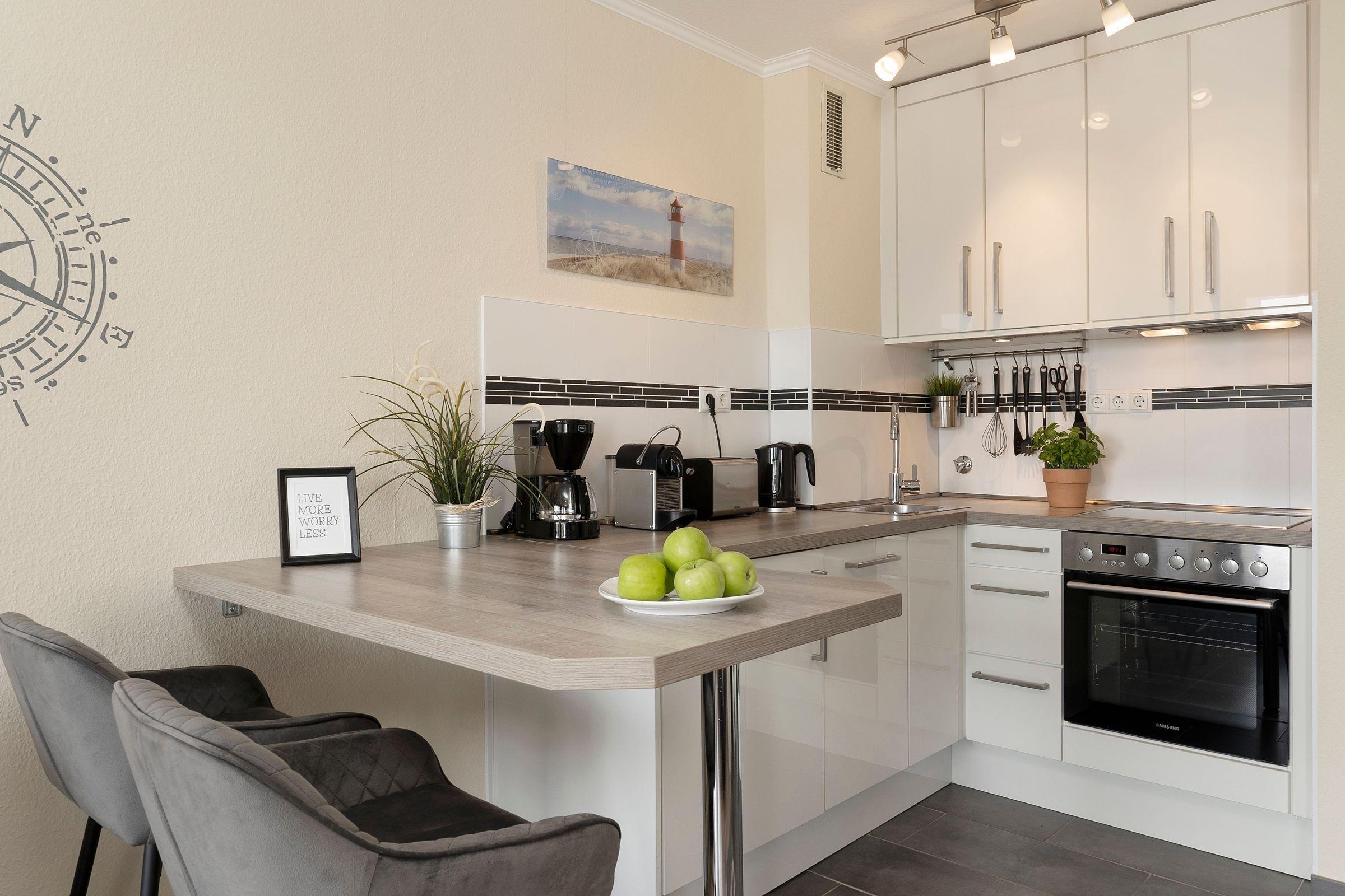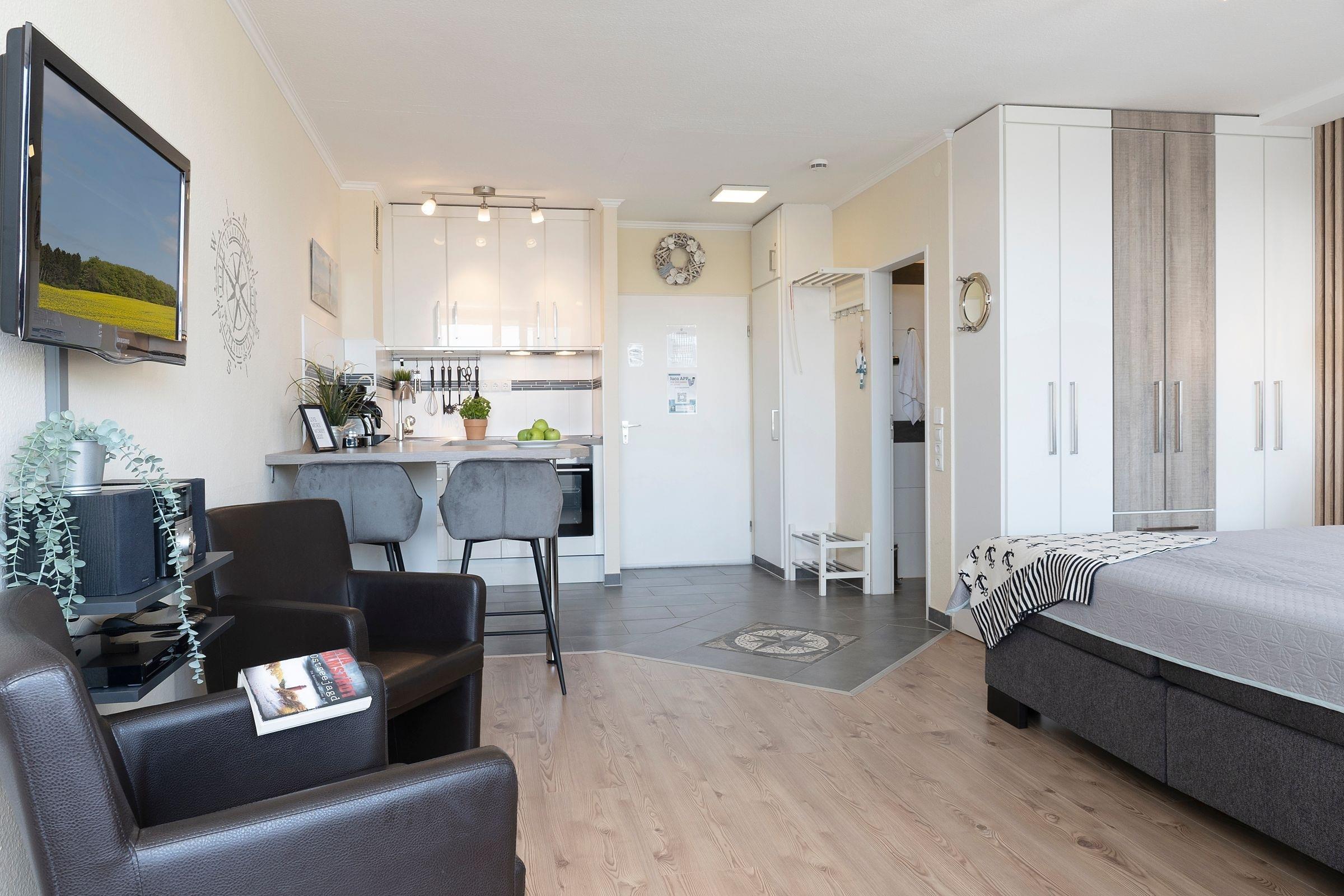 Diese moderne und komplett ausgestattete Wohnung liegt im Herzen von Scharbeutz und ist ideal für 2 Personen. Die offene Küche lässt keine Wünsche offen! Vom Geschirrspüler bis hin zum Backofen ist alles für eine perfekte Selbstversorgung vorhanden. Ein helles und zeitgemäßes Wohn-/Schlafzimmer mit einem hochwertigen Boxspringbett (180x200 cm), einem Flat-TV, Blue-Ray-Player, DVD-Player und Hifi-Anlage stehen Ihnen hier zur Verfügung. Der große möblierte Balkon rundet einen angenehmen und erholsamen Urlaub ab. Das Duschbad ist neu und beinhaltet u. a. einen Föhn, einen beheizten Handtuchhalter und ein integriertes Wandradio.