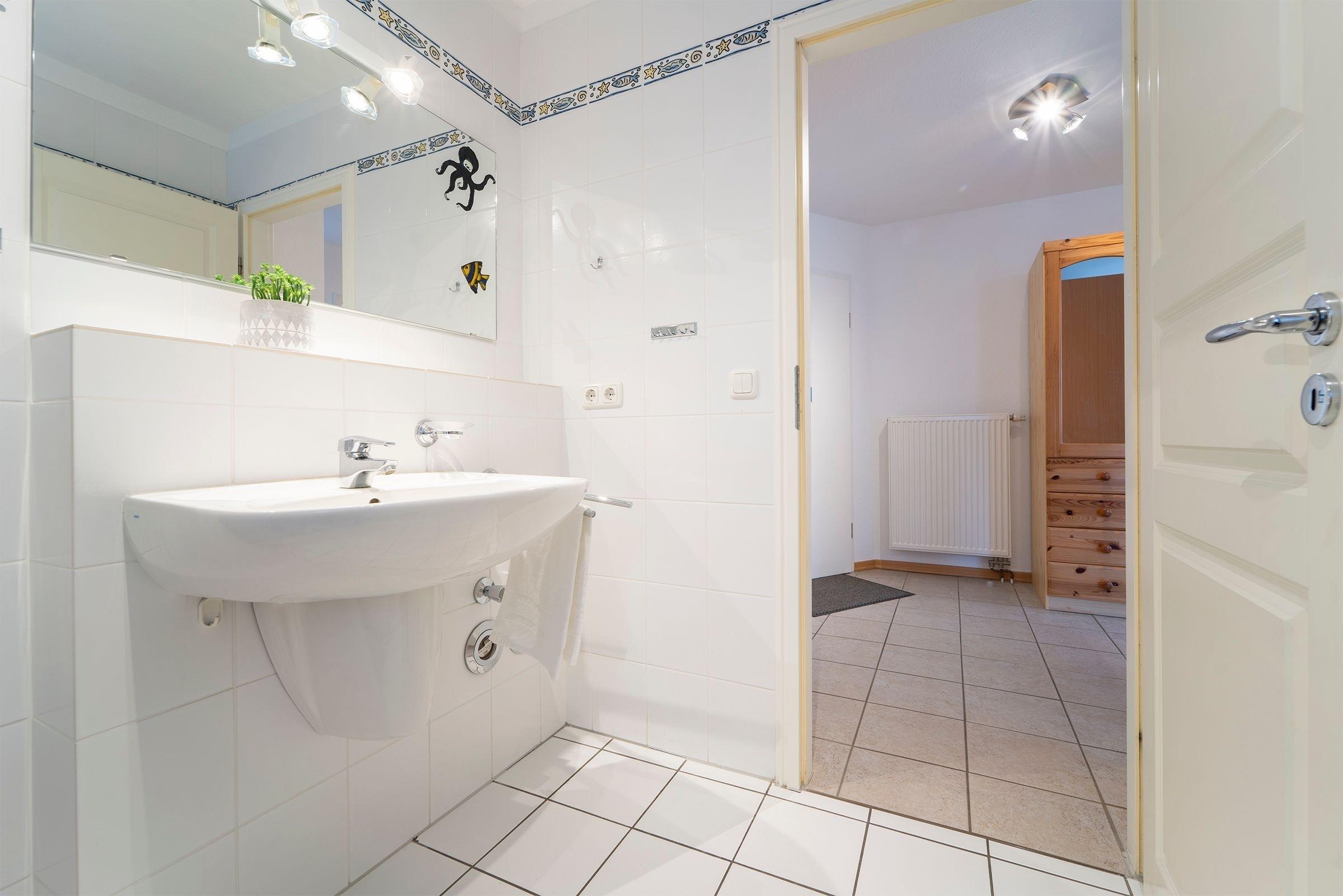 Ein geräumiger Flur führt in das lichtdurchflutete Wohnzimmer mit offener Küche. Von hier aus lockt ein Balkon mit seitlichem Blick auf die Ostsee morgens zum Kaffee an. Gemütlich... die Couch und ein gutes Buch! Besonders nach einem ausgedehnten Strandspaziergang. Die Couch lässt sich zu einer Schlafgelegenheit (140x200 cm) verwandeln. Die offene Küche mit einem Esstisch lädt in netter Runde zu gutem Essen und gemeinsamen Spielabenden ein. Im separaten Schlafzimmer schlafen Sie im bequemen Boxspringbett (160x200 cm). Ein großer Kleiderschrank verstaut Ihre Sachen. Das tageslichthelle Duschbad mit Handtuchwärmer und WC liegt gleich neben dem Flur.