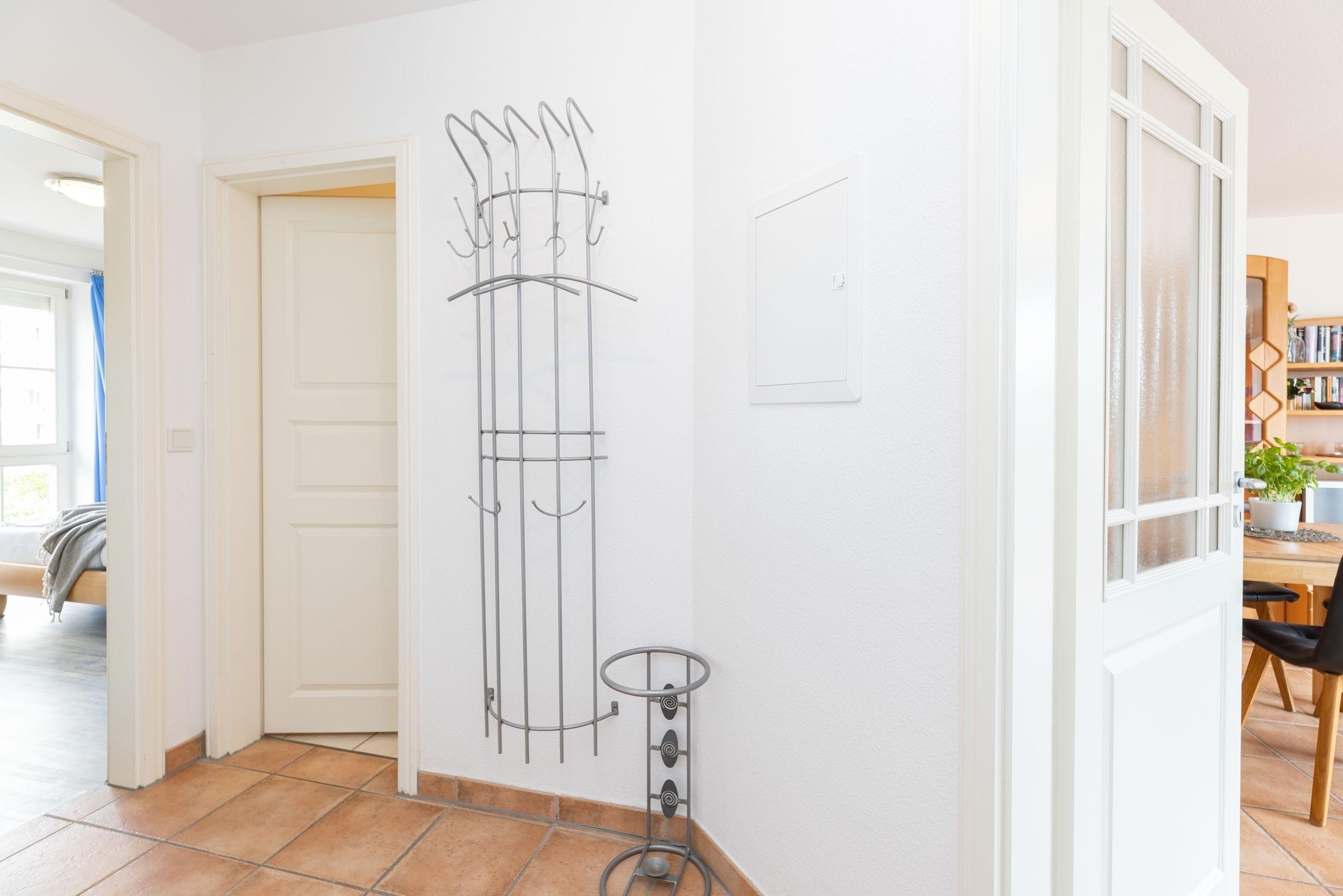 Durch den Flur gelangen Sie in das Schlafzimmer mit bodentiefen Fenstern, die für viel Licht sorgen. Im gemütlichen Doppelbett (2x 90x200 cm) verbringen Sie erholsame Nächte und der sehr großem Kleiderschrank mit Ganzkörperspiegel sorgt für reichlich Platz für Ihre Klamotten, Koffer und Souvenirs. Das moderne und geräumige Bad vervollständigt diese schöne Ferienwohnung.