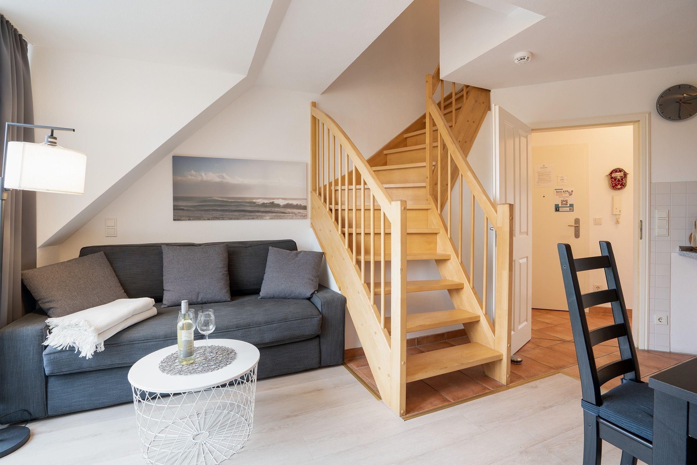 Diese 3-Zimmer-Wohnung (ca. 58 qm) erstreckt sich über 2 Ebenen und liegt in unmittelbarer Strandnähe. Sie ist sehr geschmackvoll und modern eingerichtet.