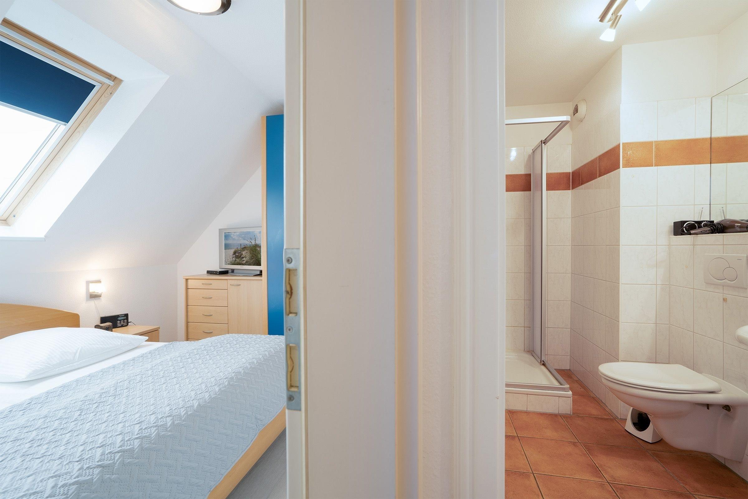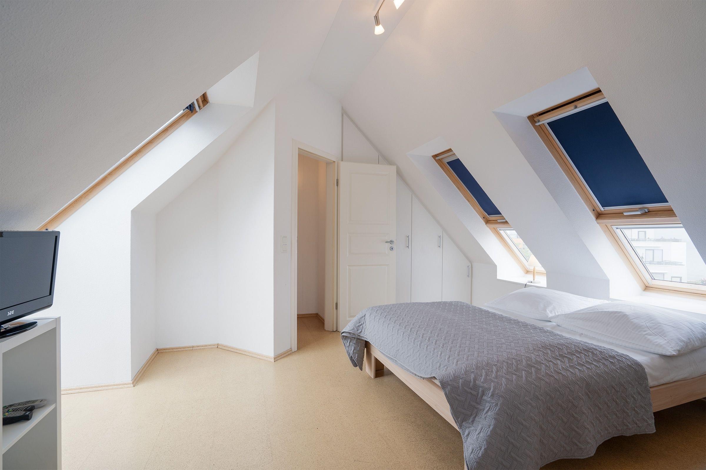 Schlafzimmer 2 (oben): 1 Doppelbett (140x200 cm), 1 Schlafsofa (130x185 cm), TV, Kleiderschrank