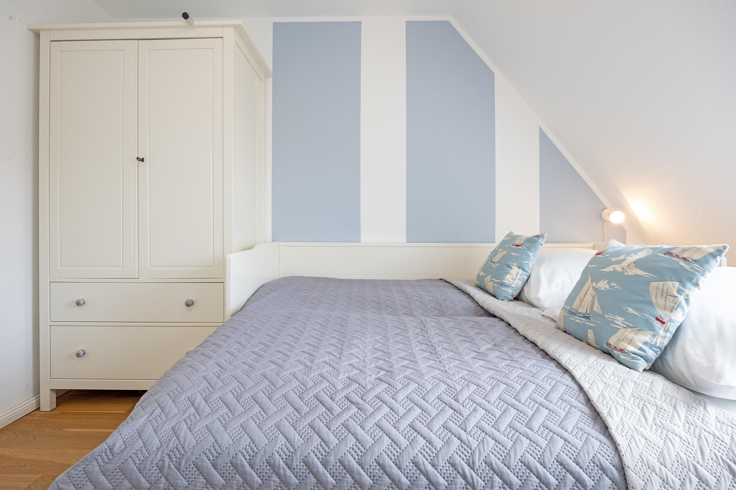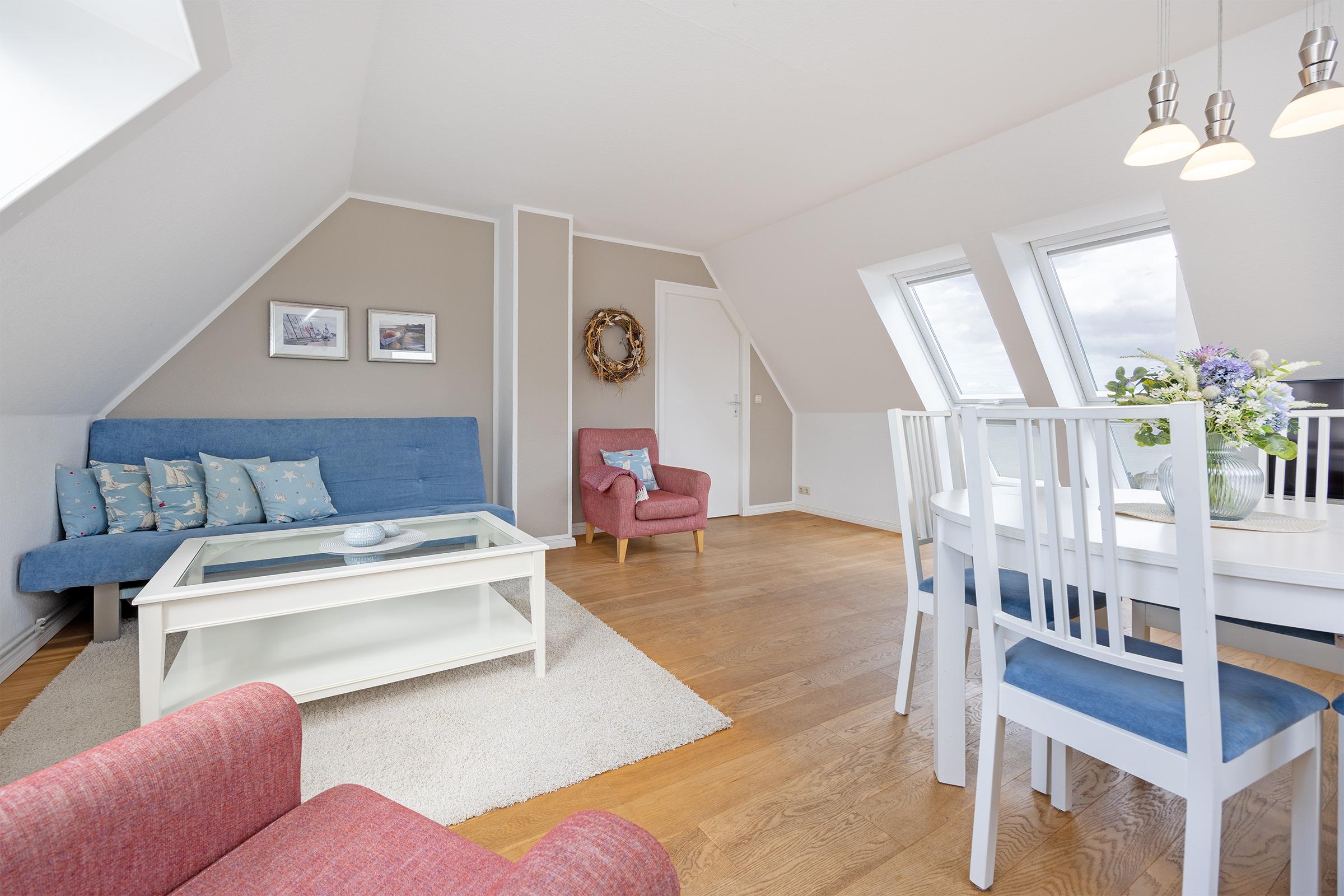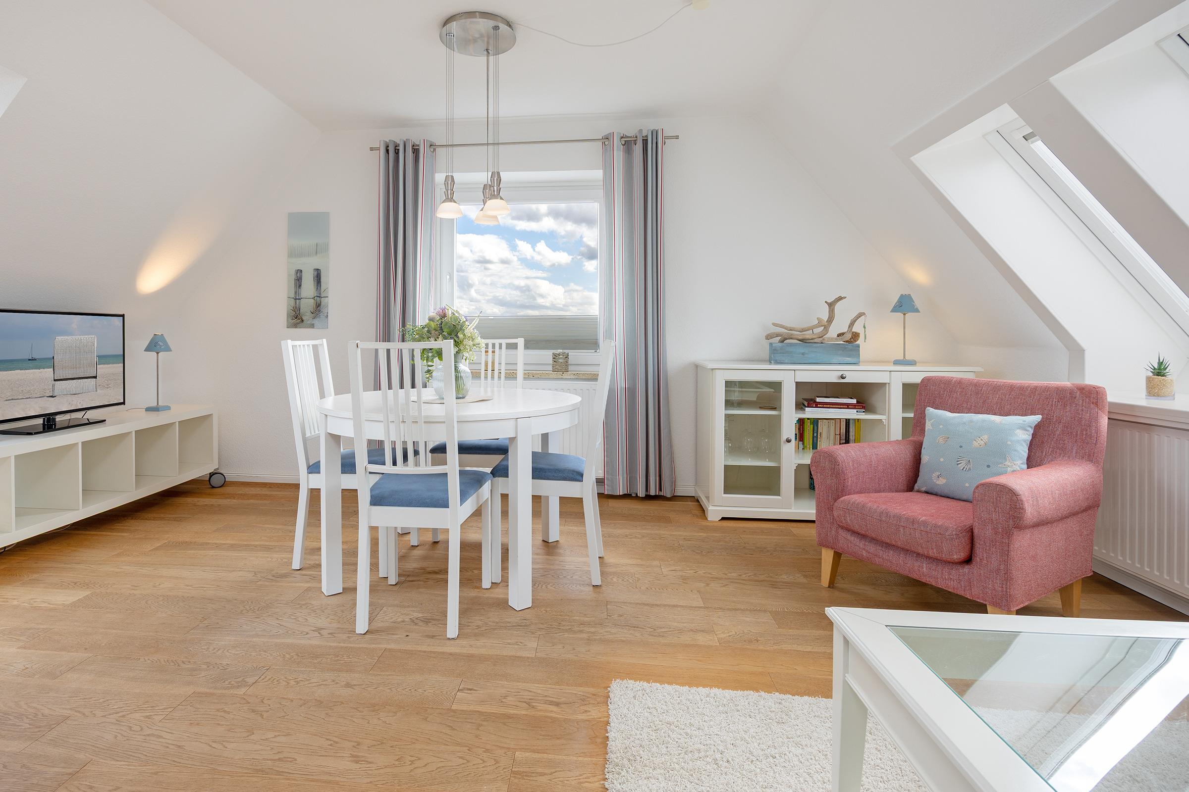 Sie erwartet eine nordisch maritime und modern eingerichtete, strandnahe ca. 80 m² große 3- Zimmer Ferienwohnung für