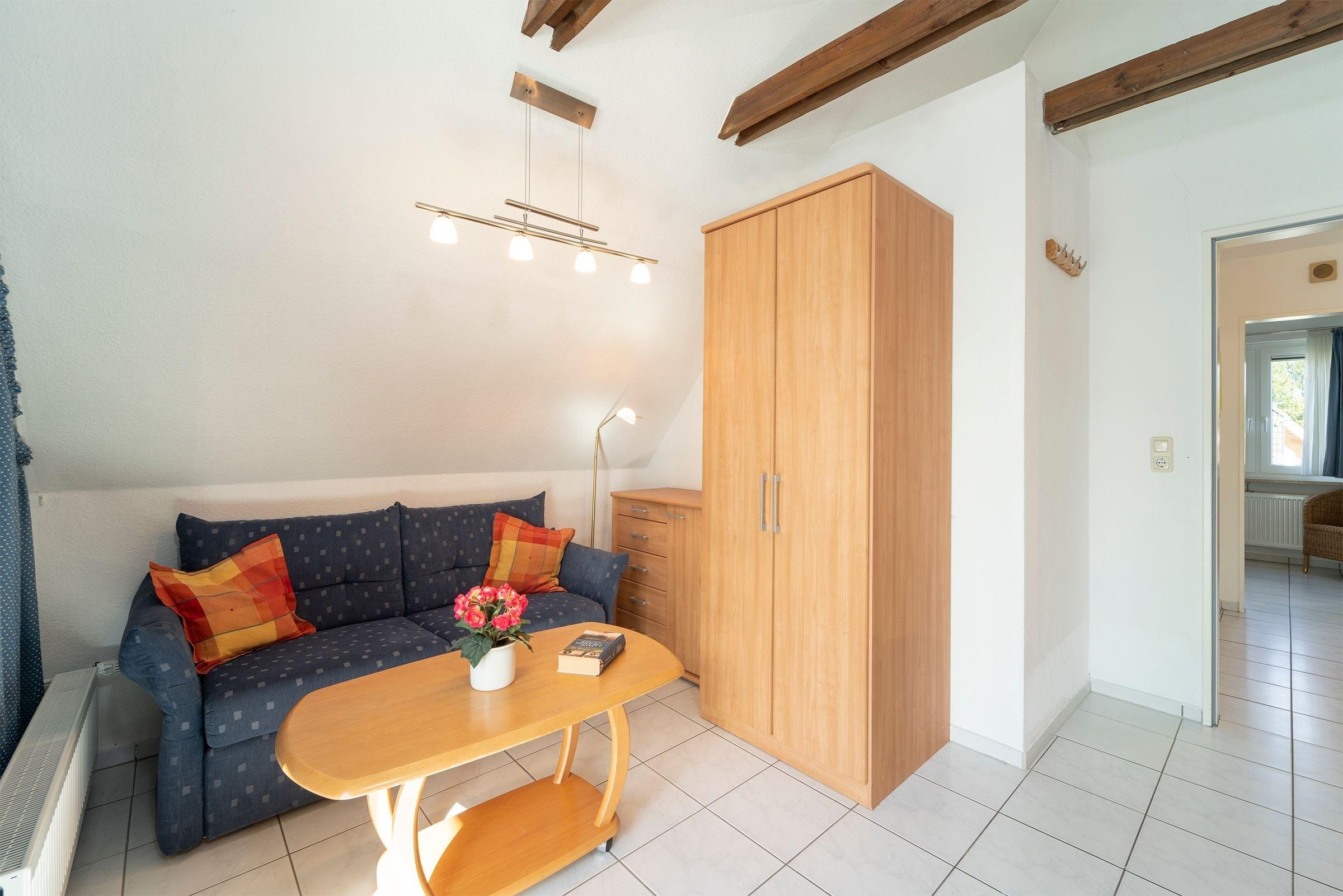 Nur noch einige Treppenstufen bis zu Ihrer Ferienwohnung. Tür auf! Ein kleiner Flur und eine Treppe in das 2. Obergeschoss verbindet die ca. 85 m² große Ferienwohnung. Herzlich Willkommen im "Strandläufer 2" – ideal für die große Familie!
